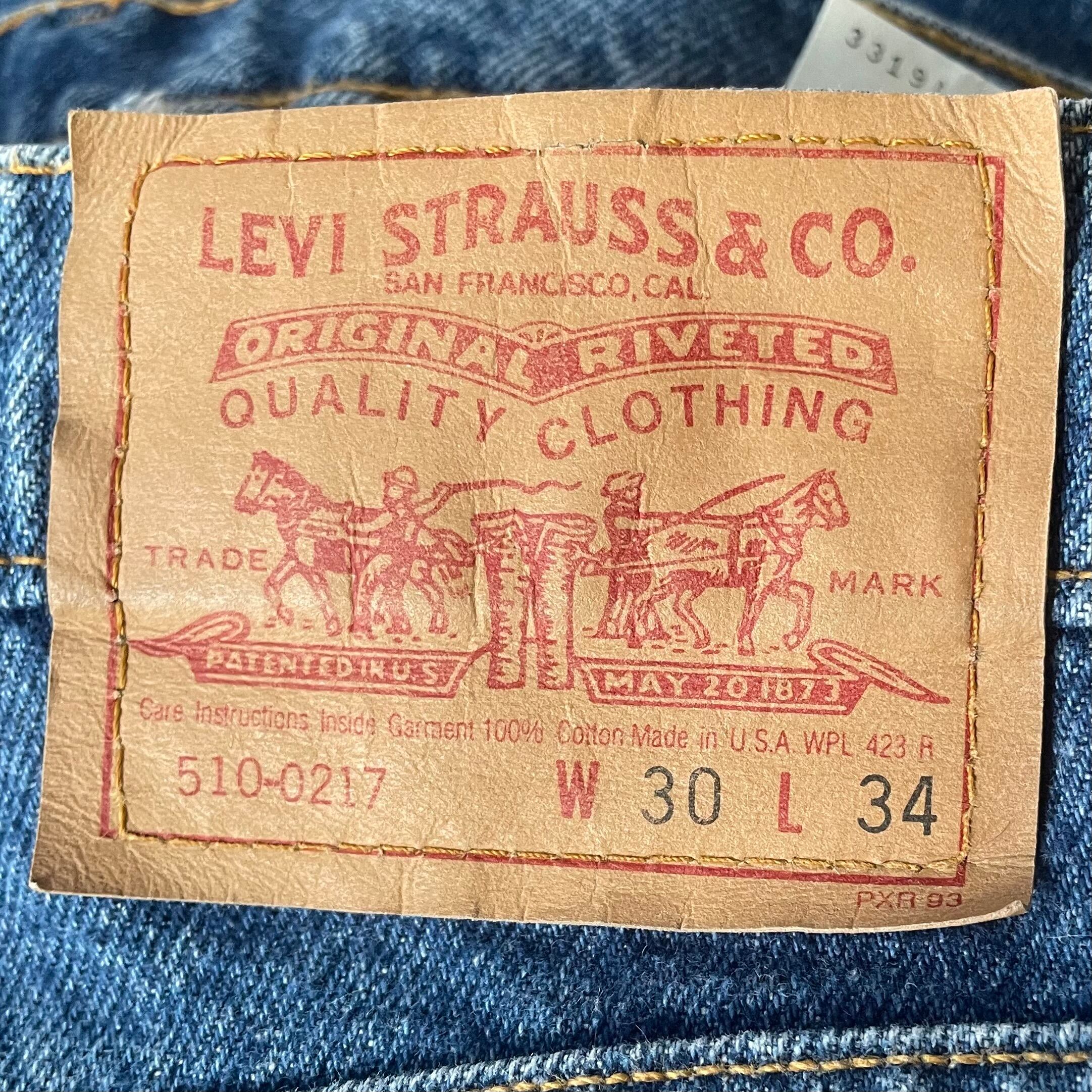 股上深めの緩やかなテーパードシルエットで楽ちんなのにスタイル良く履ける、90年代ヴィンテージアメリカ製リーバイス510デニムパンツです。ボタン裏525