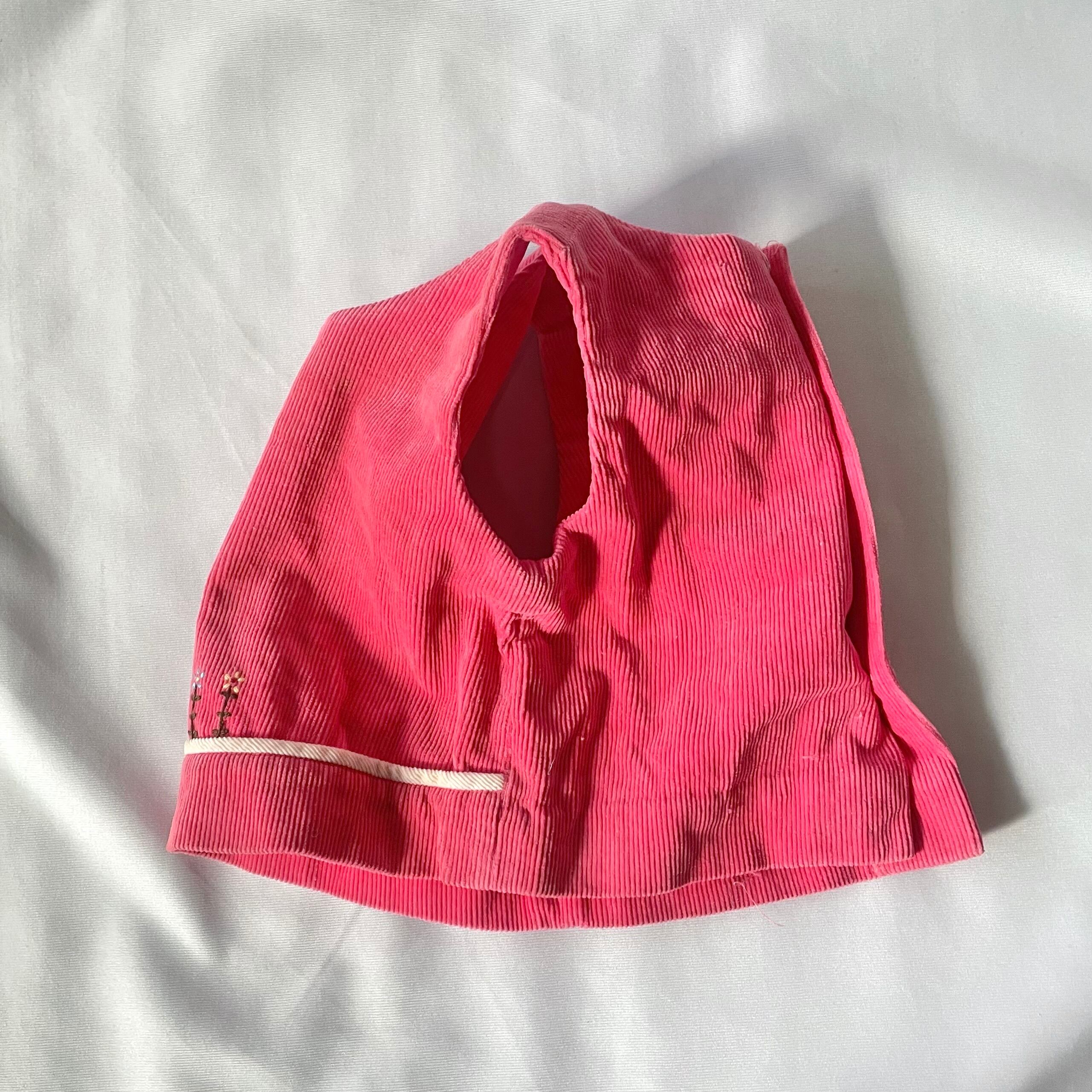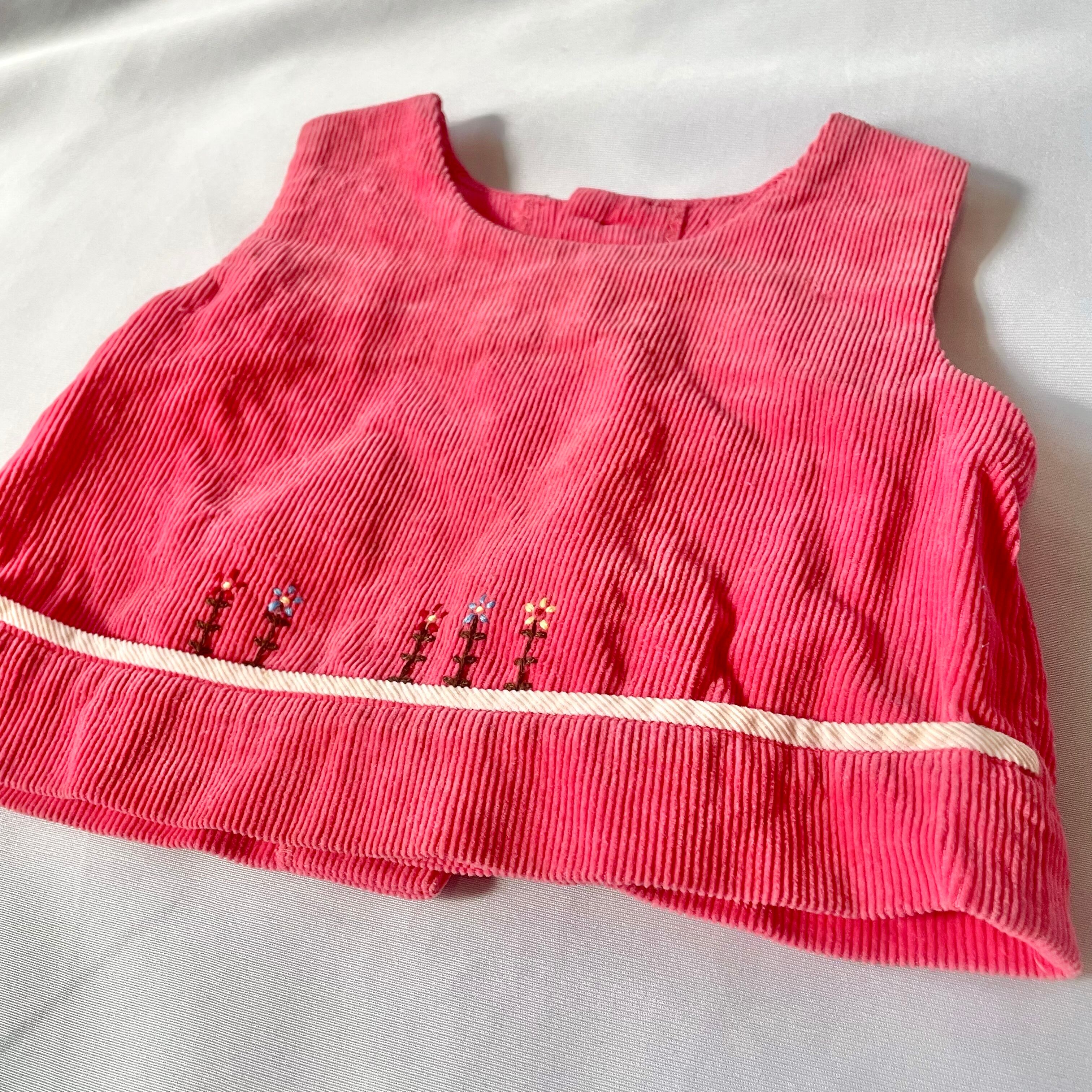 約1歳児用 お花刺繍が可愛い、ヴィンテージ ピンクコーデュロイベストです。ハンドメイドと思われます。