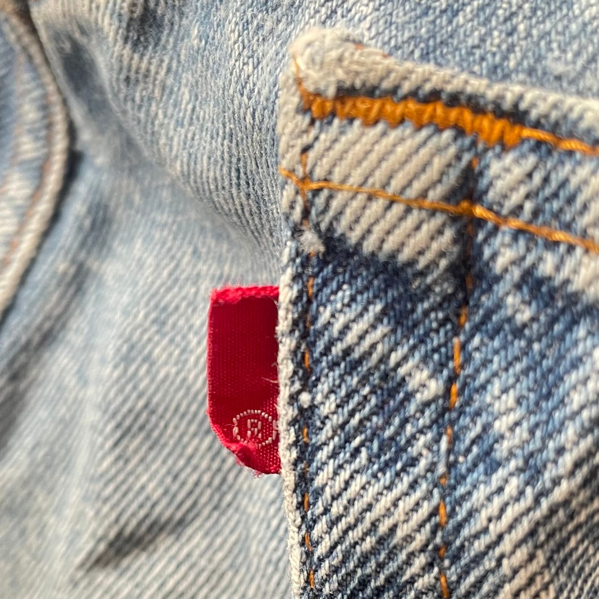 8-90年代ヴィンテージ USA製リーバイス 501 内股シングル デニムパンツです。赤耳直後のインサイドシングルステッチ。レアなサークルRタブ。ボタン裏刻印653