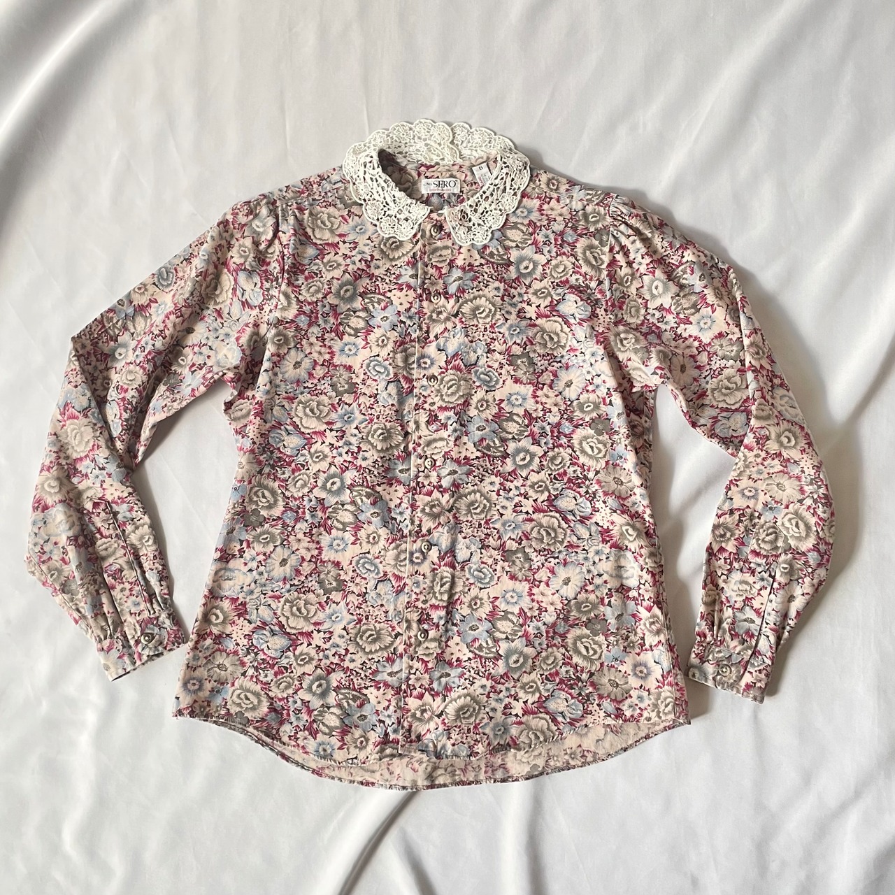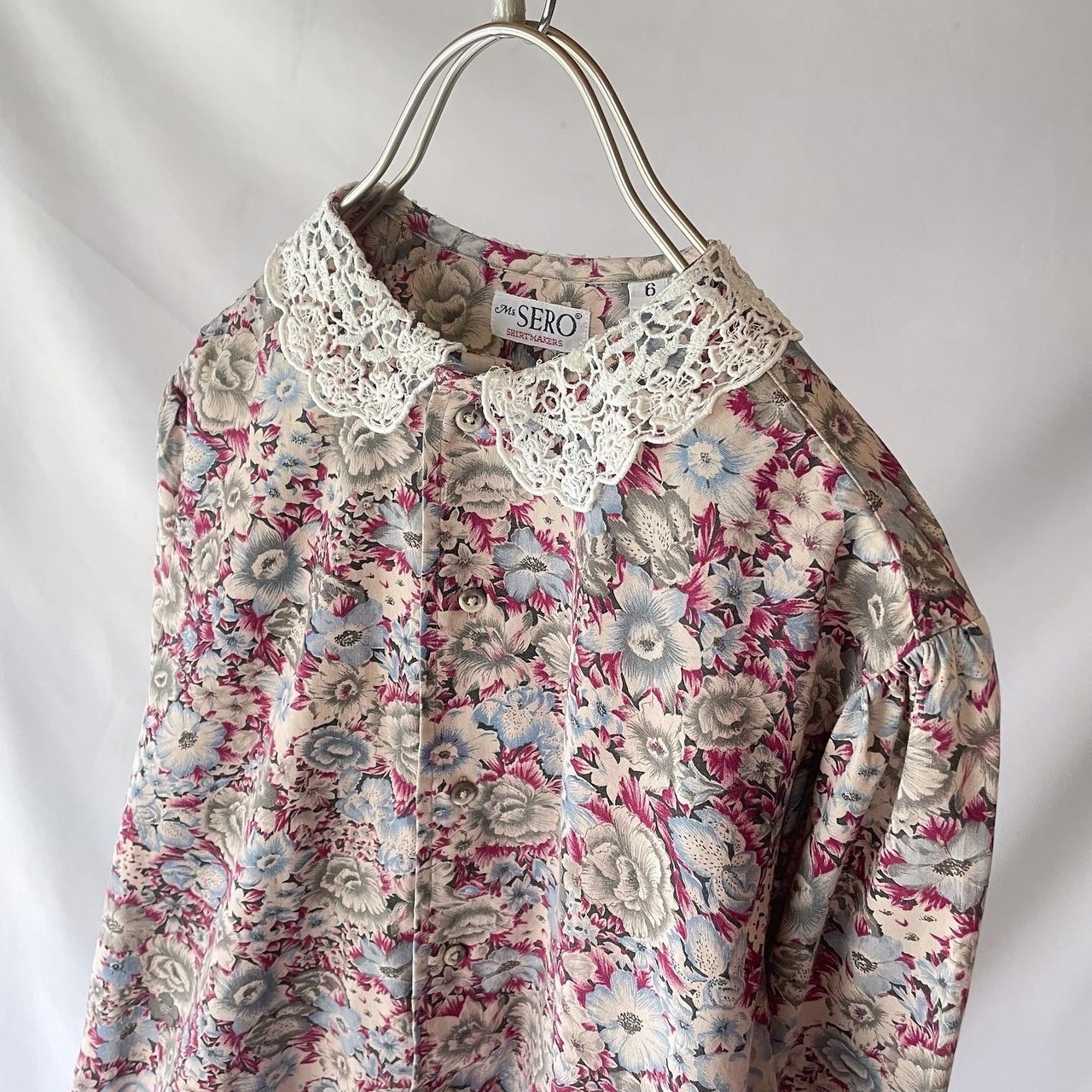 vintage SERO SHITMAKERS floral blouse 花柄白レース襟ブラウス