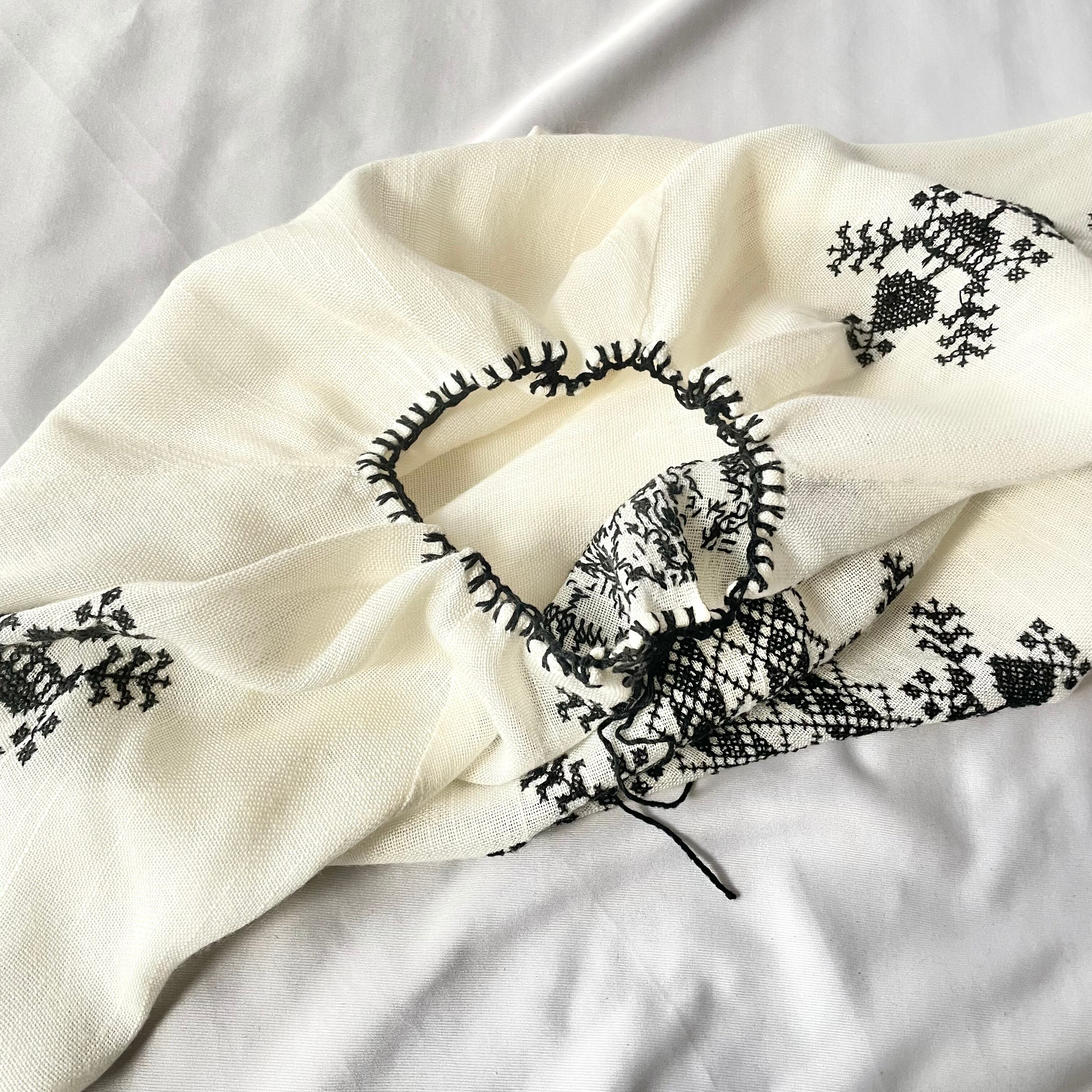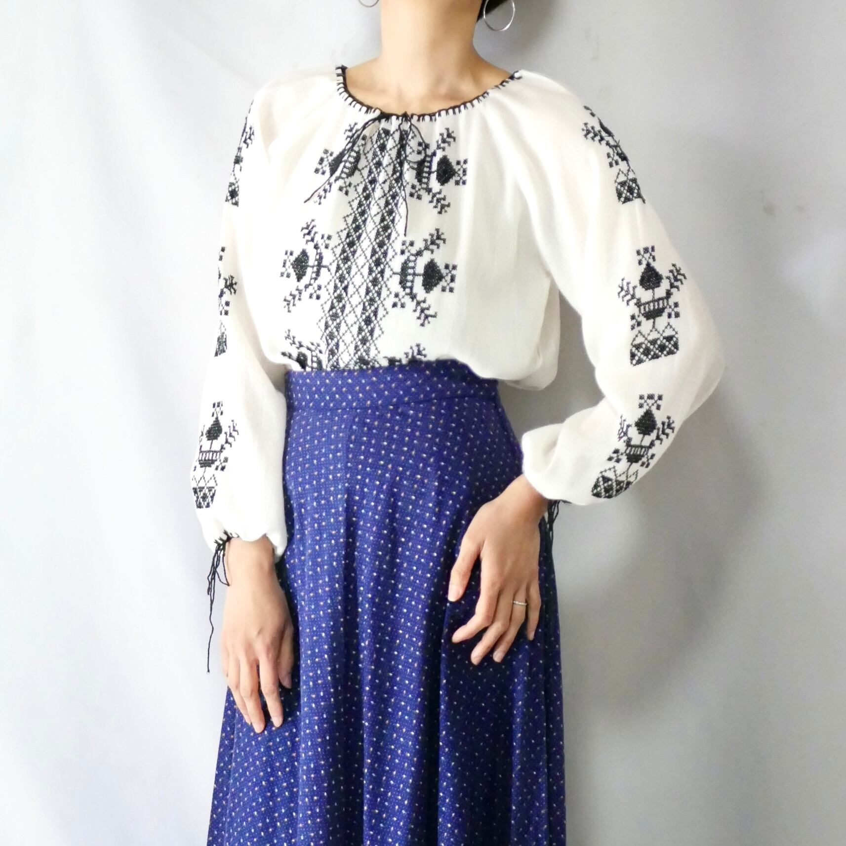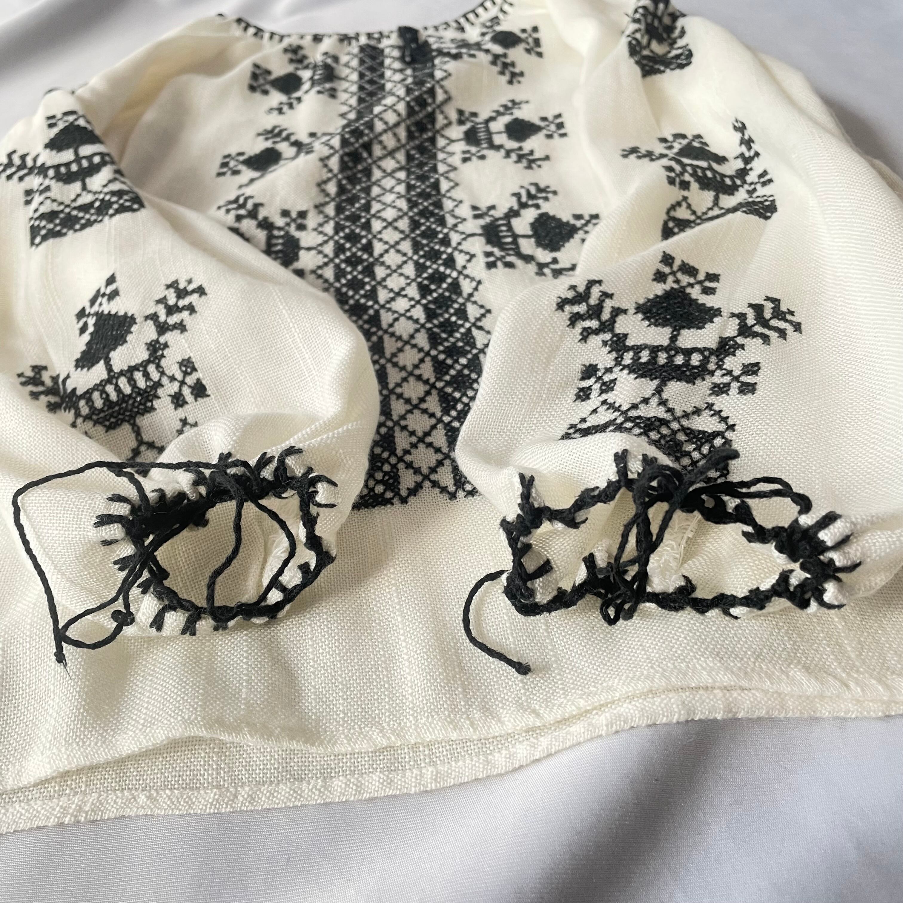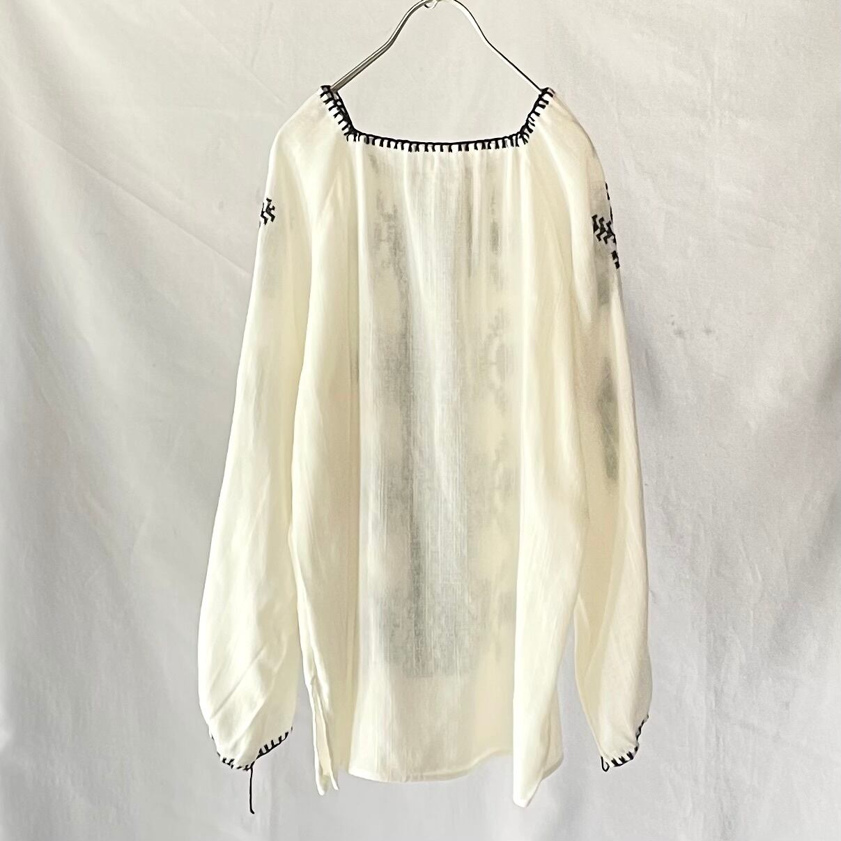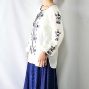 Euro vintage monotone embroidered pullover blouse 白黒モノトーン刺繍プルオーバーブラウス