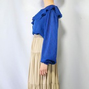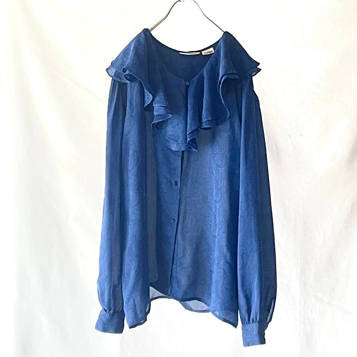 Blue frill polyester blouse ブルーラッフル襟ブラウス