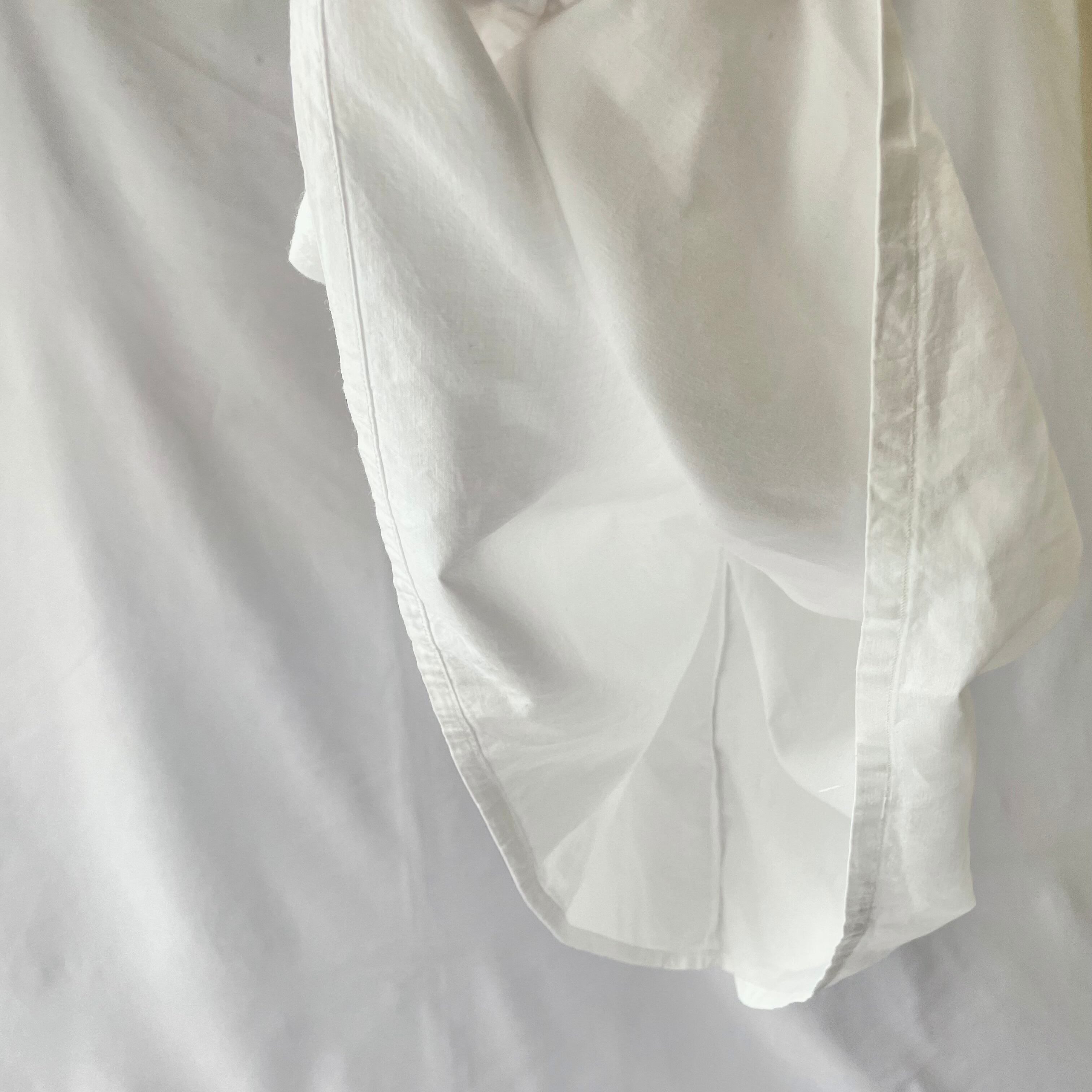 古いキッチンリネンの様な、薄手だけどとてもしっかりしているコットン素材に細やかなステッチ。