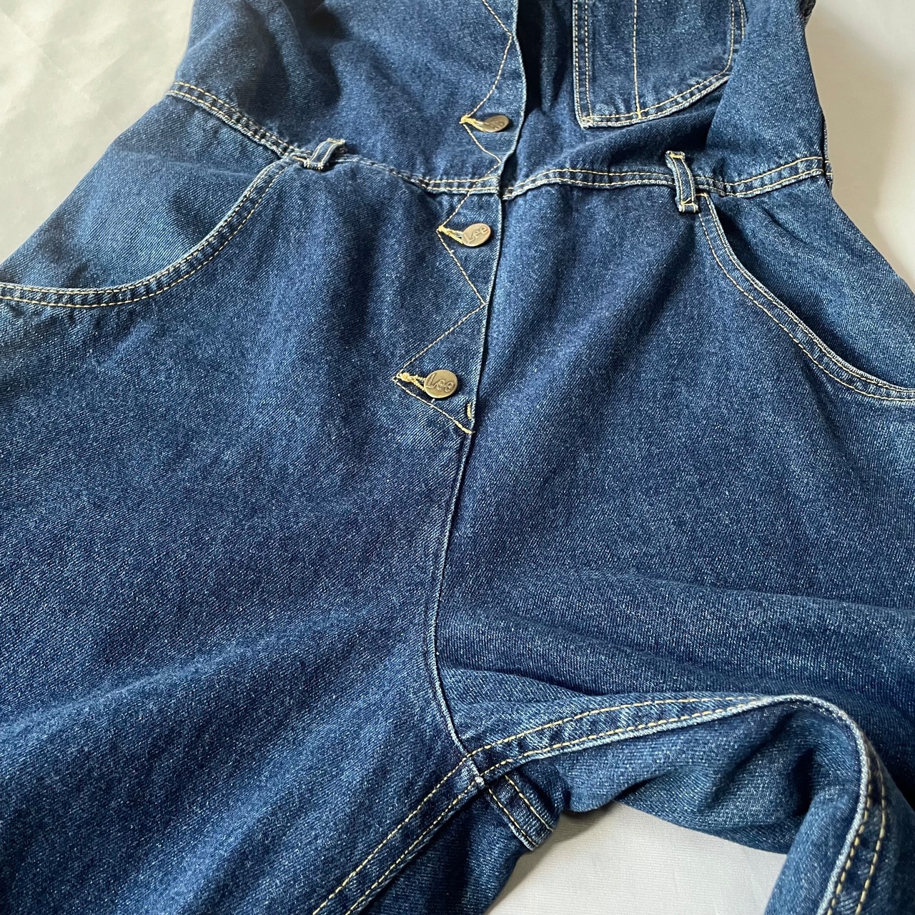 キャミソールタイプの細い肩紐で女性らしく着られる、アメリカ製リー デニムオーバーオールです。ポケット多数。状態良好です。