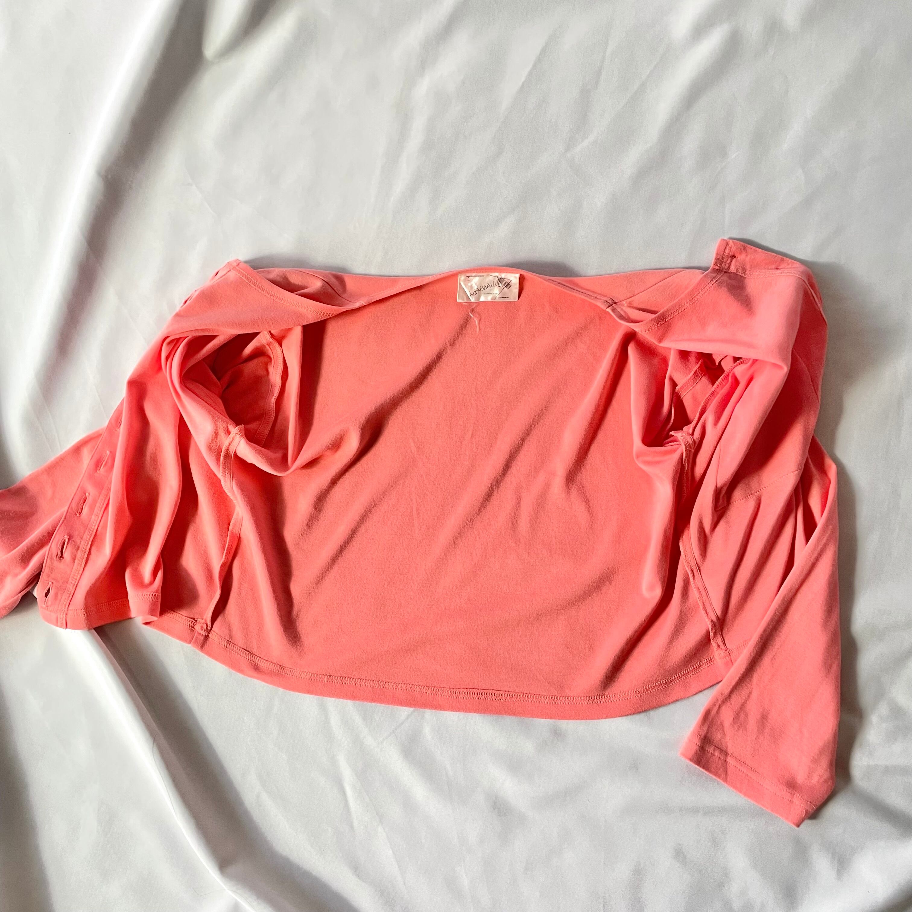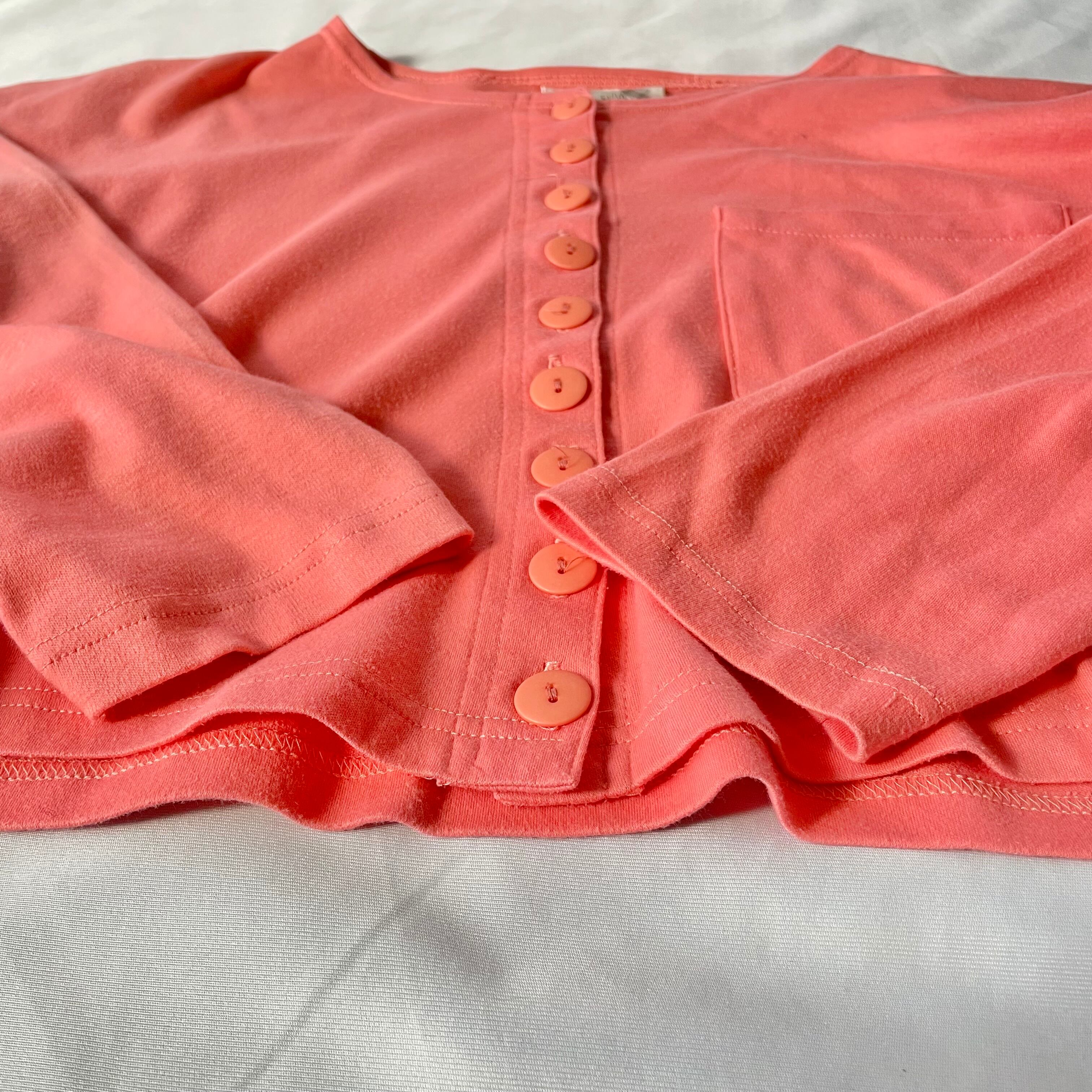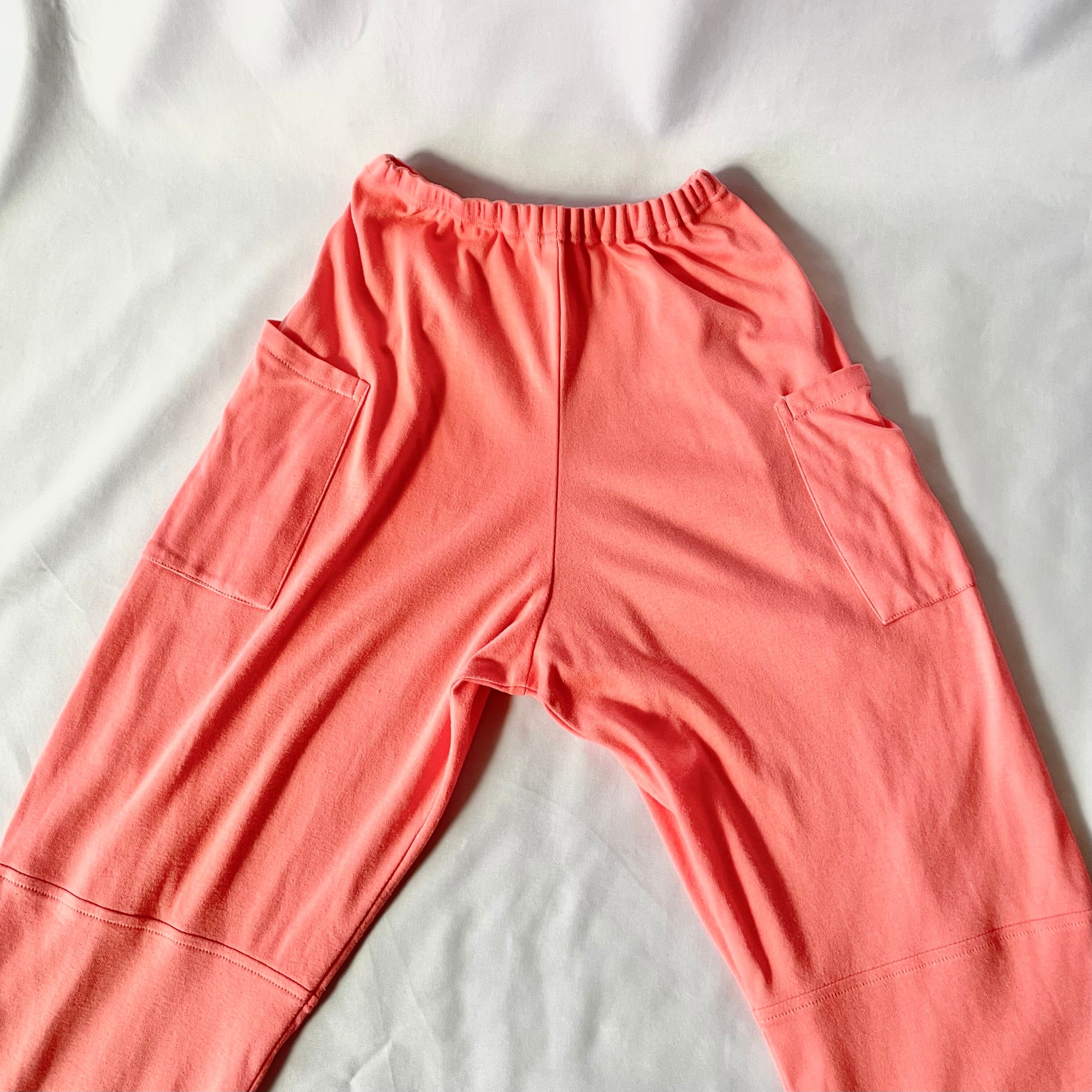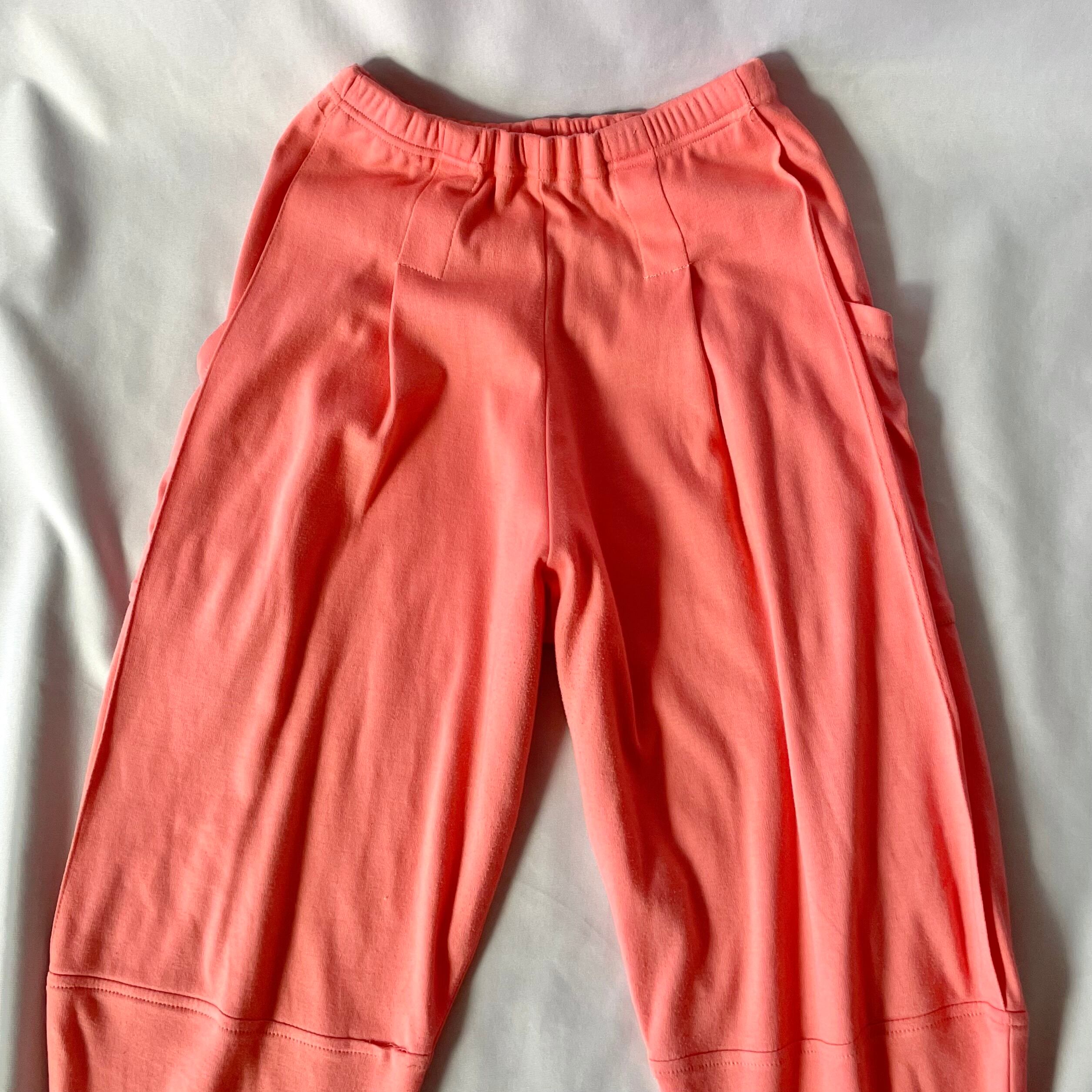 リラックスした雰囲気と明るさが可愛らしいサーモンピンクのカットソー地セットアップです。