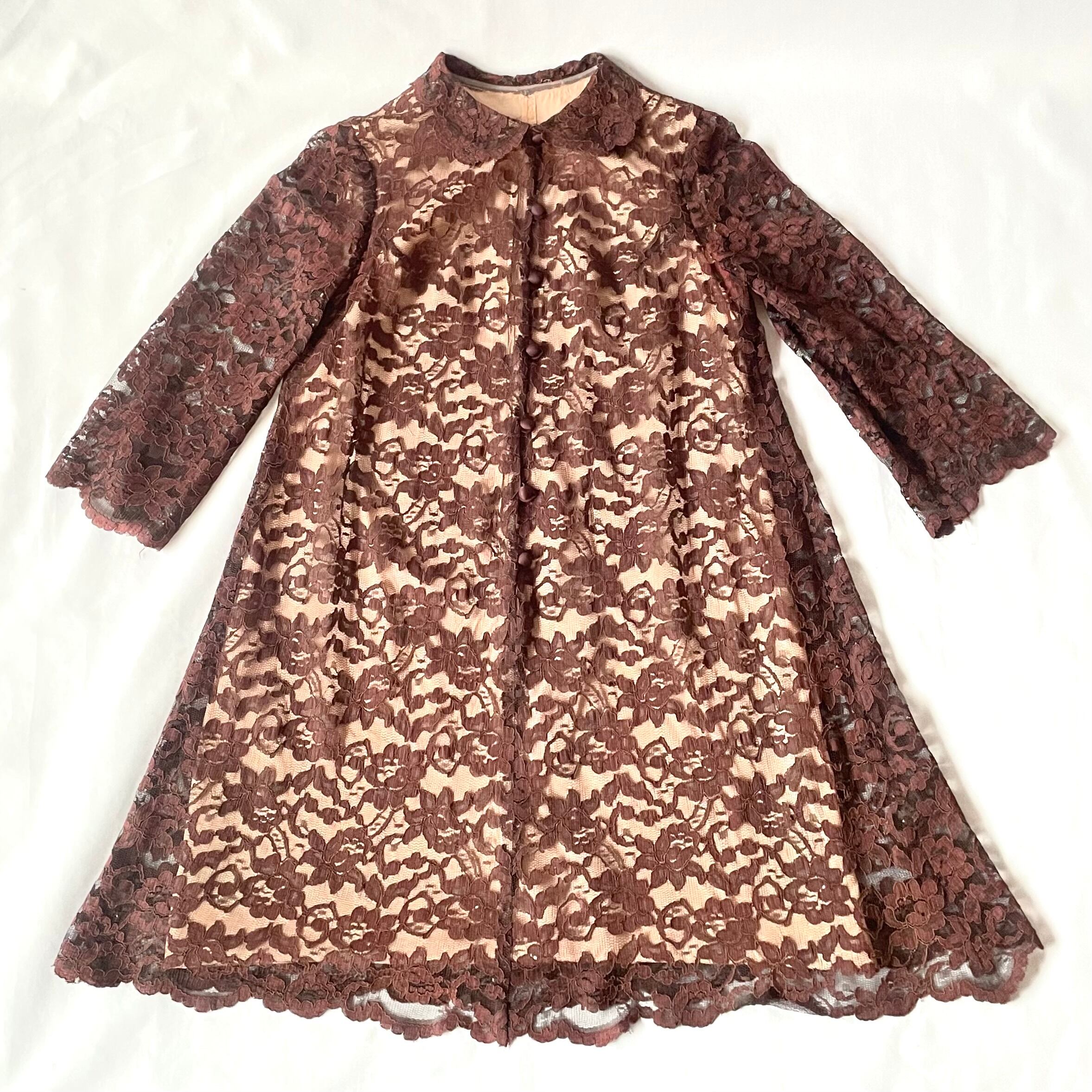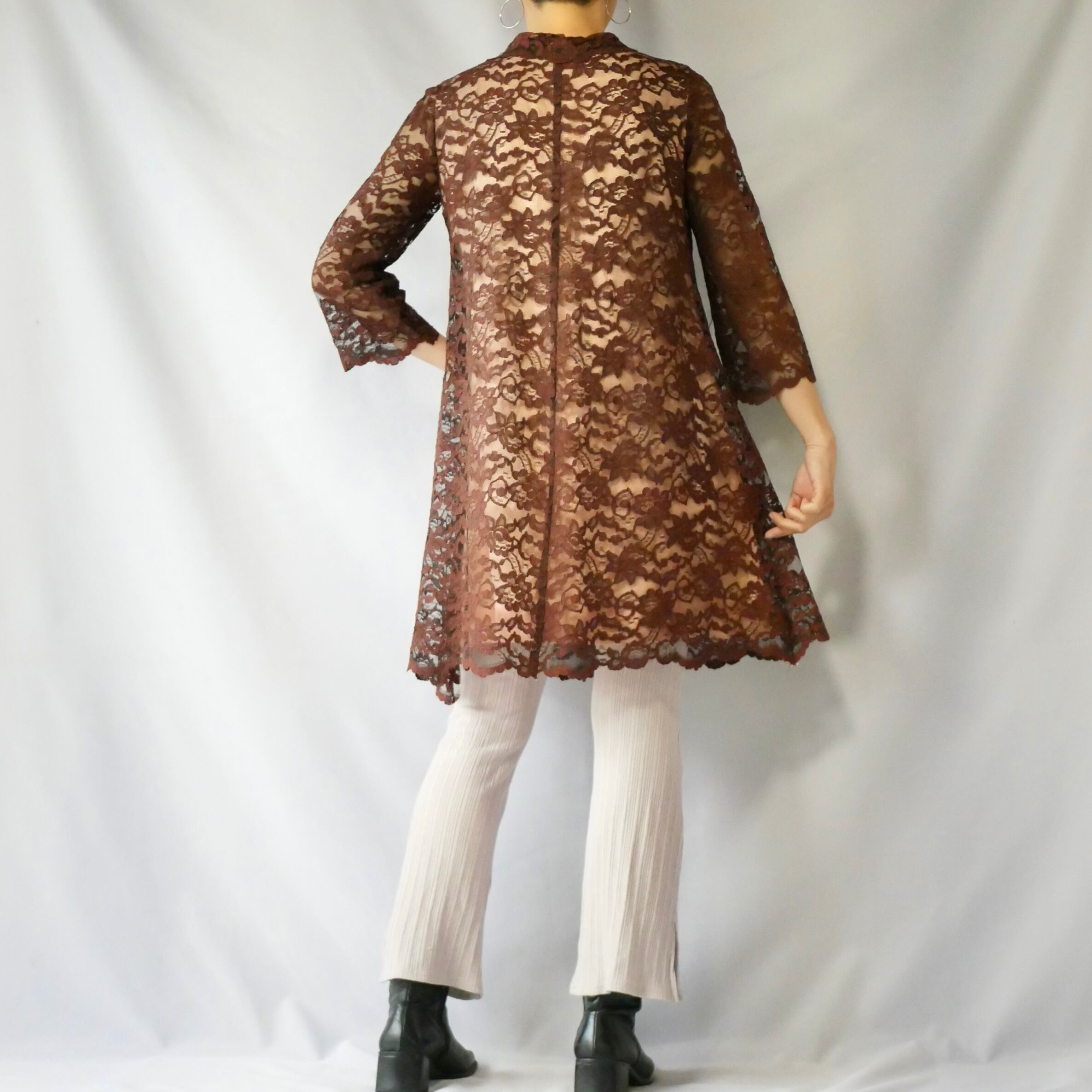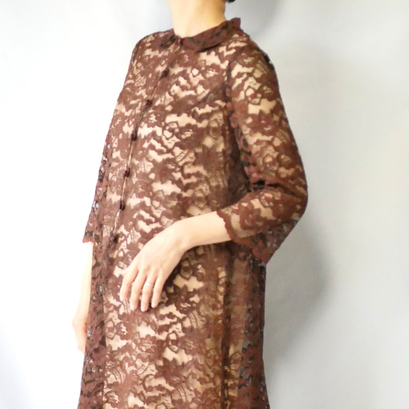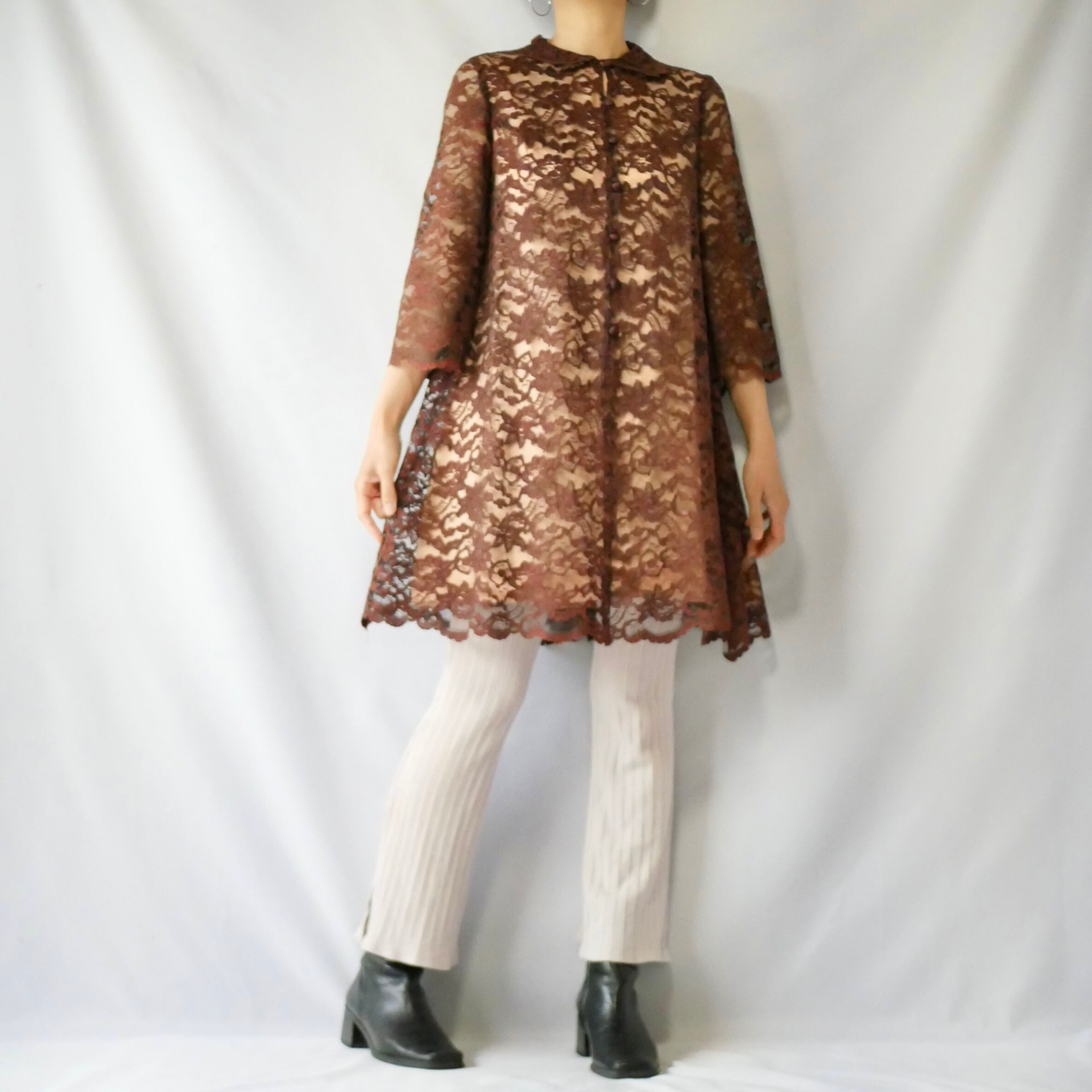 60s Made in USA brown all lace mini onepiece ブラウンレースワンピース