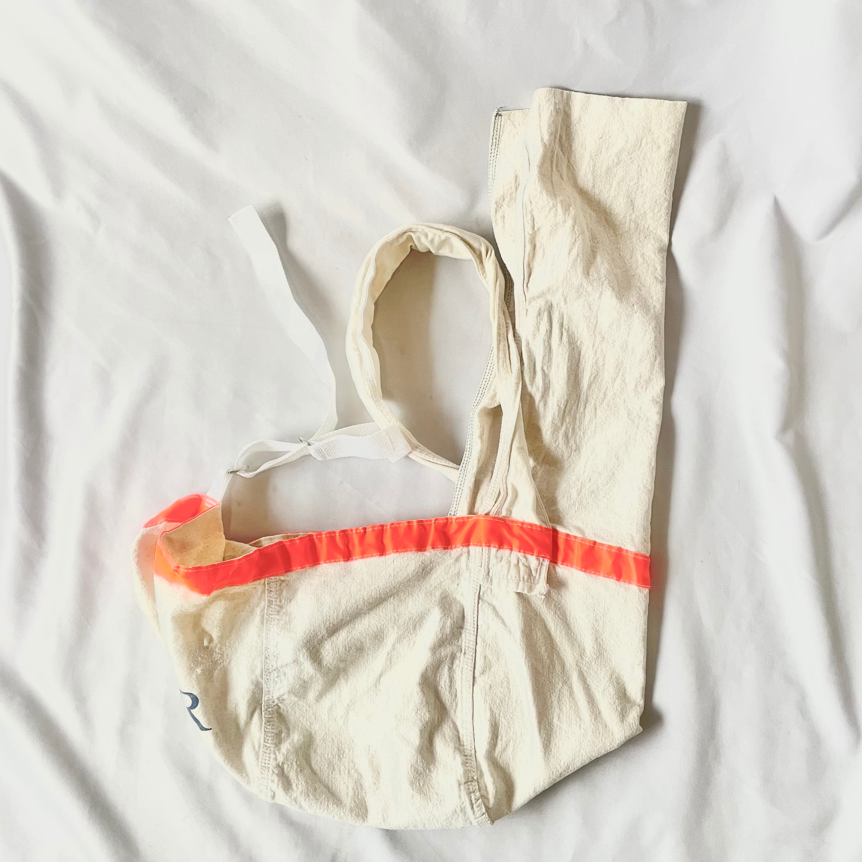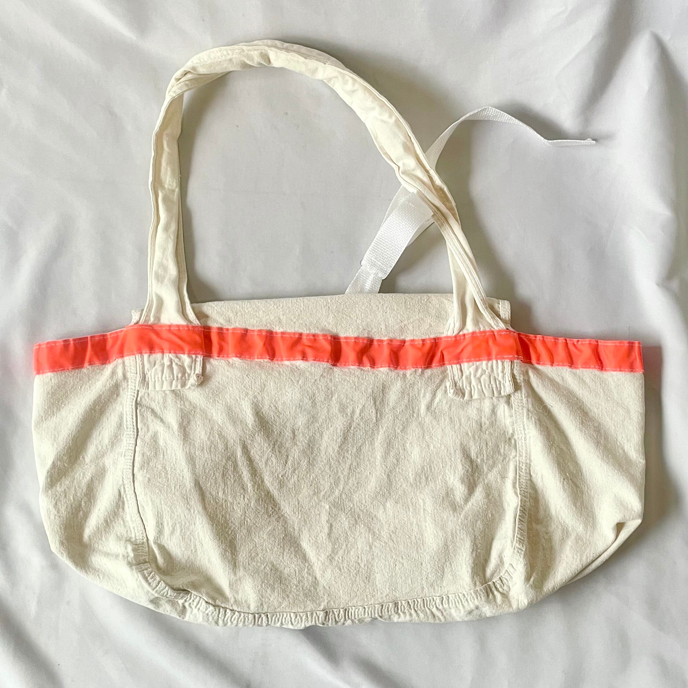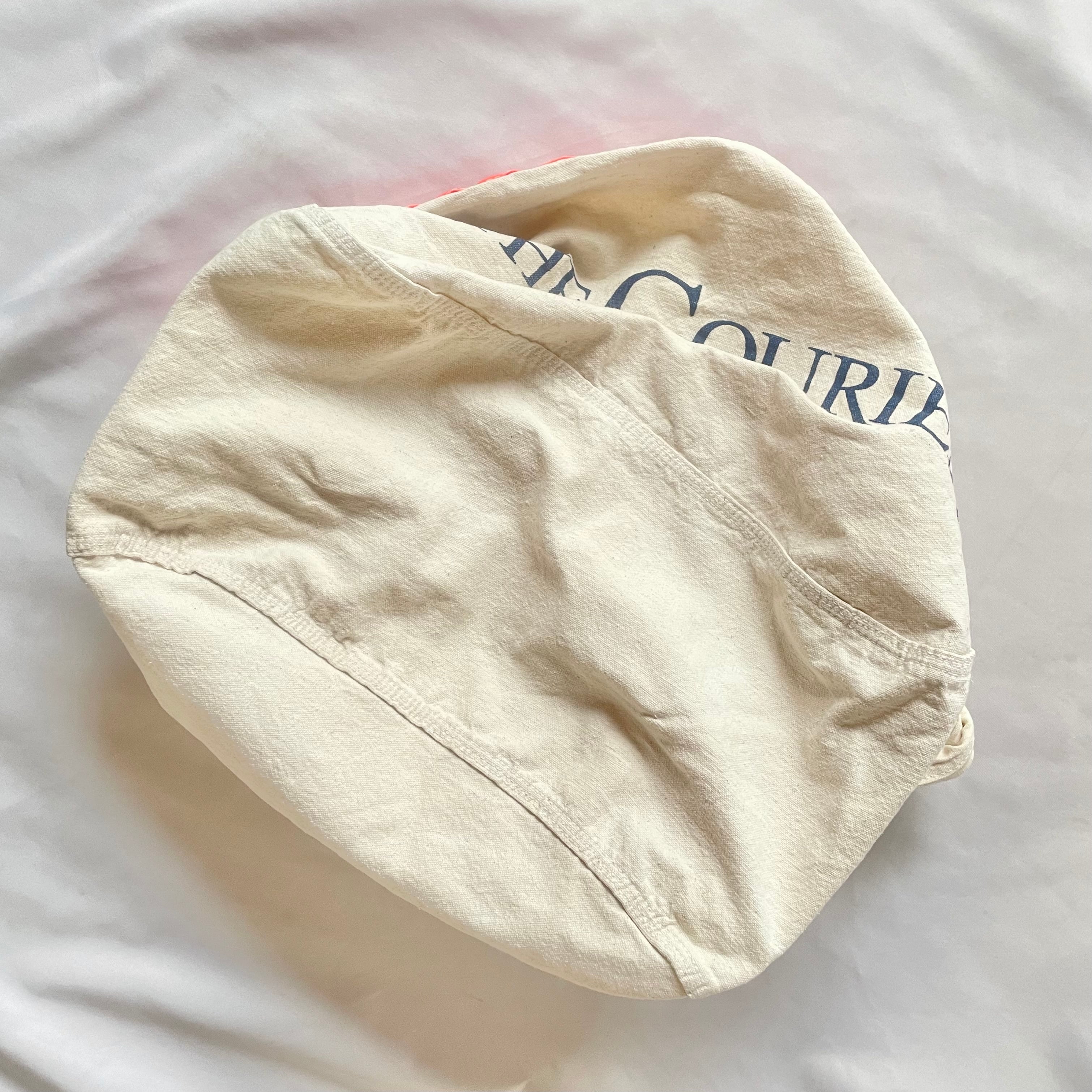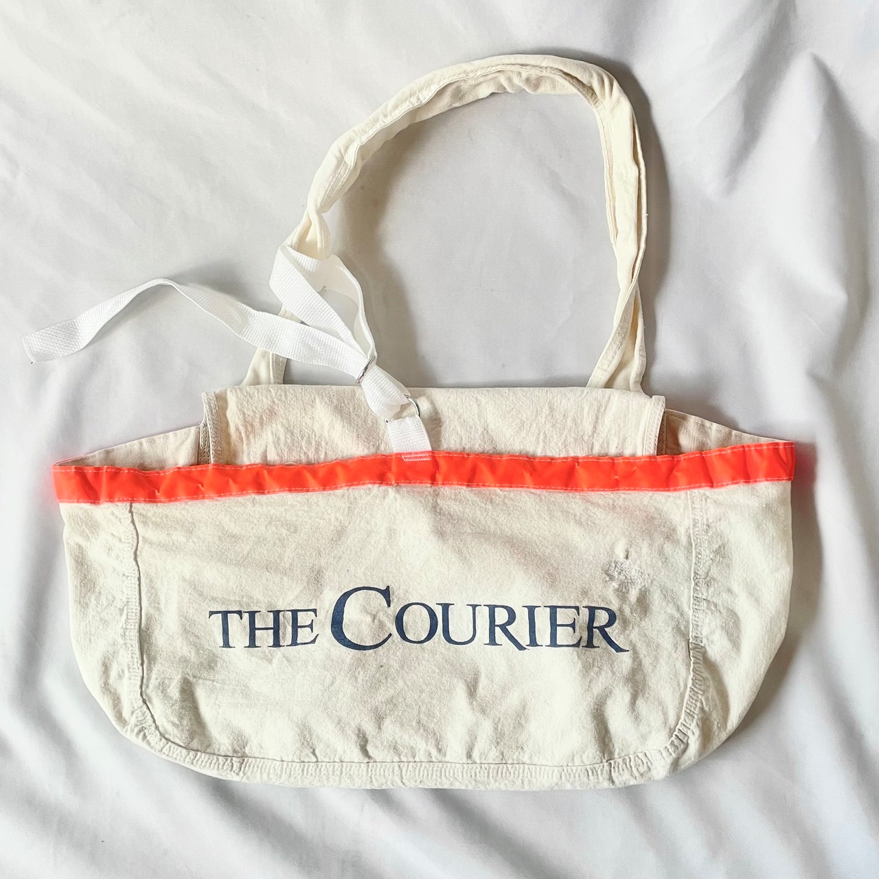 イギリスの学生向け週刊誌 the courierの8-90年代ヴィンテージ ニュースペーパーバッグです。後付けなのか元々なのか定かではありませんが、白いテープが付いていて蓋を閉められる造りになっています。