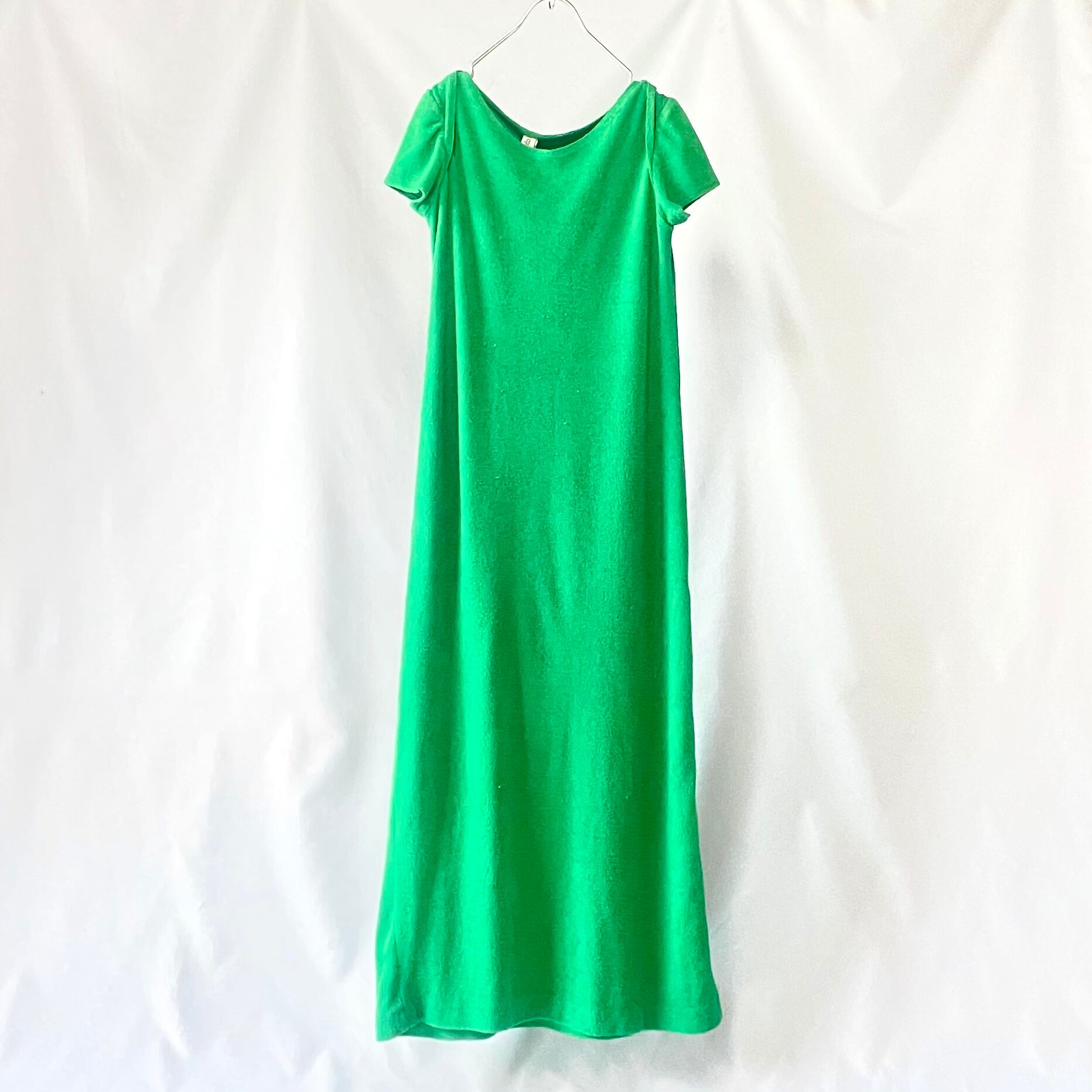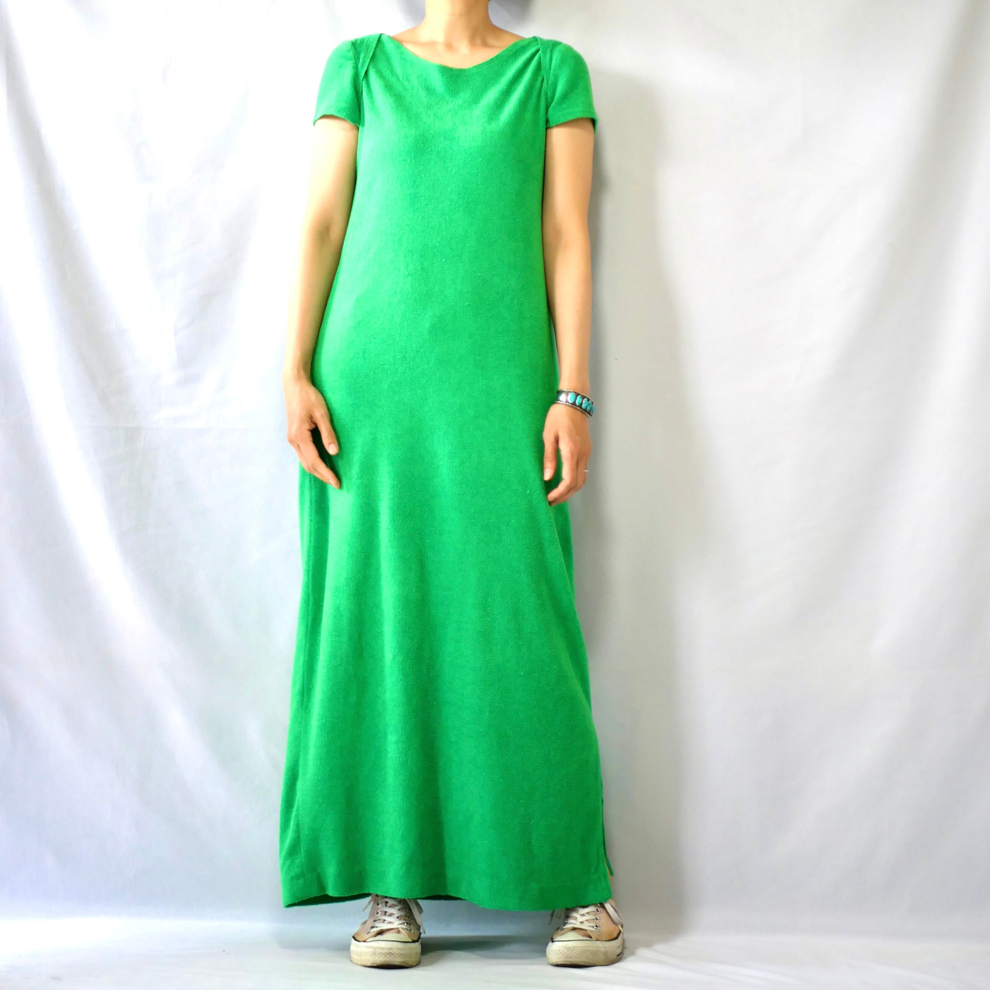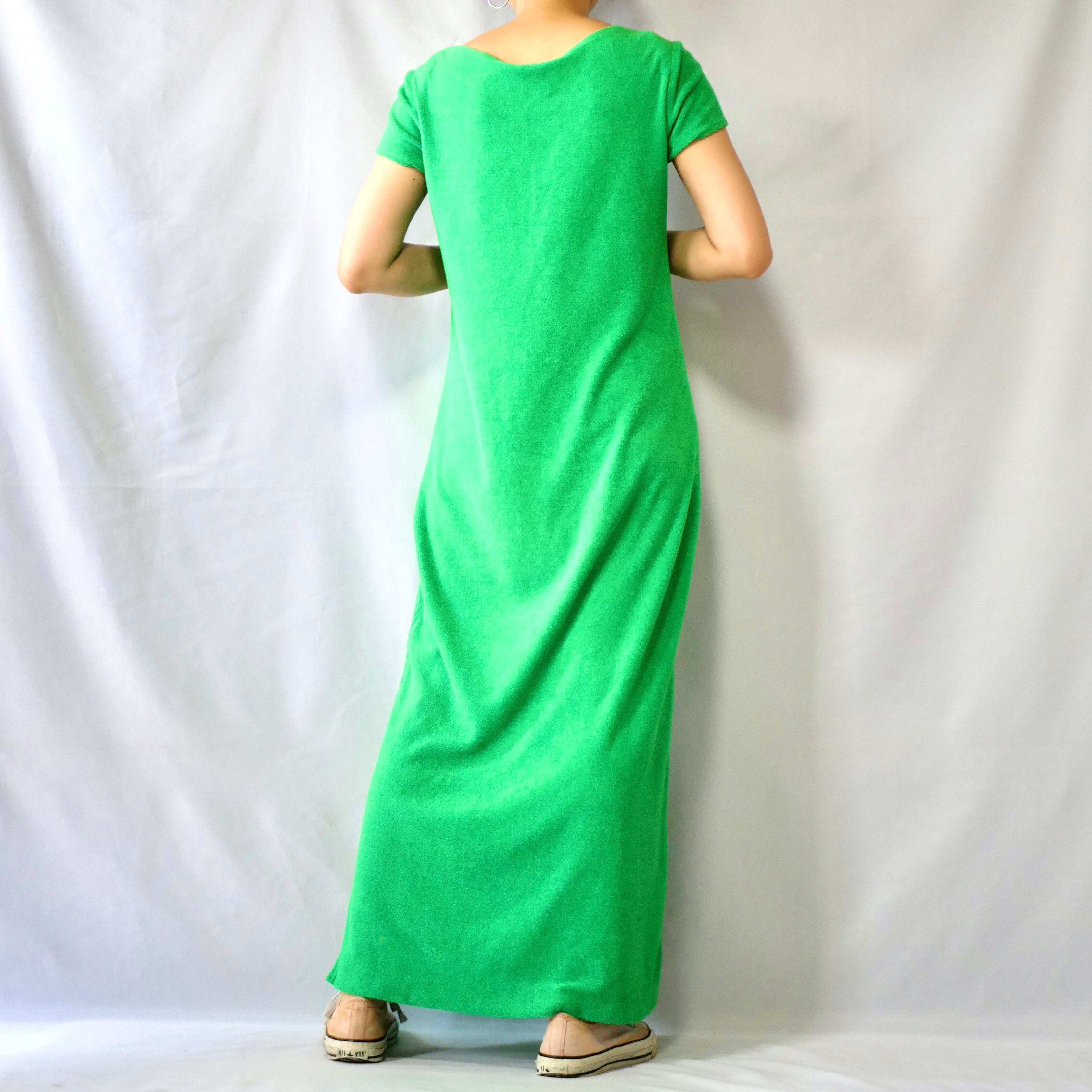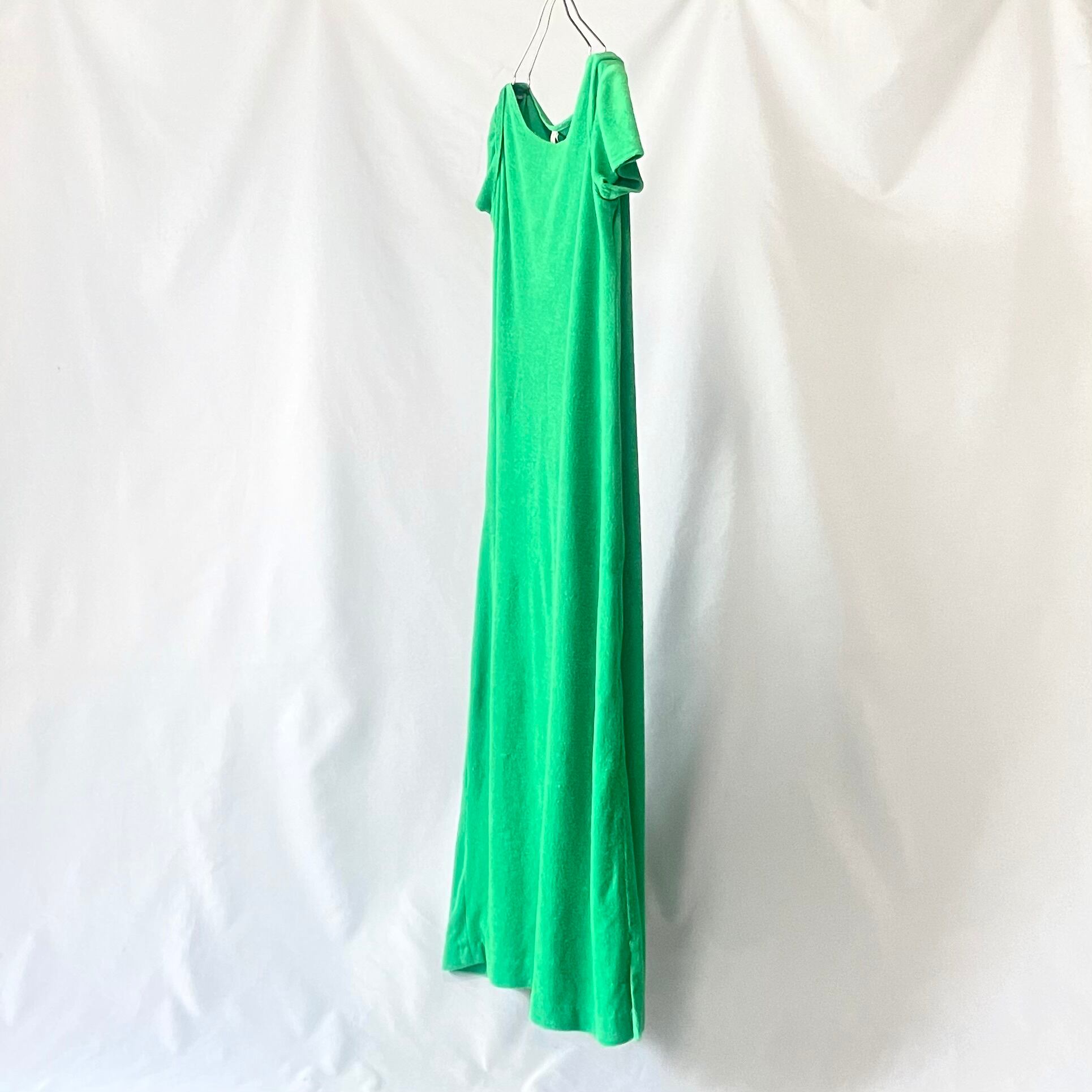 パキッとしたグリーンカラーが素敵な柔らかなパイル地のヴィンテージ マキシ丈Tシャツワンピースです。