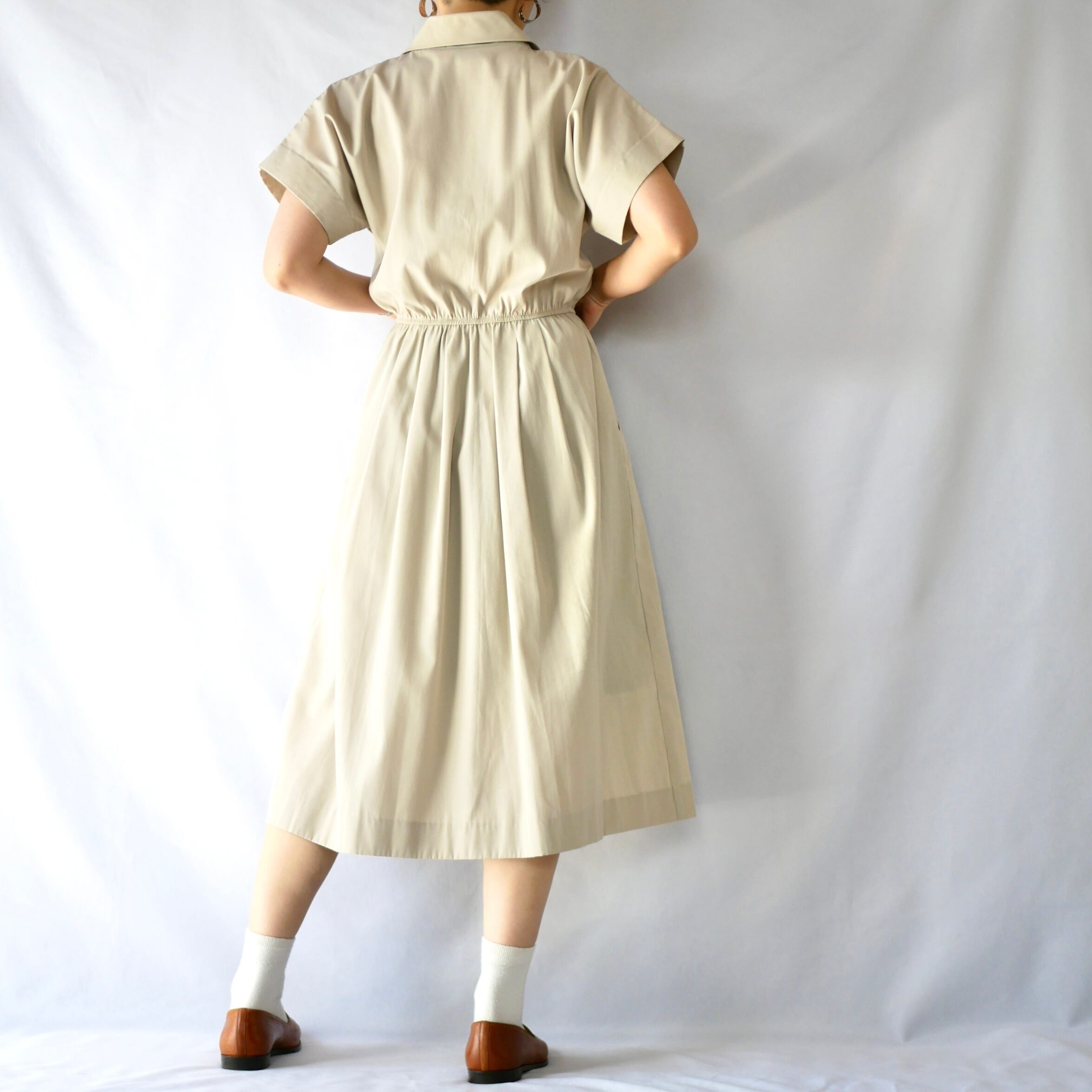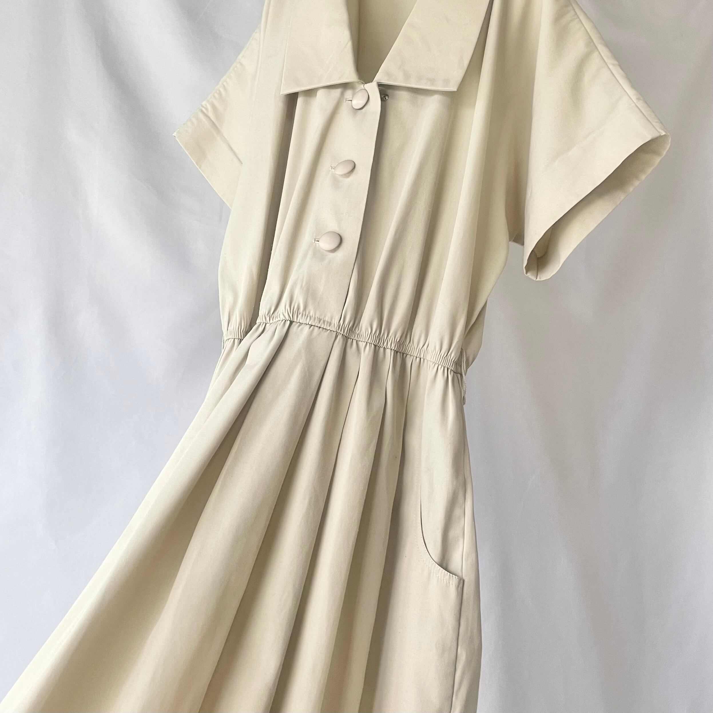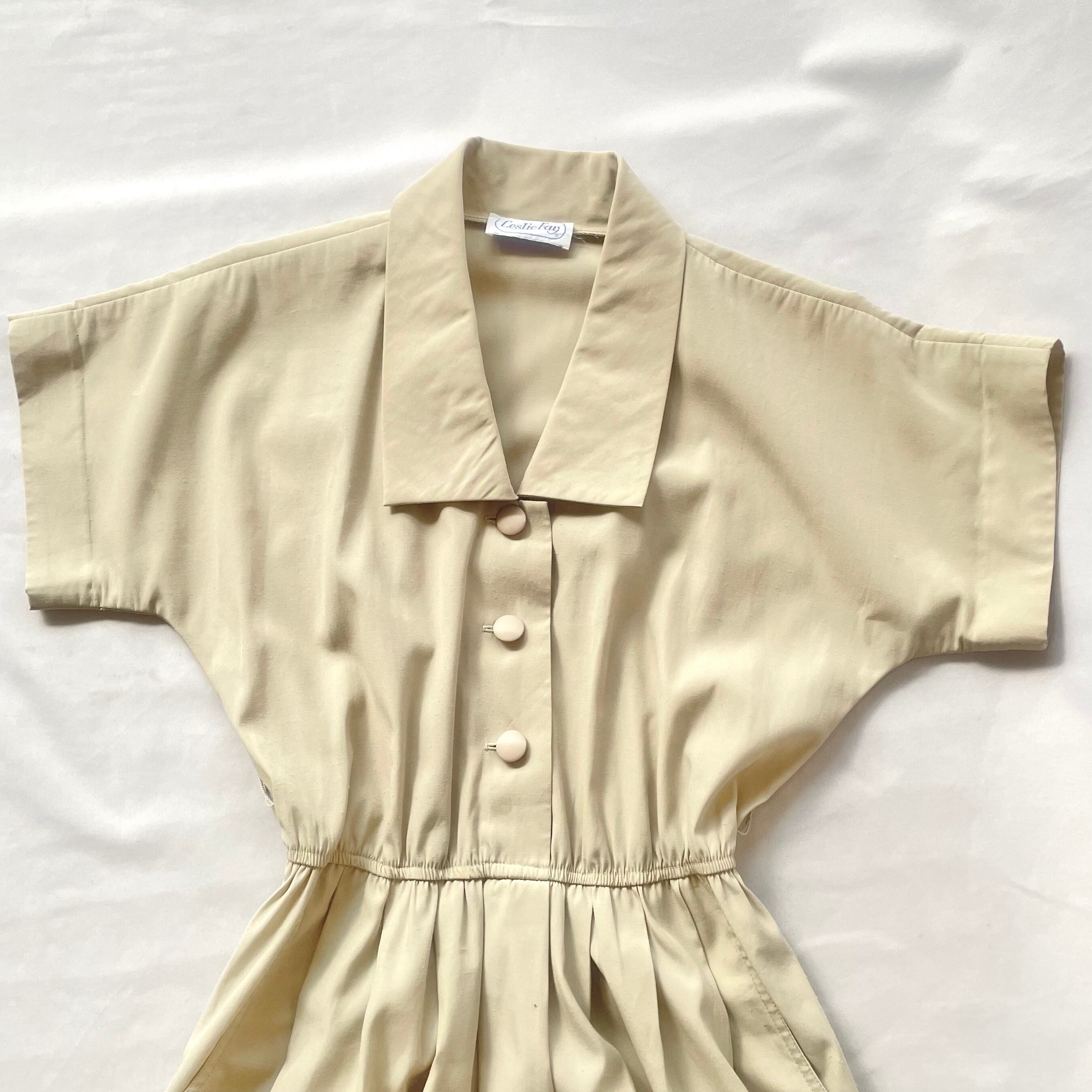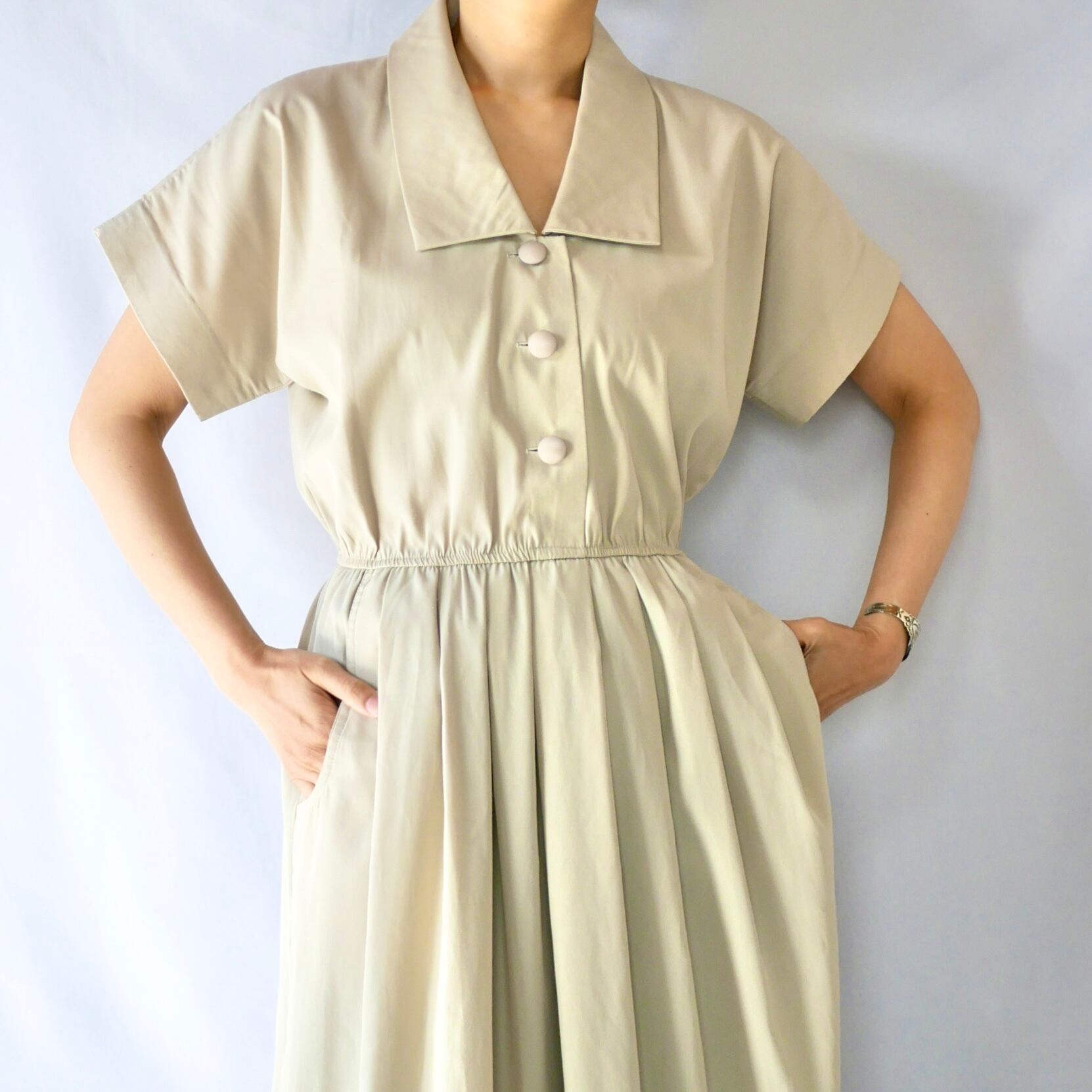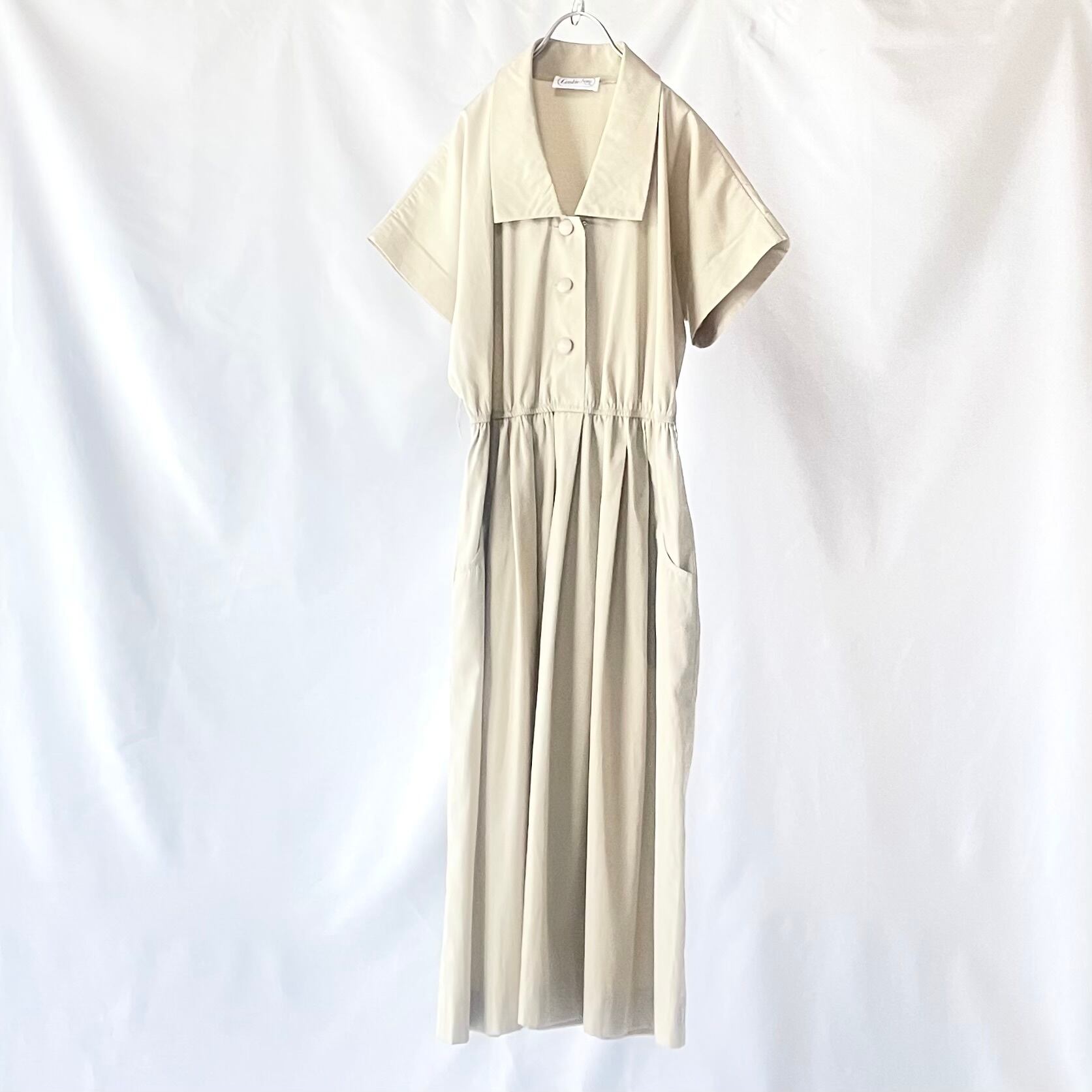 Leslie fay beige shirt onepiece ベージュ襟付きワンピース