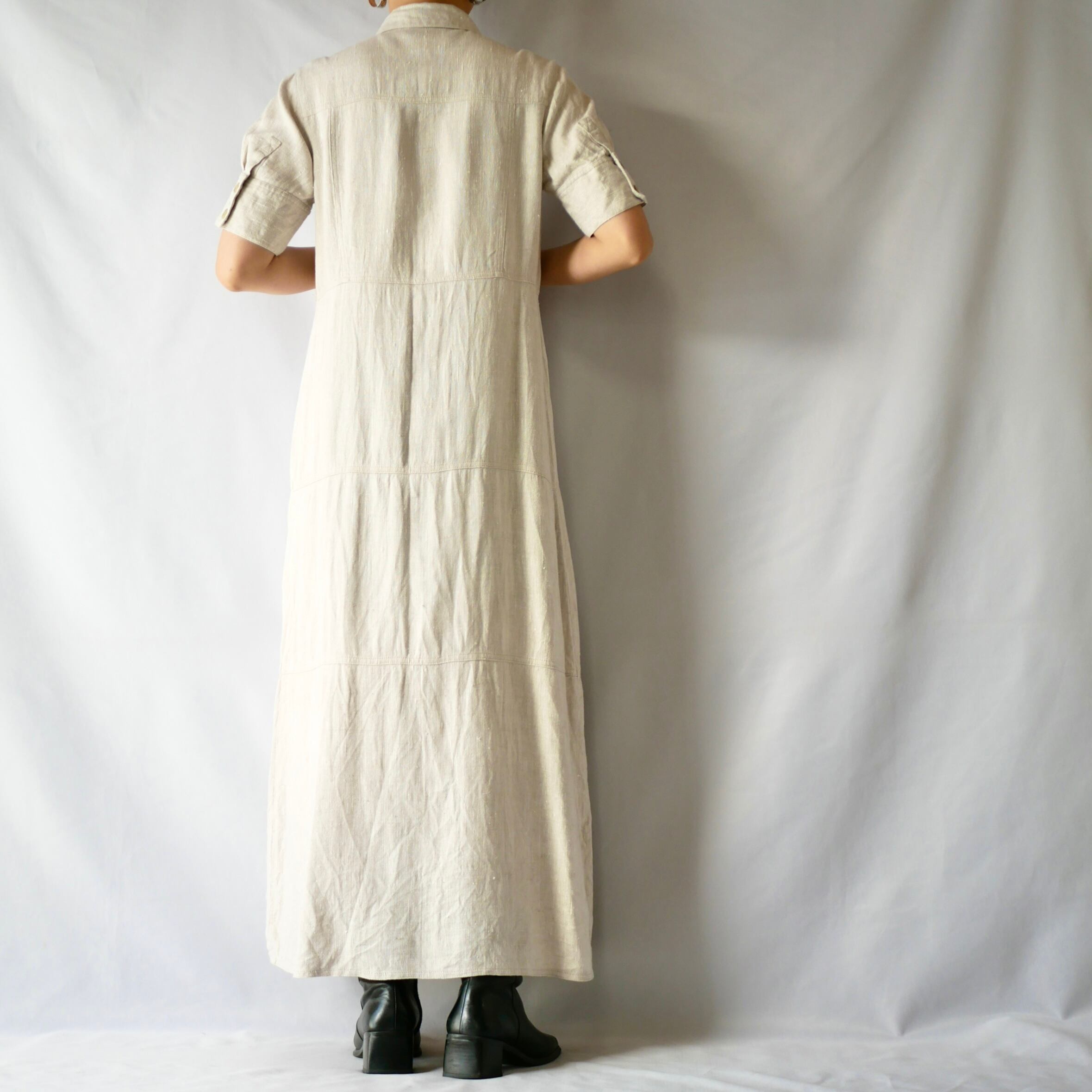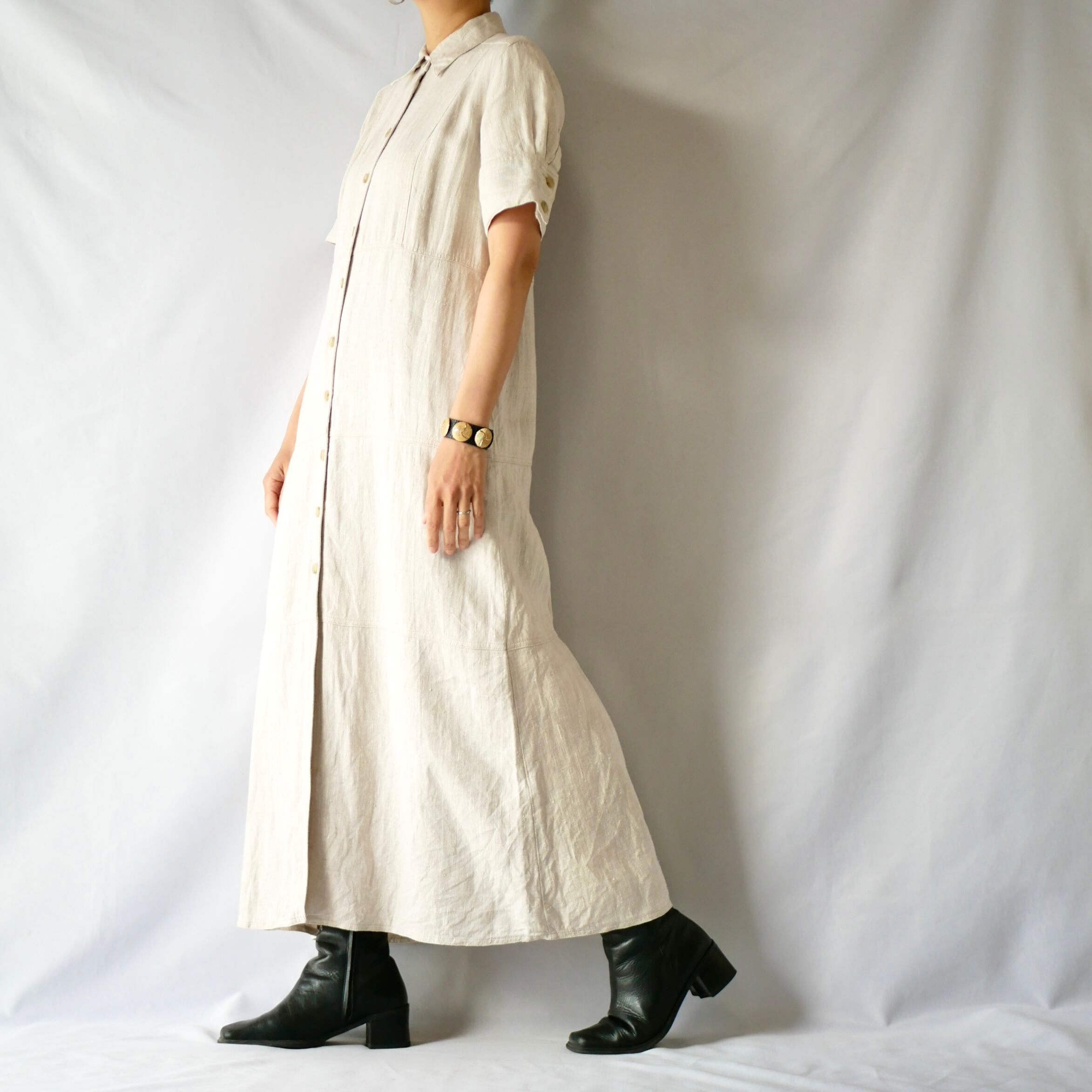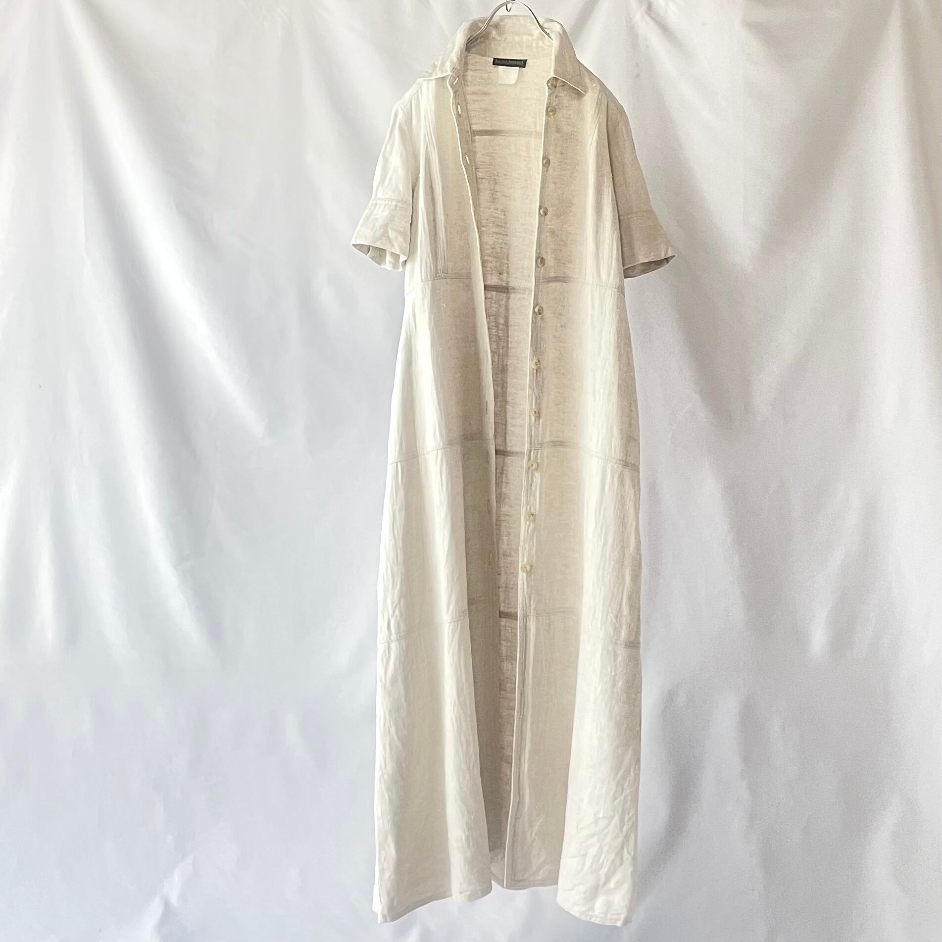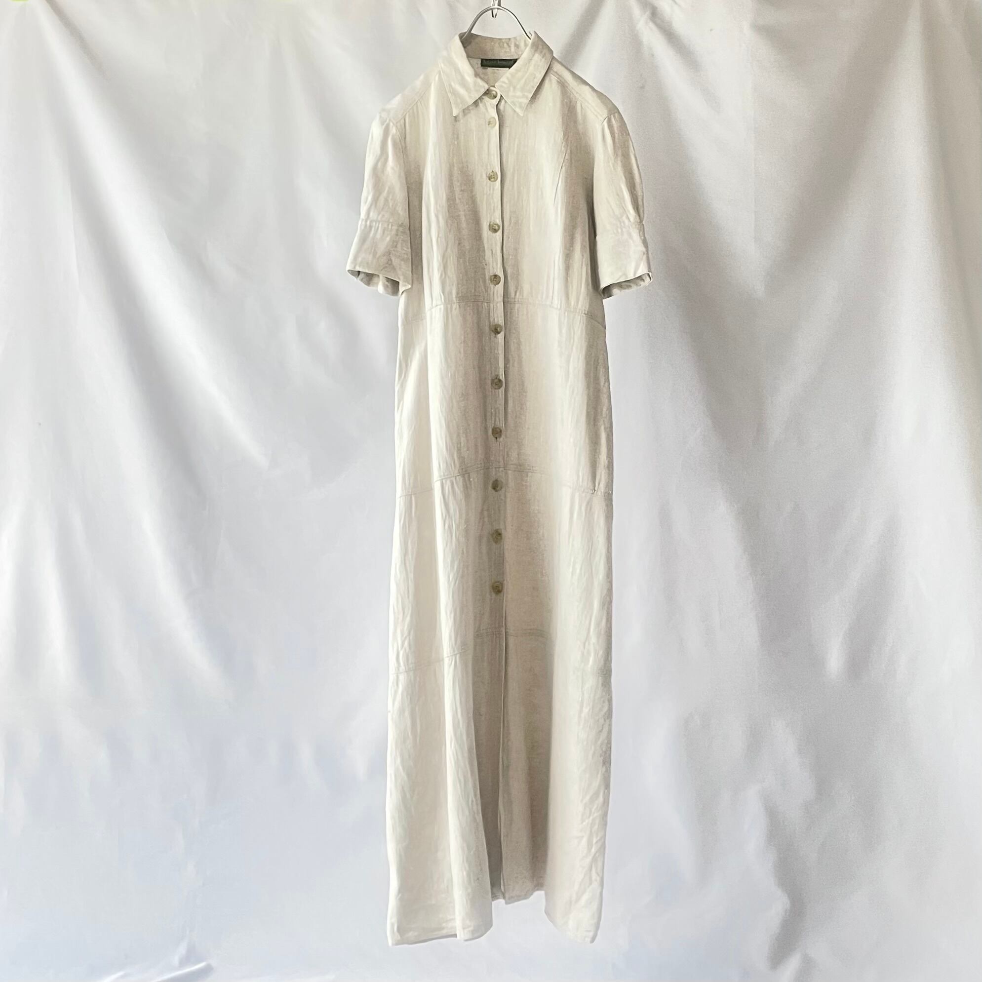 ivory linen maxi shirt onepiece アイボリーリネンマキシ丈シャツワンピース