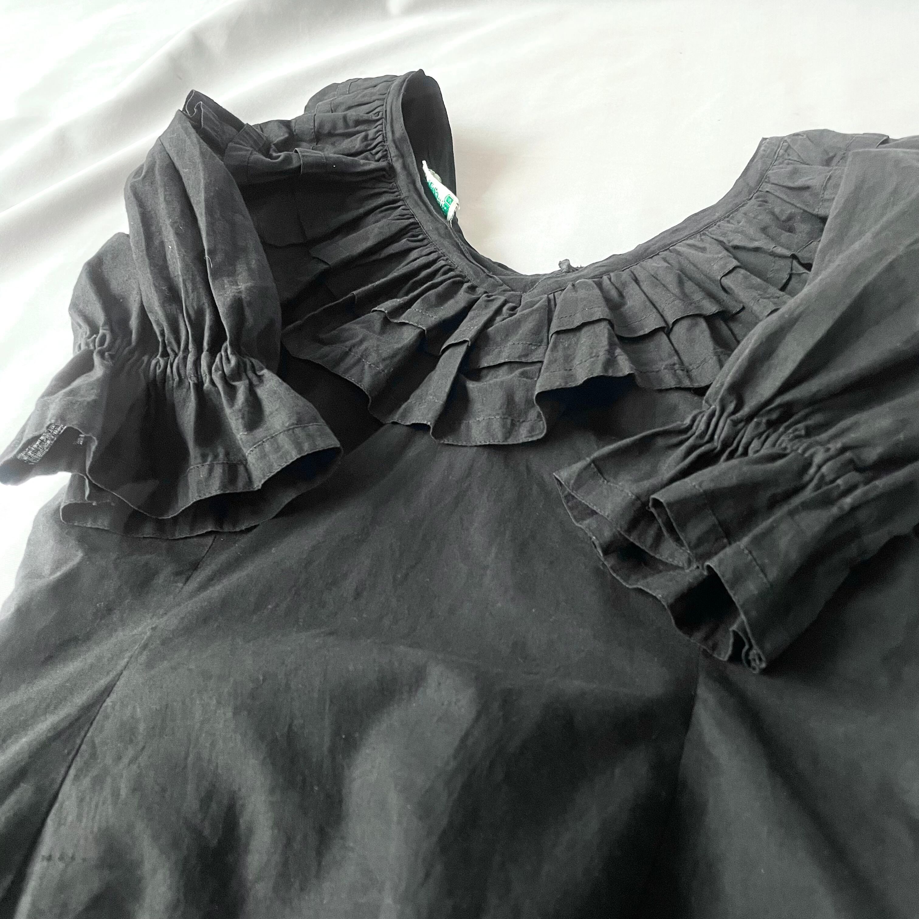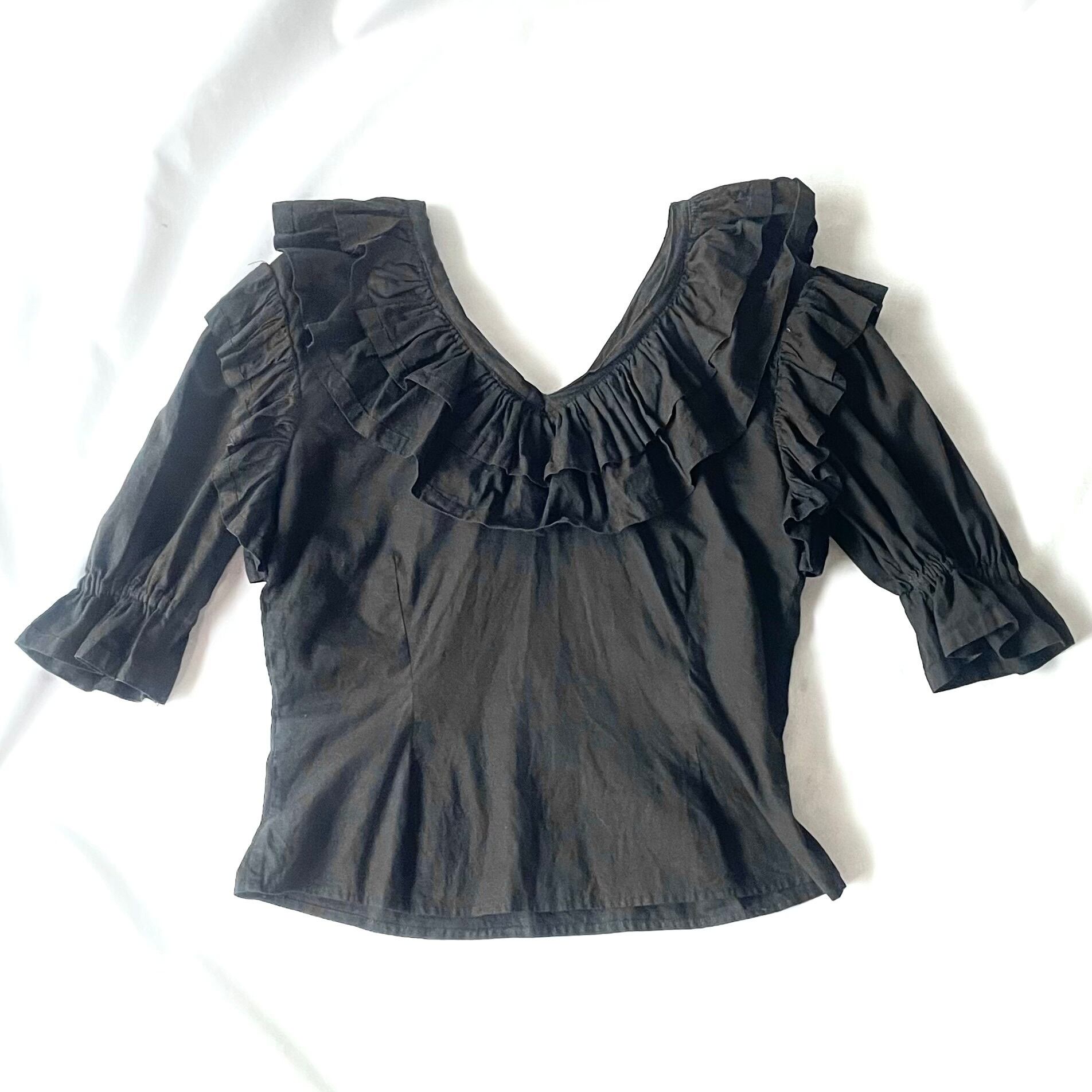 70s indian cotton black frill blouse ヴィンテージインド綿黒フリルプルオーバートップス