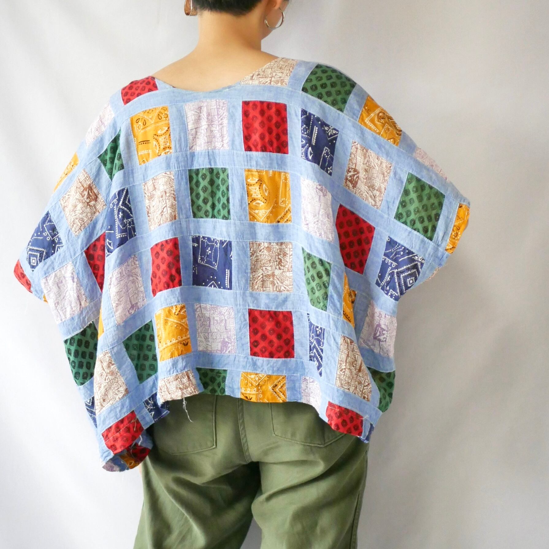 dungaree bandana patchwork pullover tops ダンガリー×バンダナパッチワークトップス