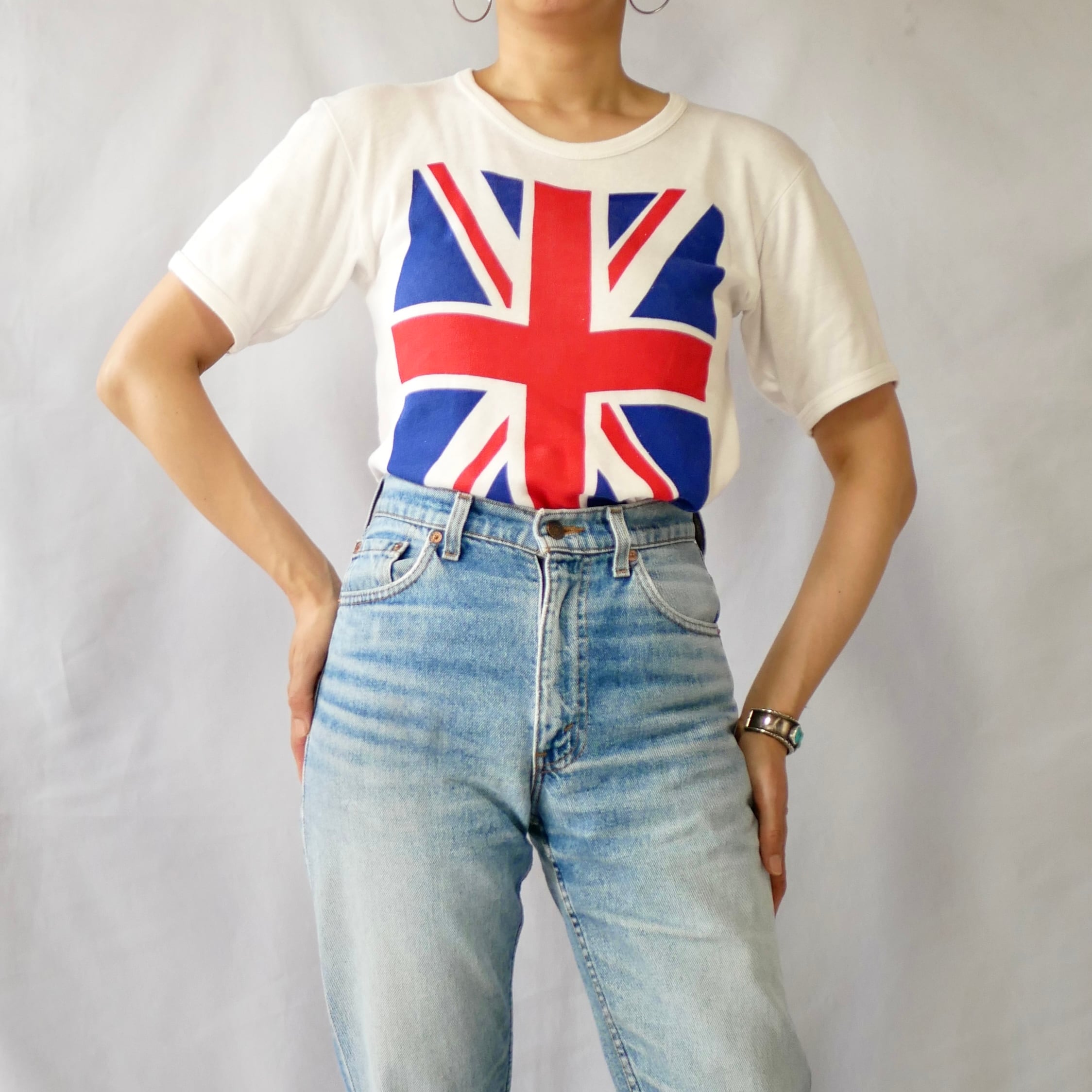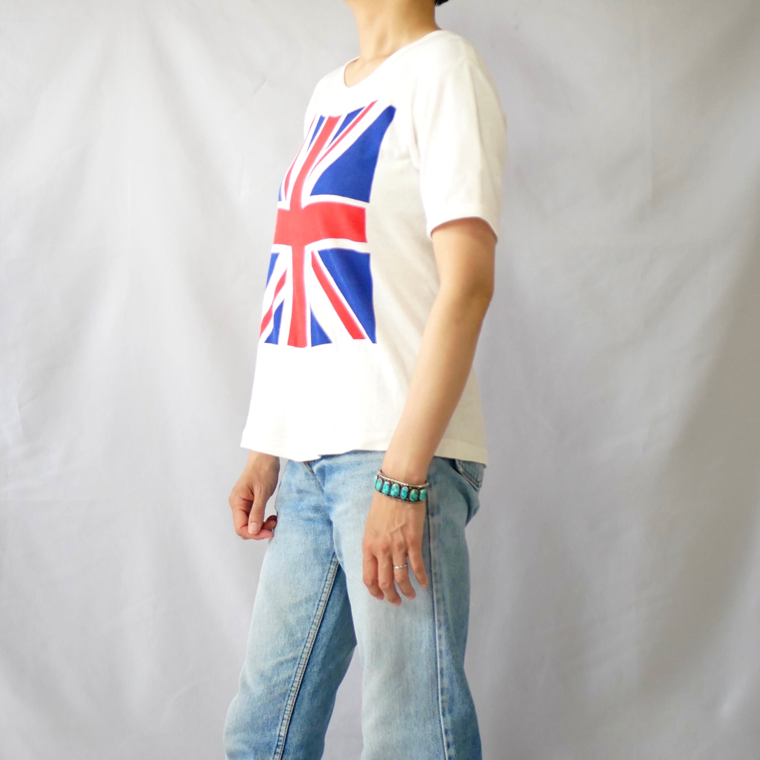 パキスタンコットン100% ユニオンジャック柄 白Tシャツです。