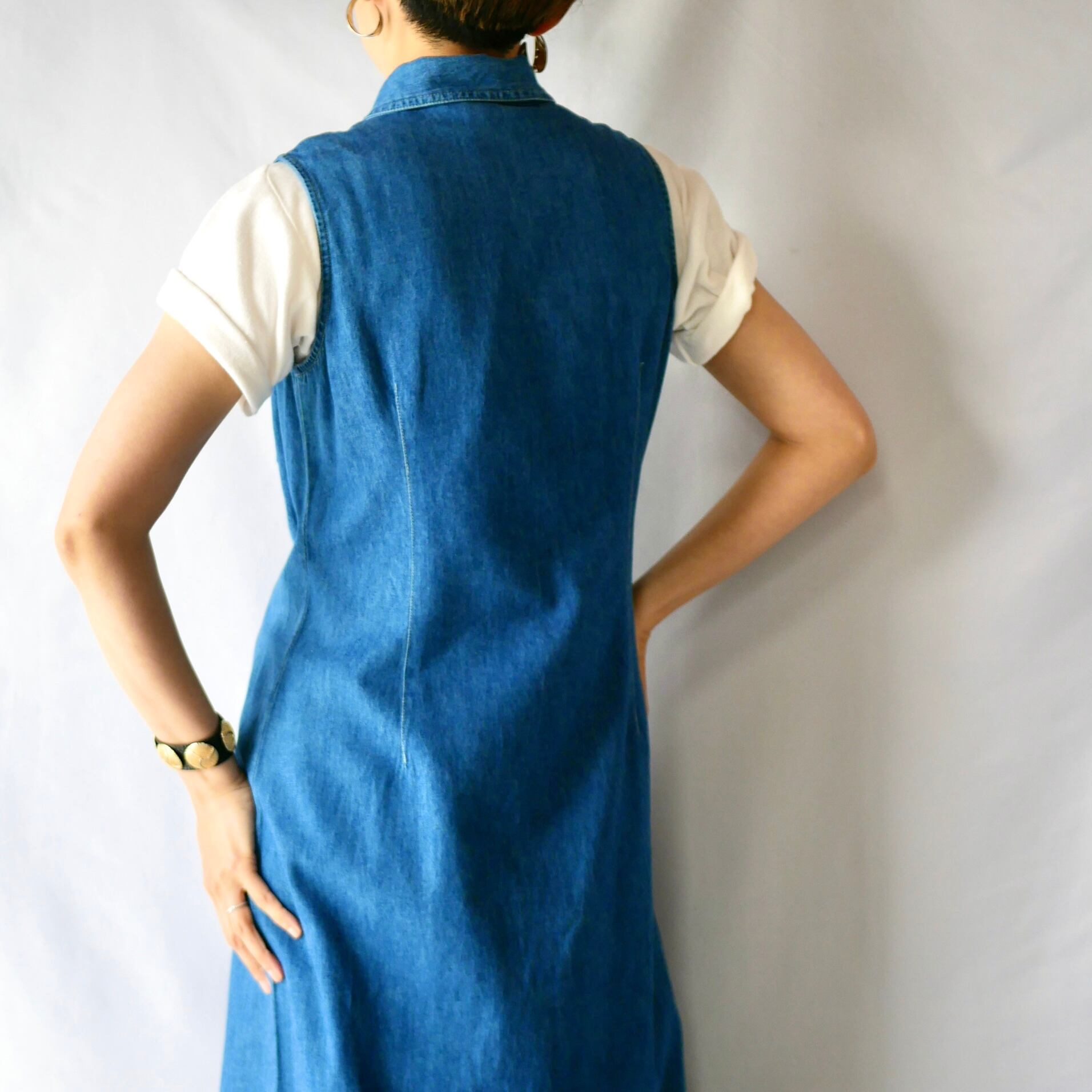 ノースリーブにフロントボタンのマキシ丈デニムワンピースです。