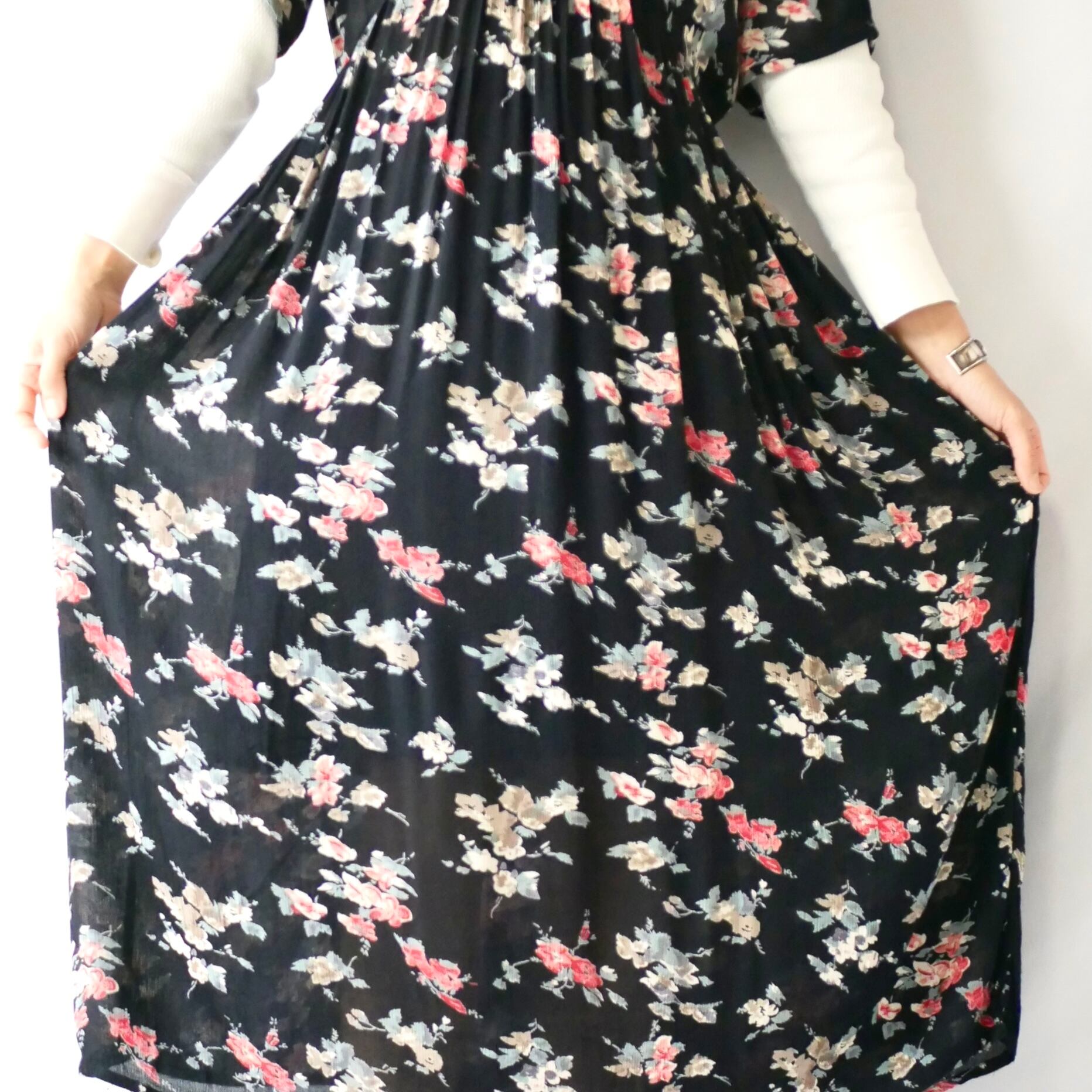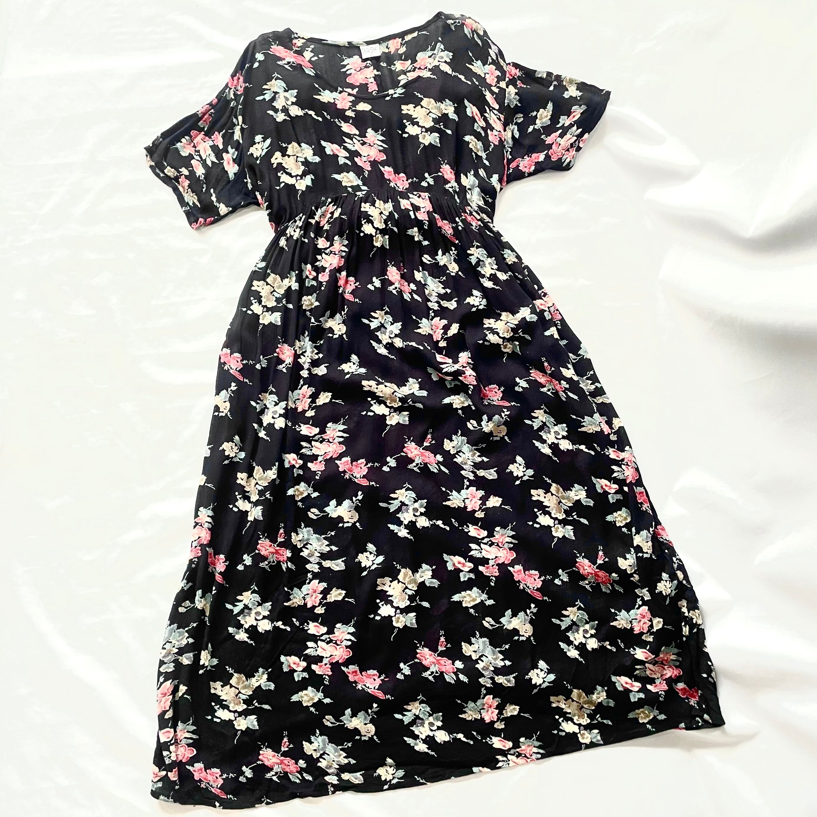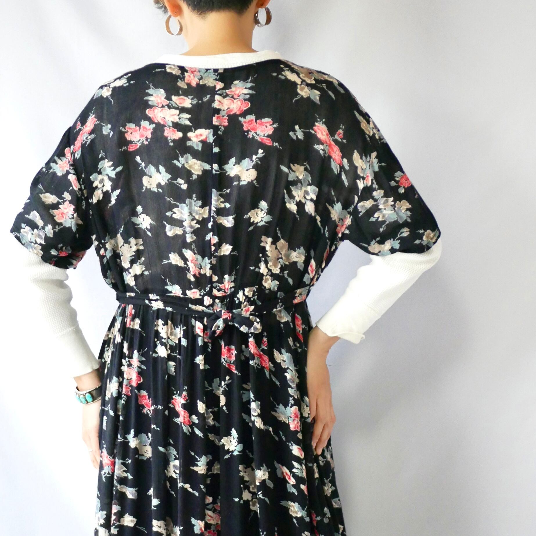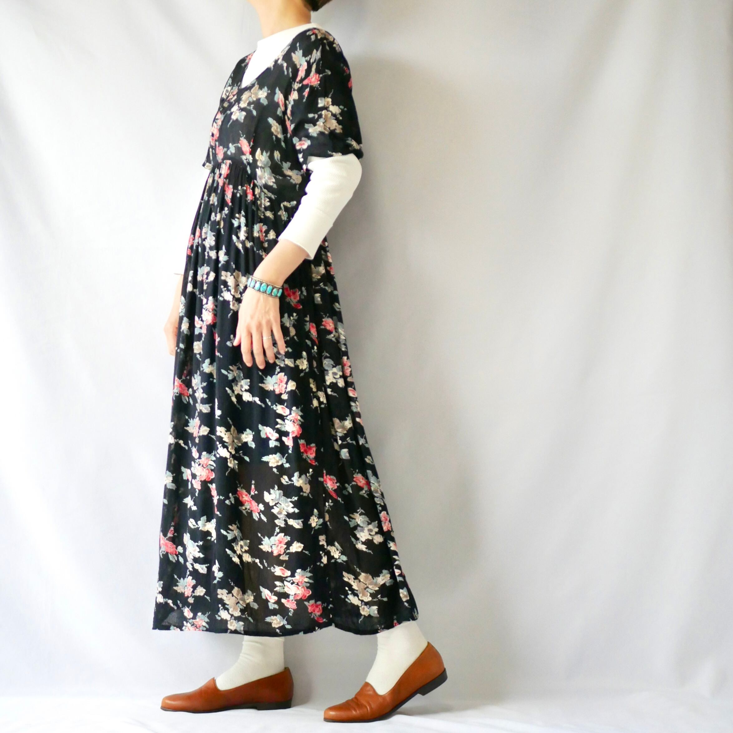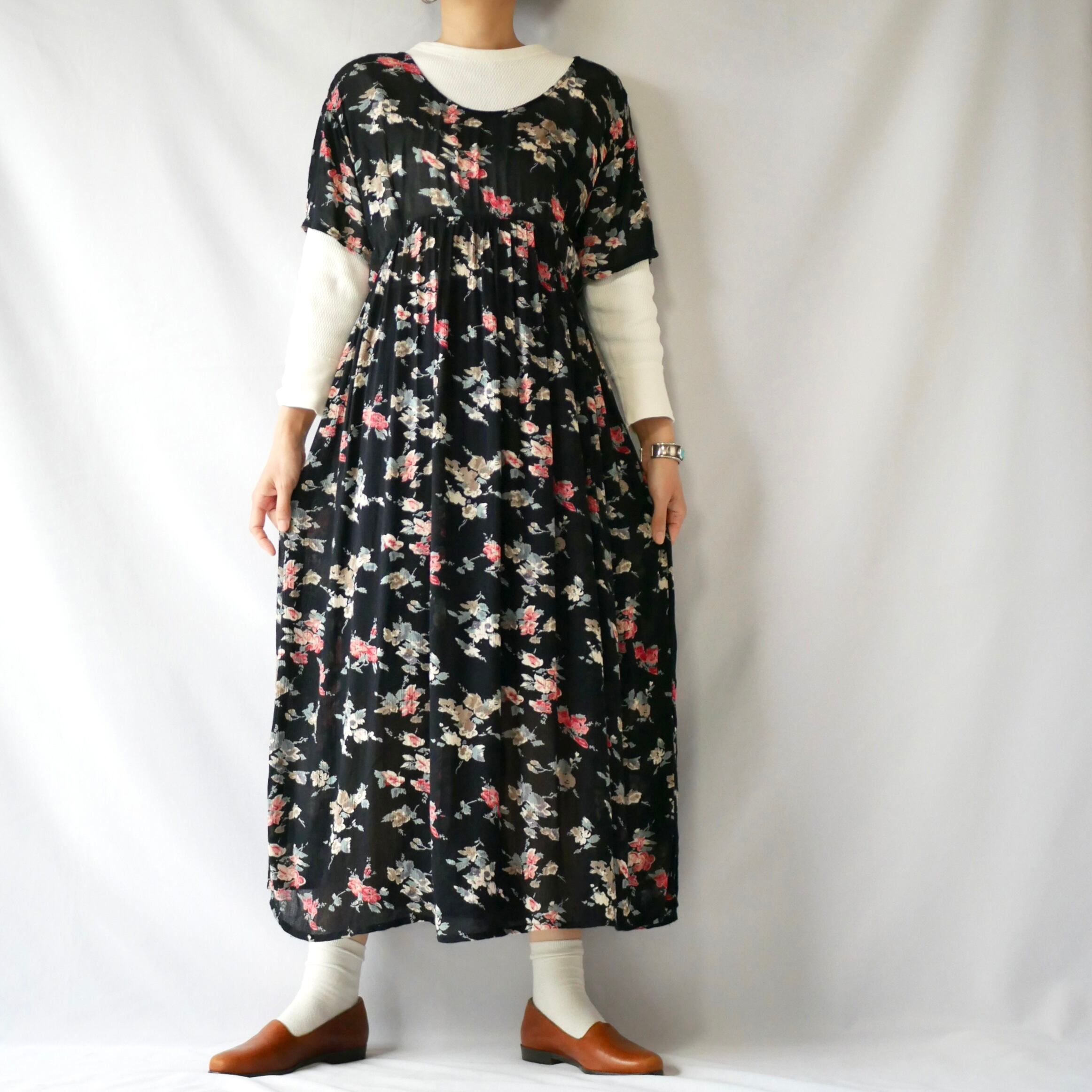 Black floral rayon maxi onepiece 黒花柄レーヨンマキシ丈ワンピース