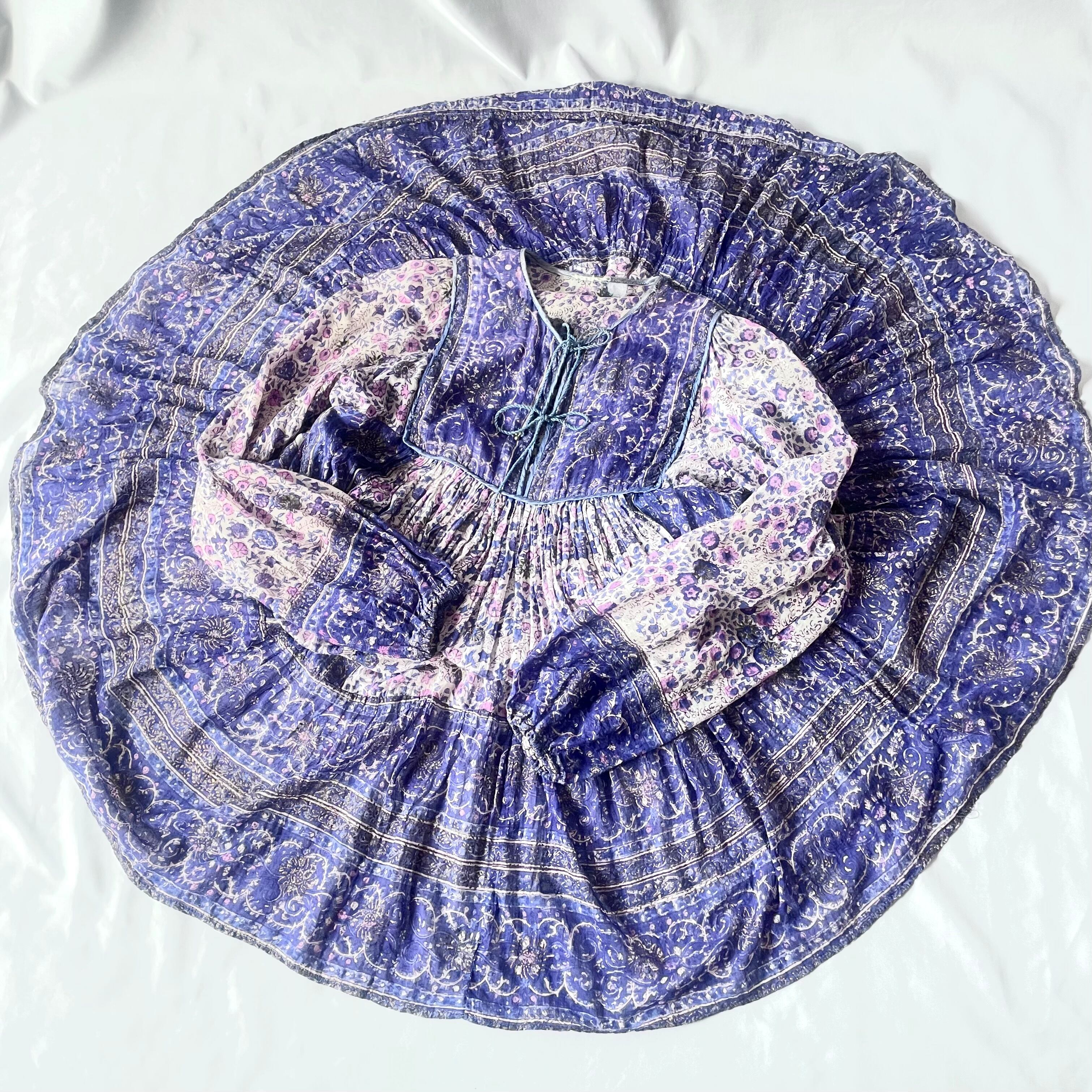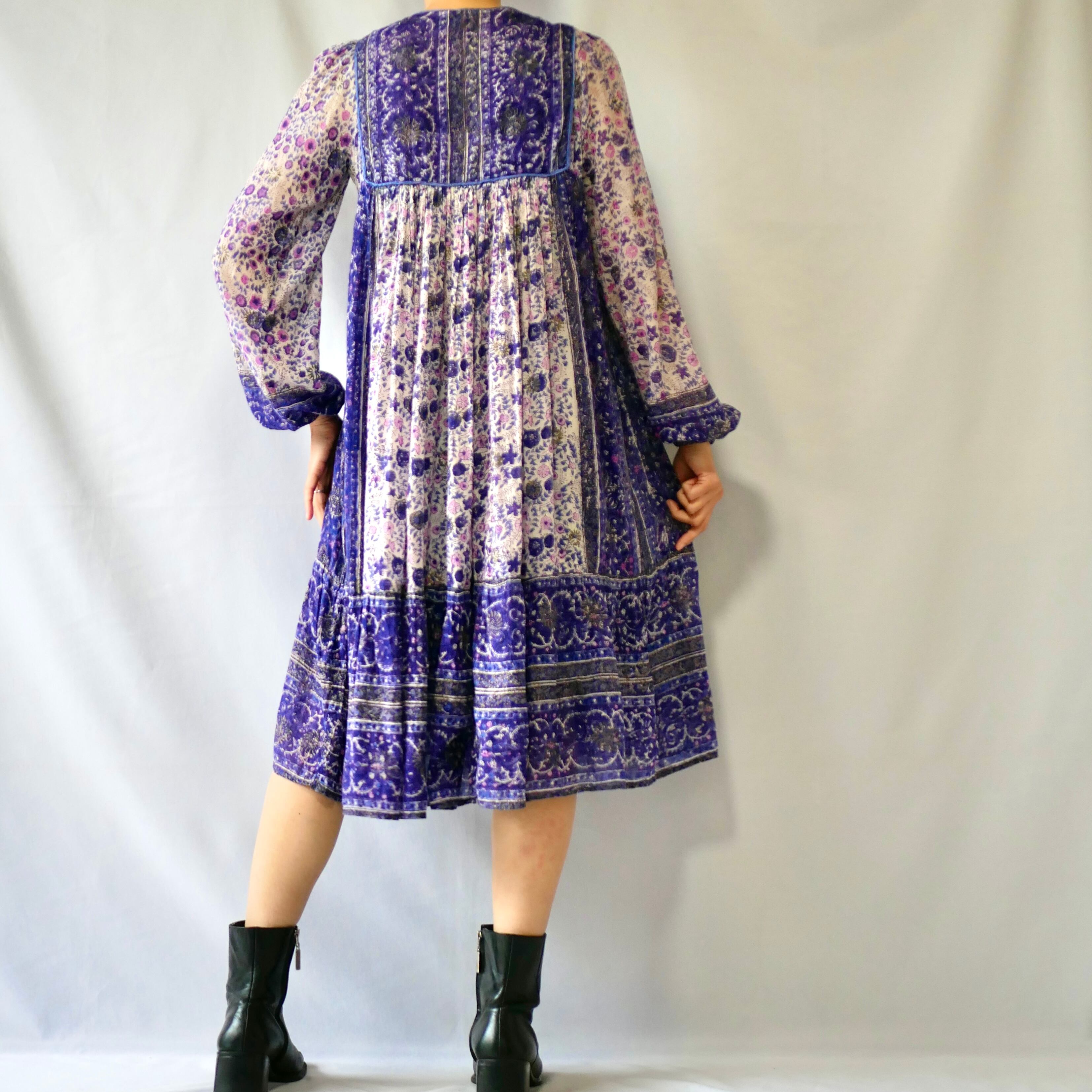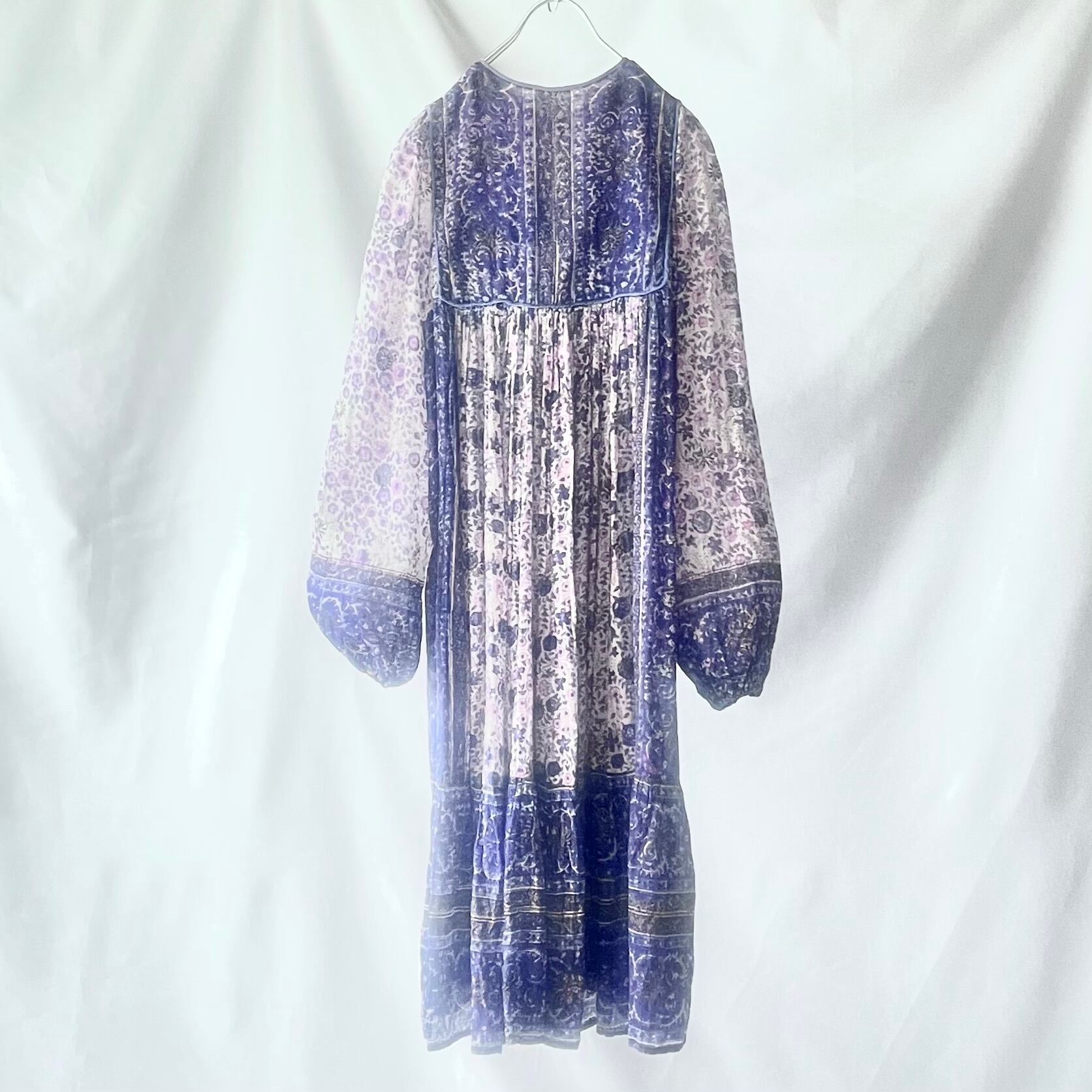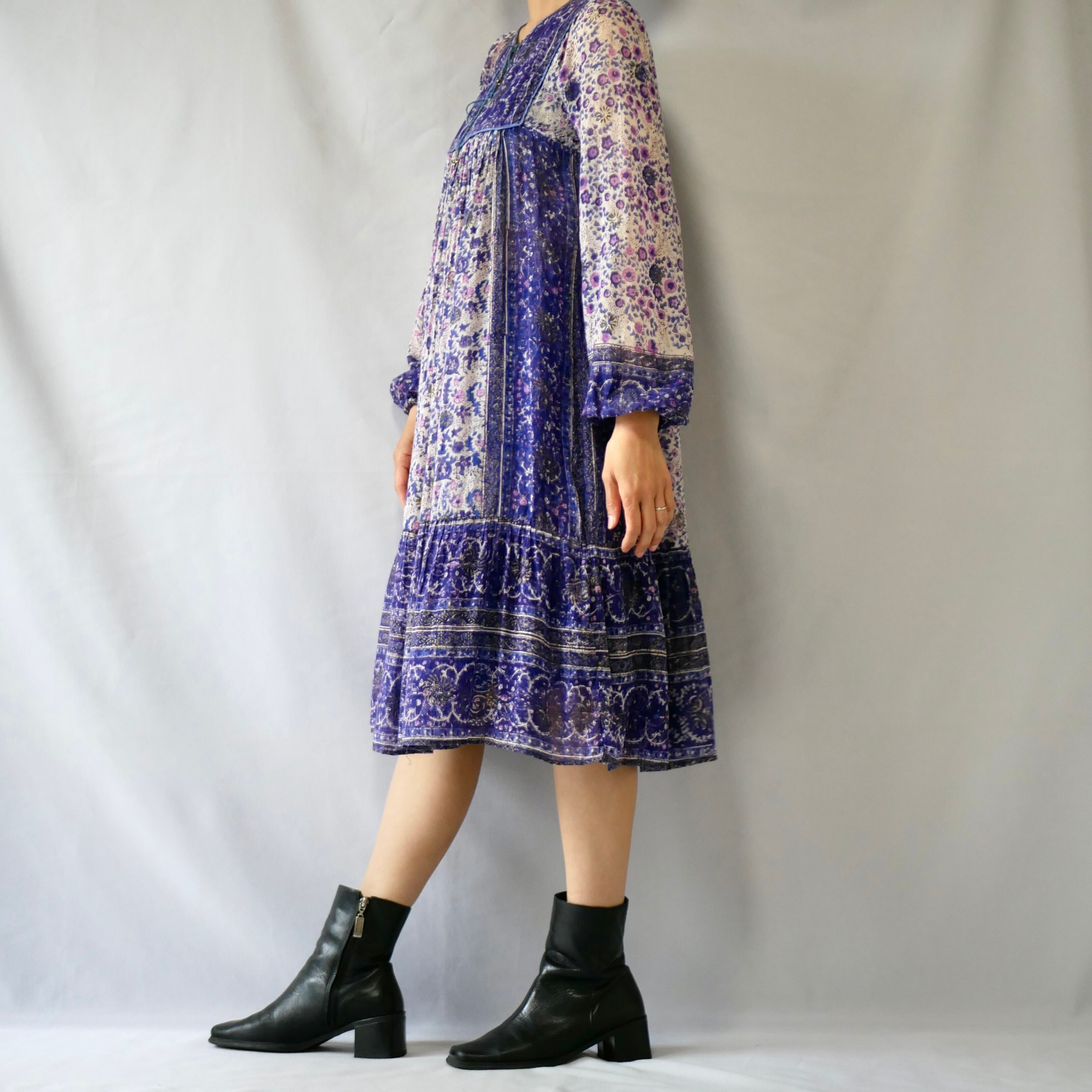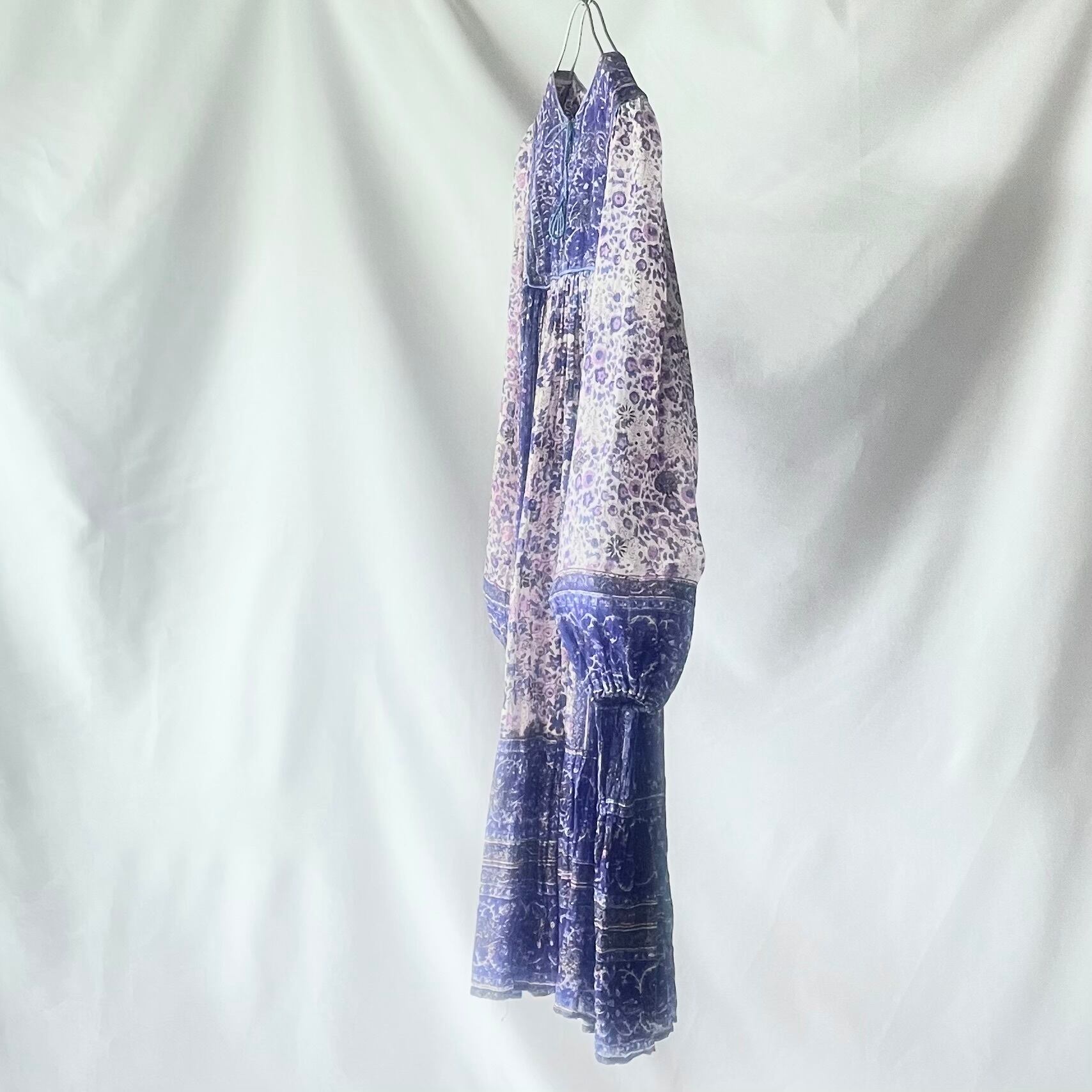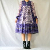70s vintage pakistan cotton purple onepiece パキスタンコットンパープル花柄ワンピース