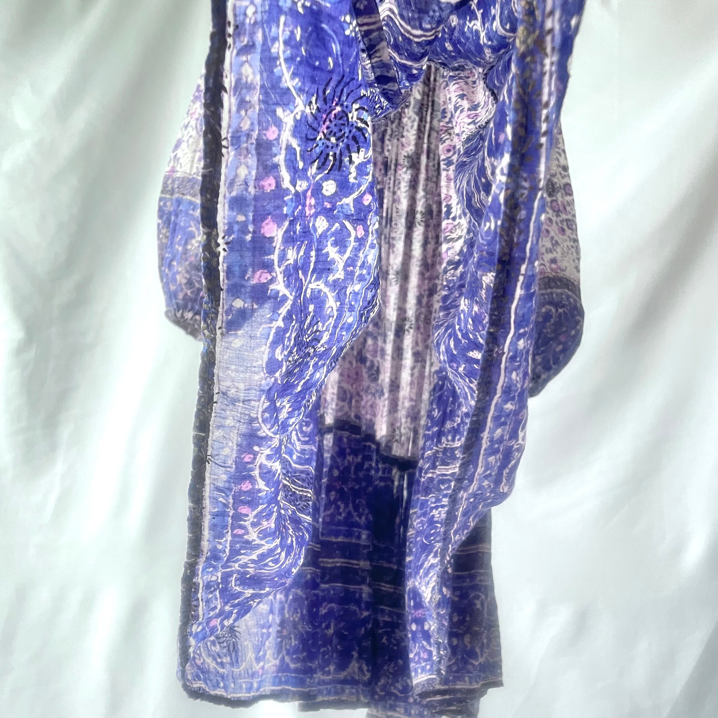 紫にピンクの草花柄が可愛い、70年代ヴィンテージ パープルパキスタンコットン長袖ワンピースです。
