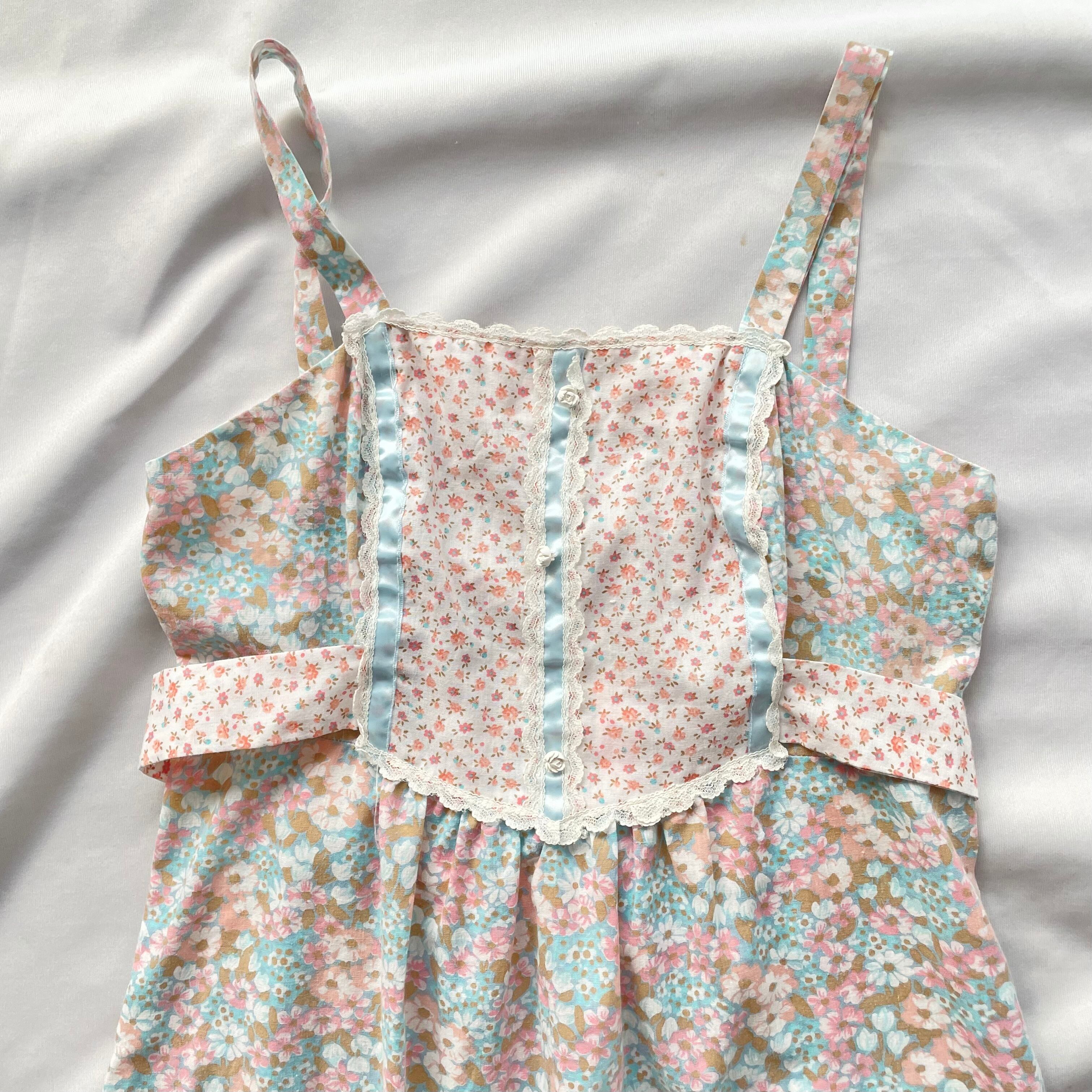 70年代ヴィンテージ 小花柄マキシ丈キャミソールワンピースです。