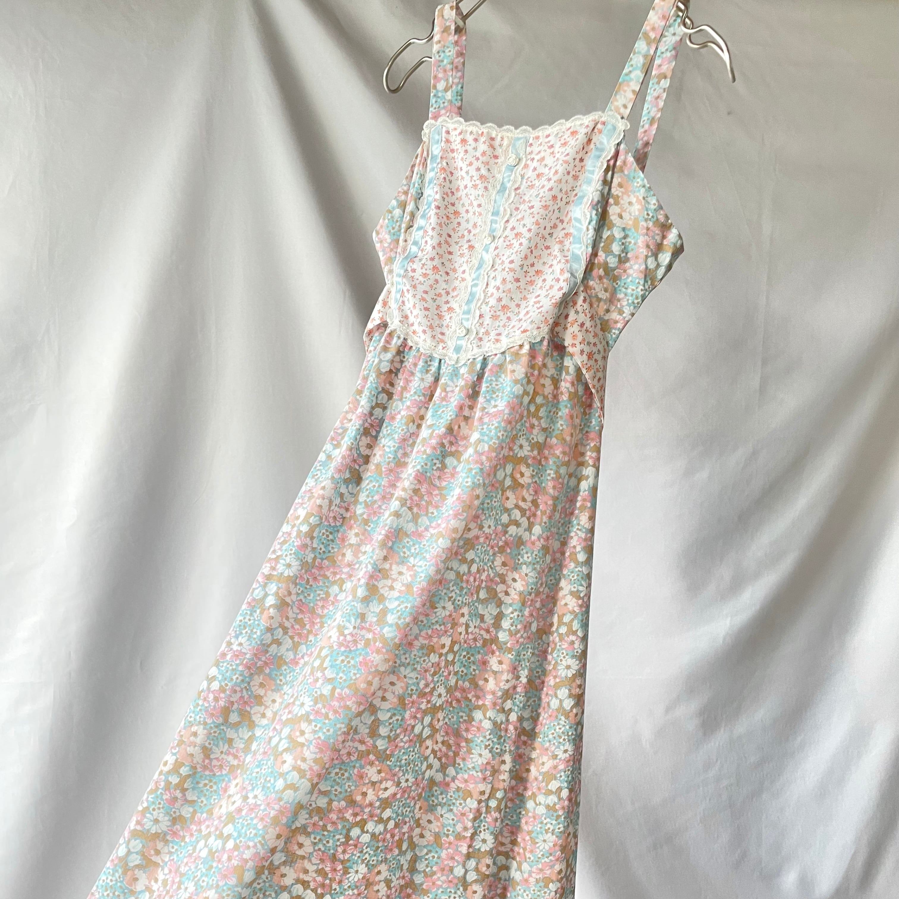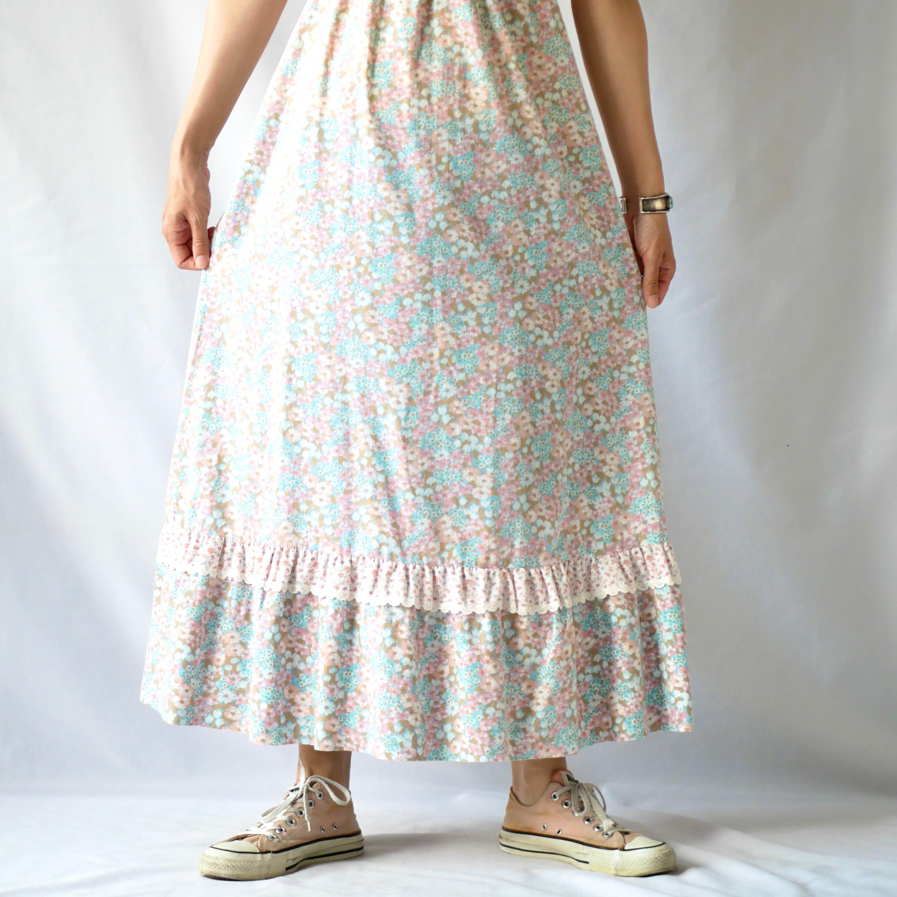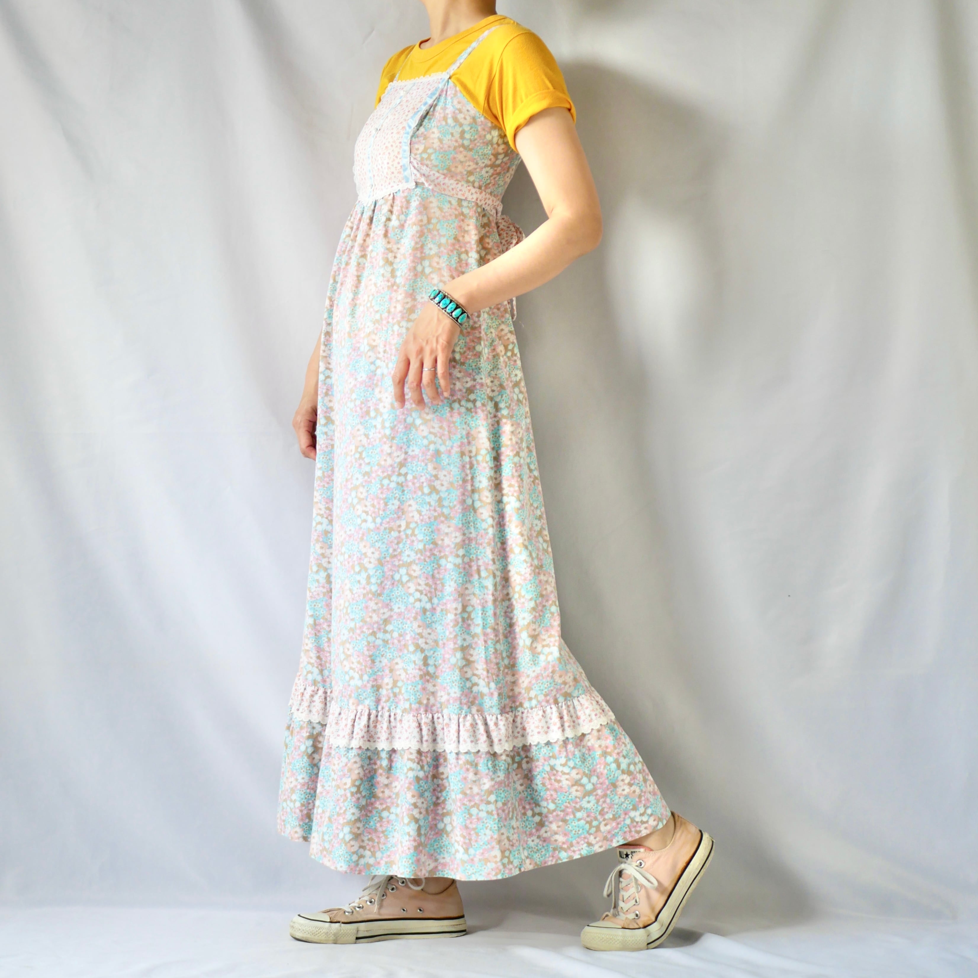 70s vintage floral maxi camisole onepiece 花柄マキシ丈キャミワンピース
