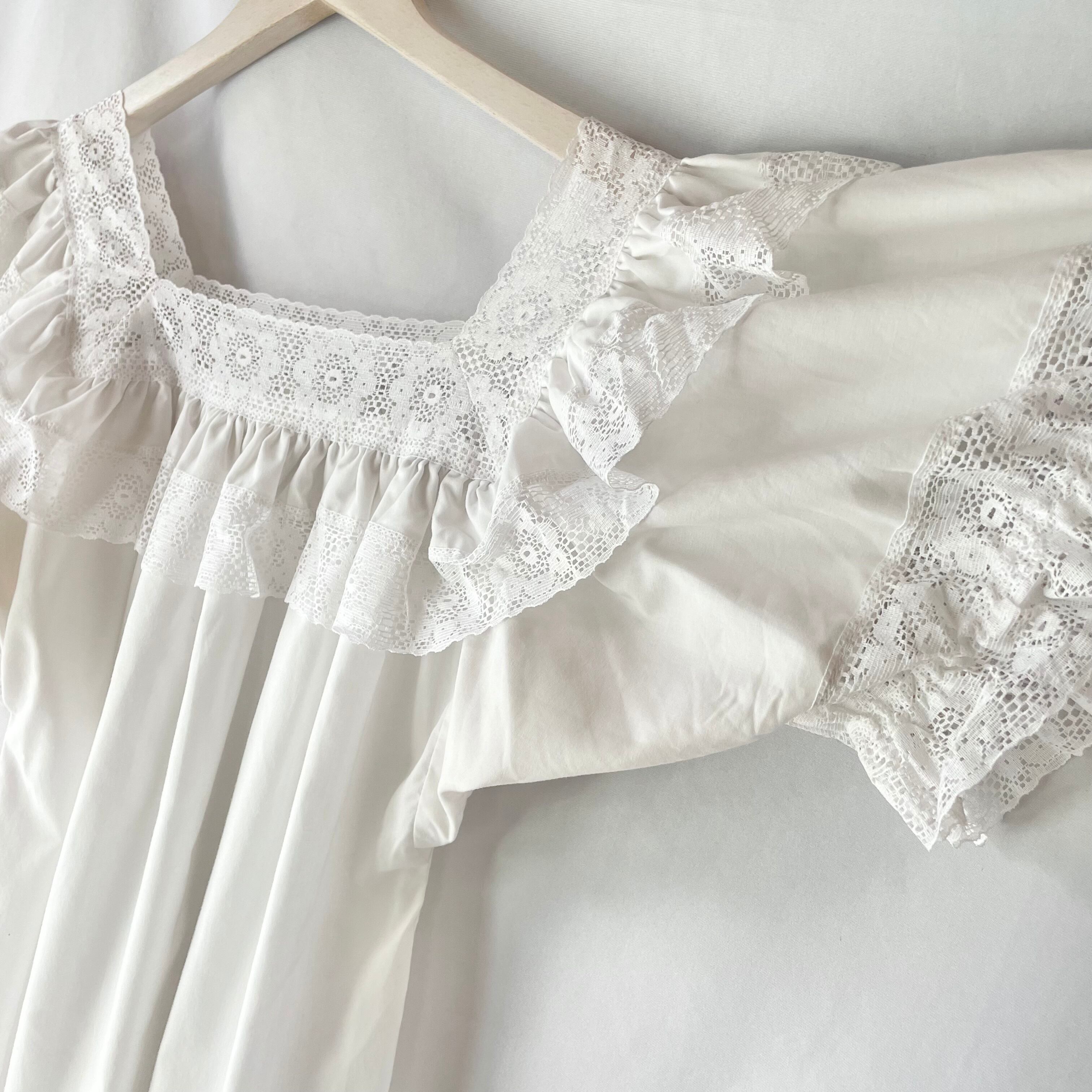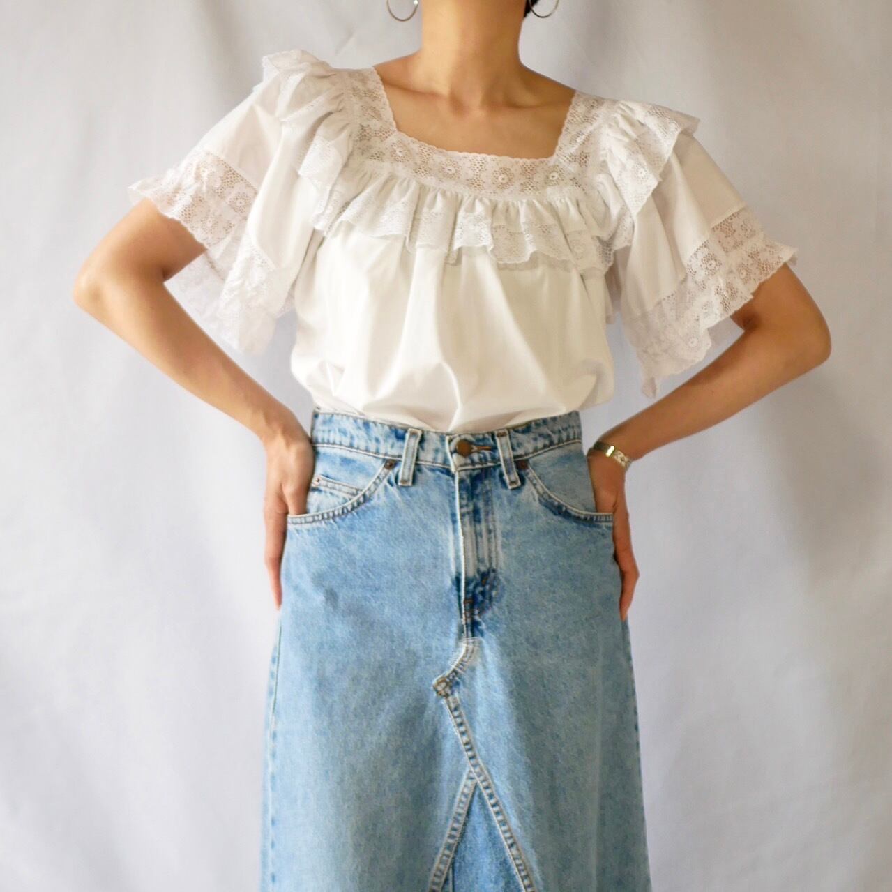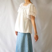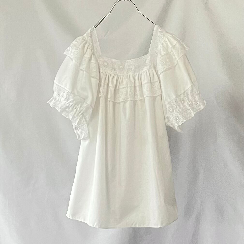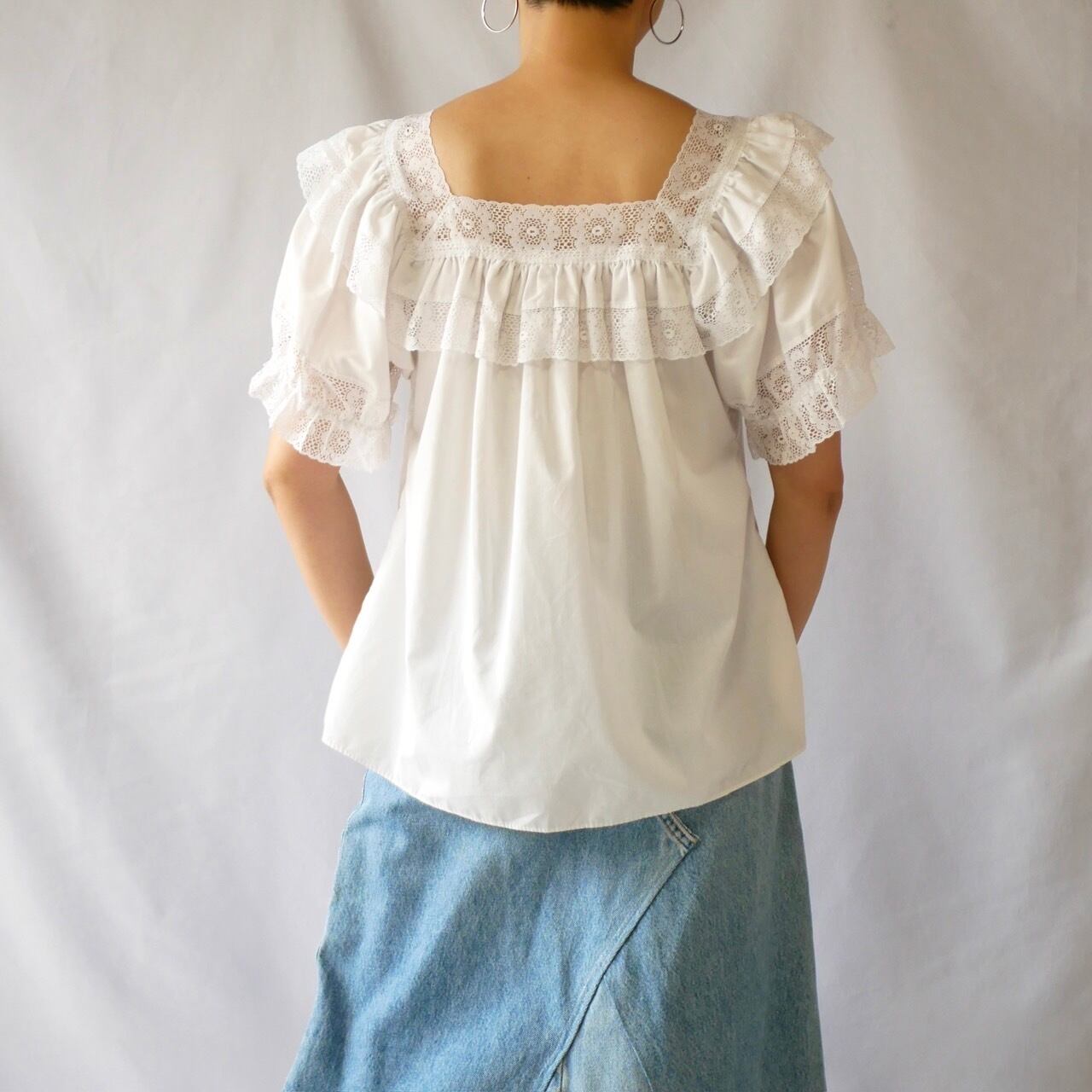 Made in USA white lace tunic blouse アメリカ製 白半袖 レース チュニックブラウス