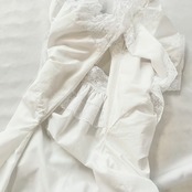 ボリューミーな袖とデコルテ周りのたっぷりレースがとても素敵です。