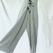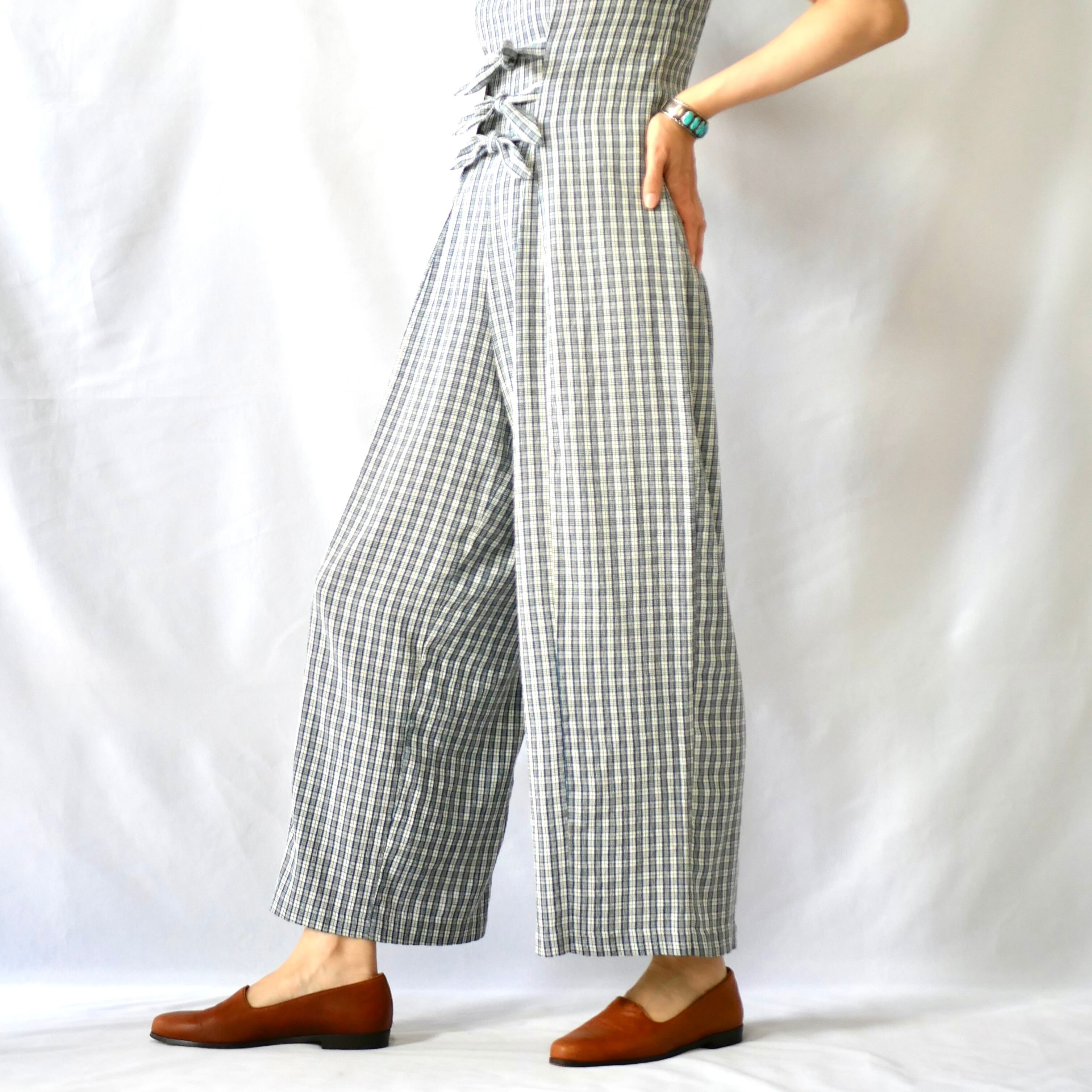 総丈→サイド首元~裾、身幅→脇~脇、サイド丈→脇~裾、ウエスト幅→真ん中のリボン位置、股下→股~裾、ワタリ幅→太ももの付け根部分の幅(股部分~外側端)
