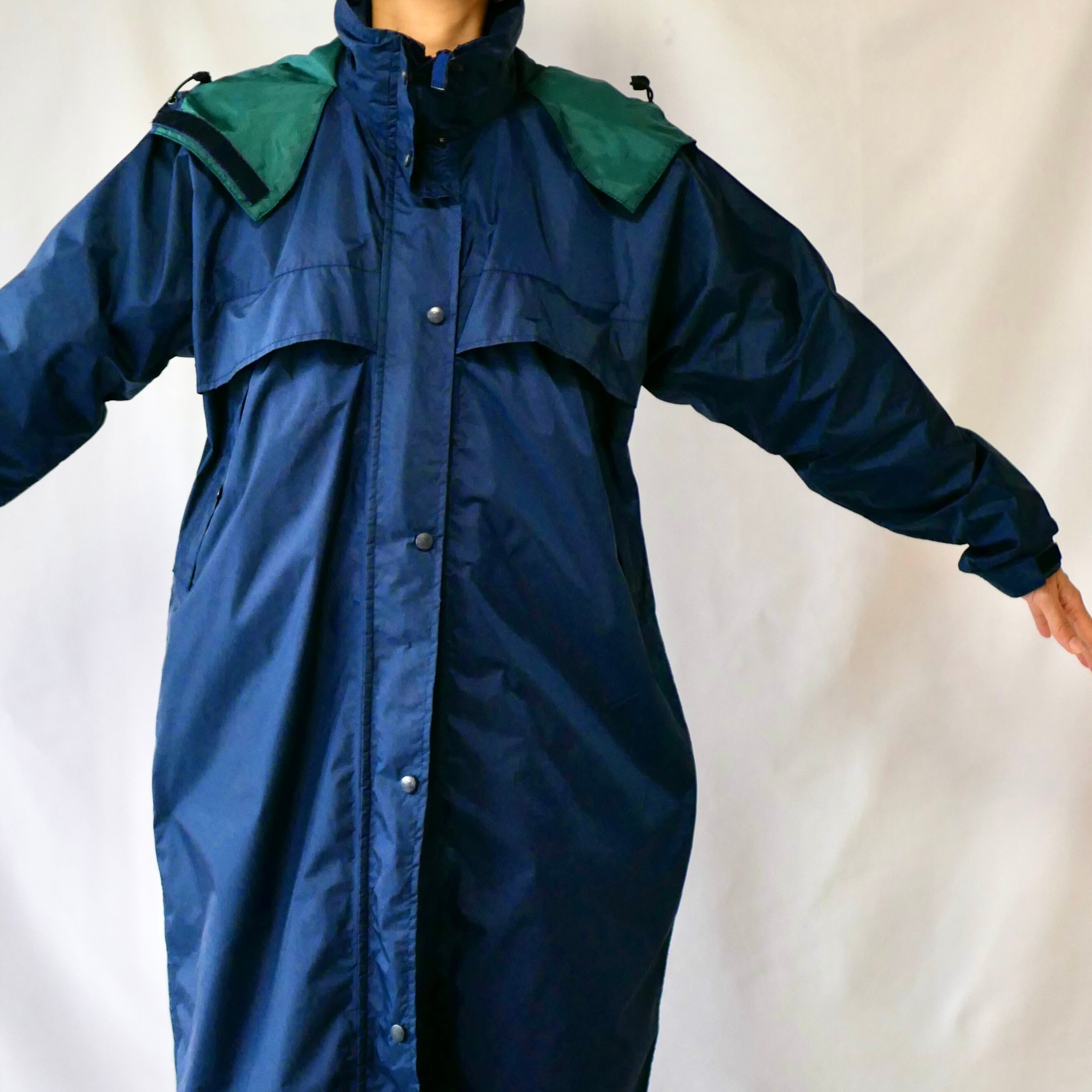 90s L.L.Bean darknavy×green hooded nylon coat 90年代 エルエルビーン ナイロンコート ネイビー