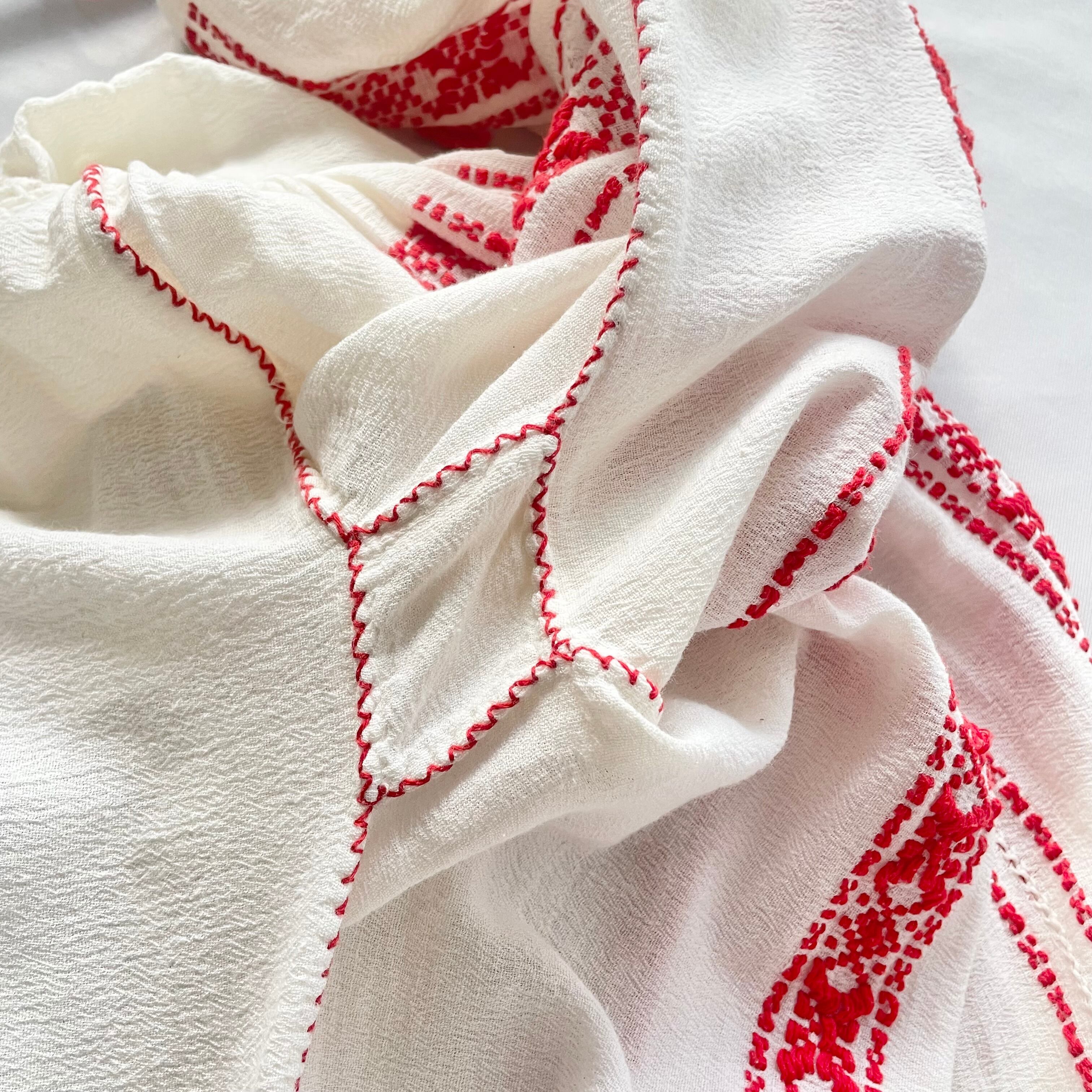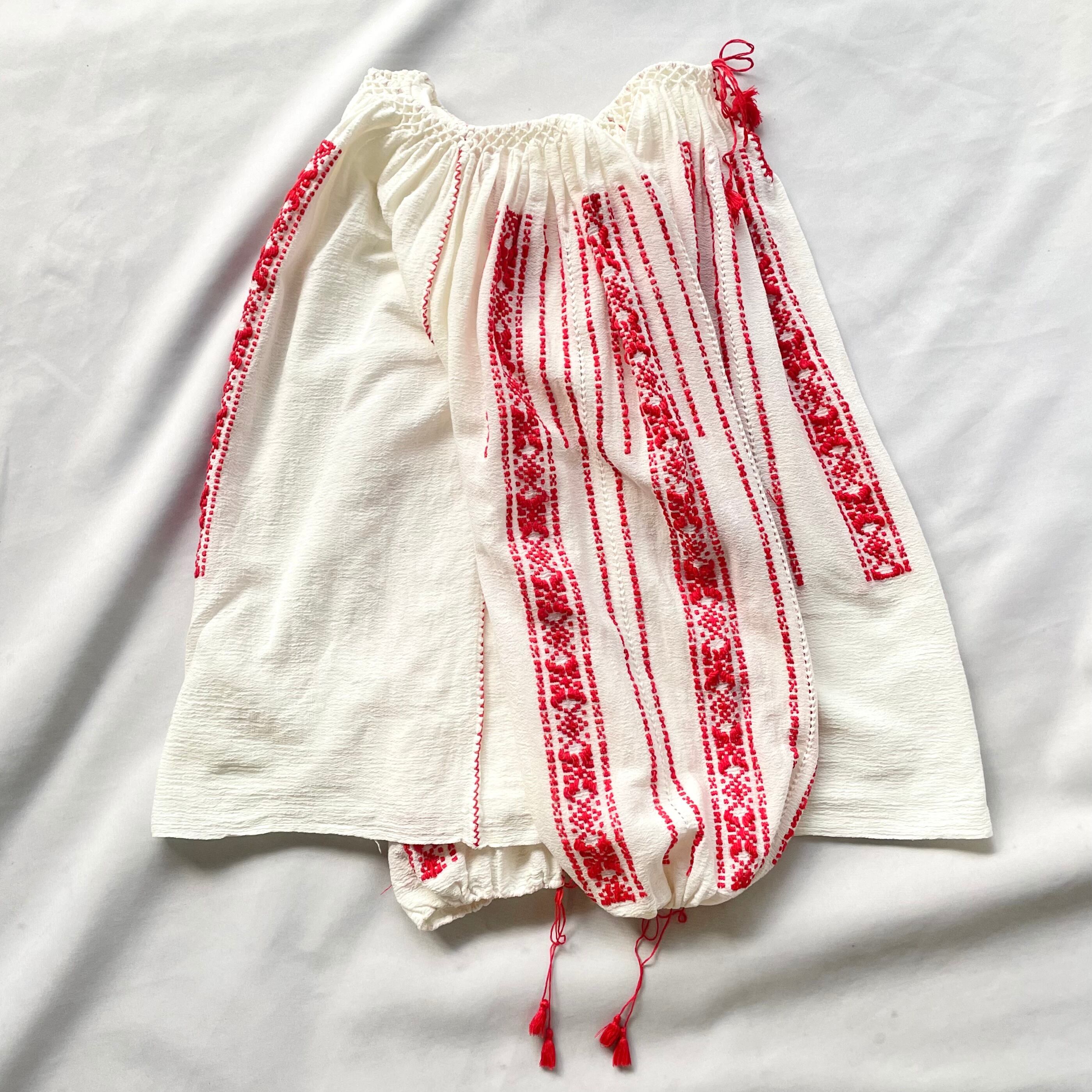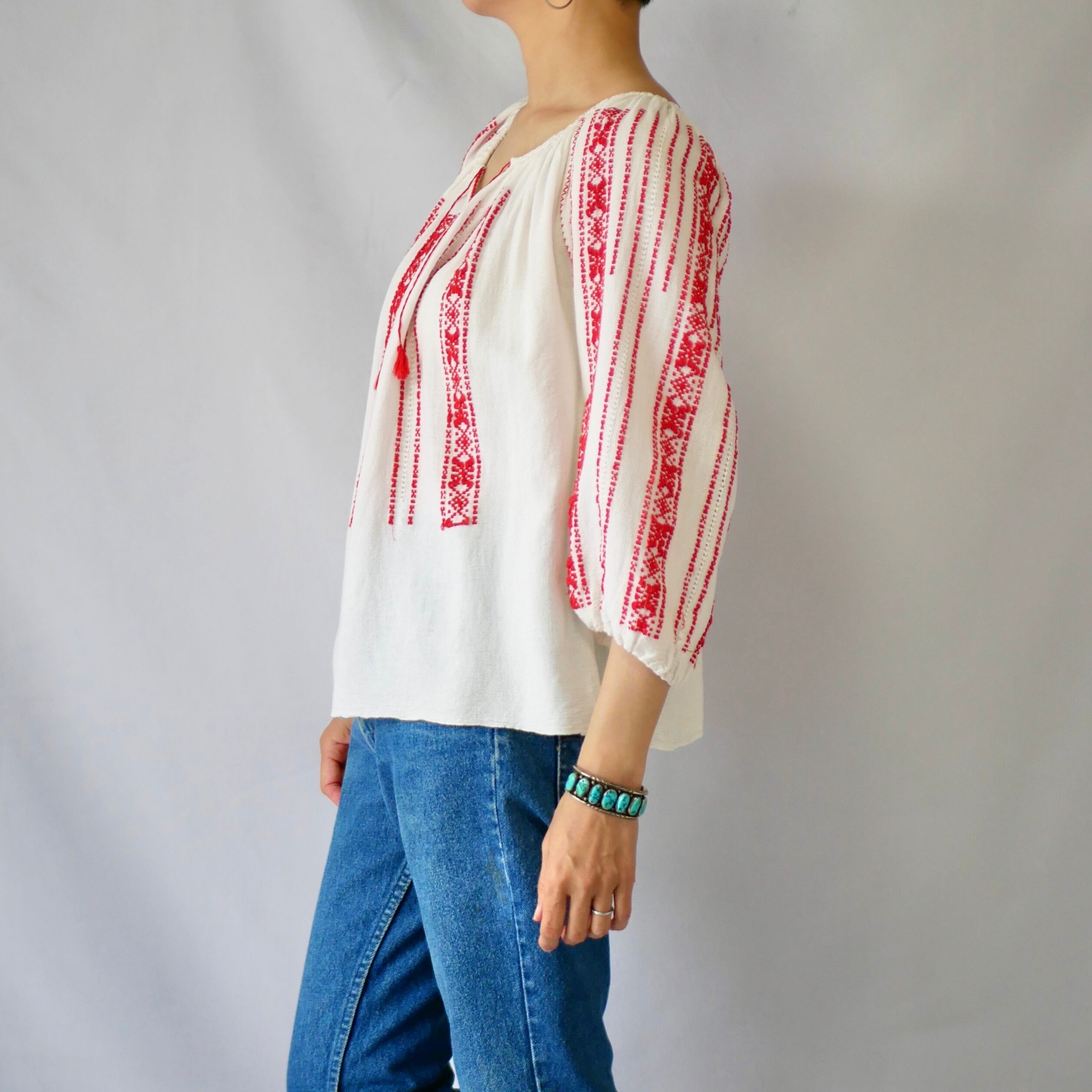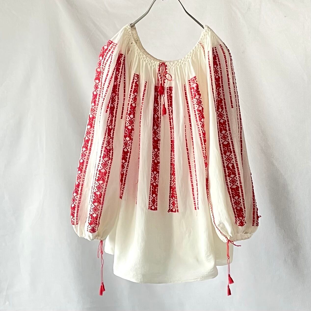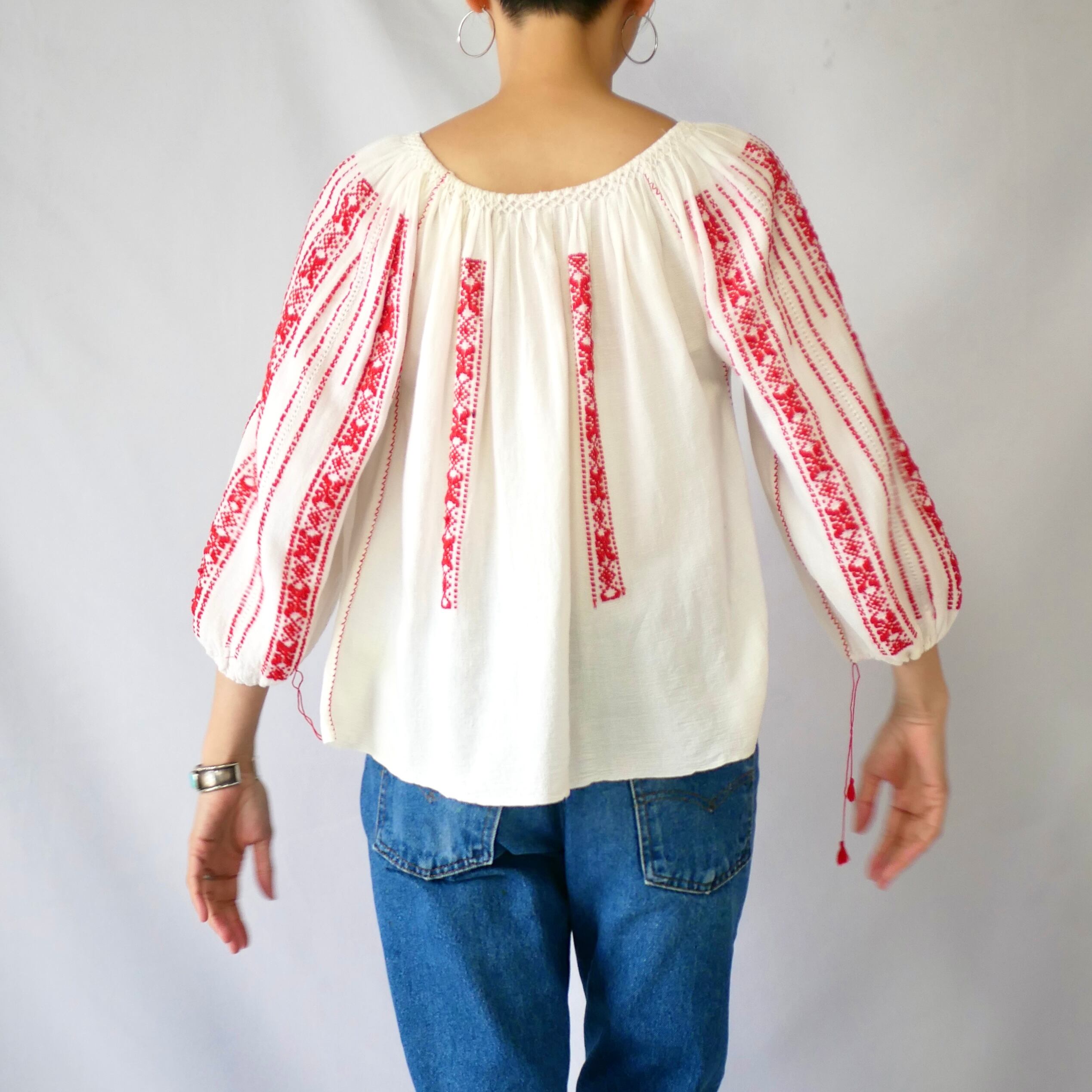 Romania embroidered tunic blouse ルーマニア刺繍白赤プルオーバーブラウス