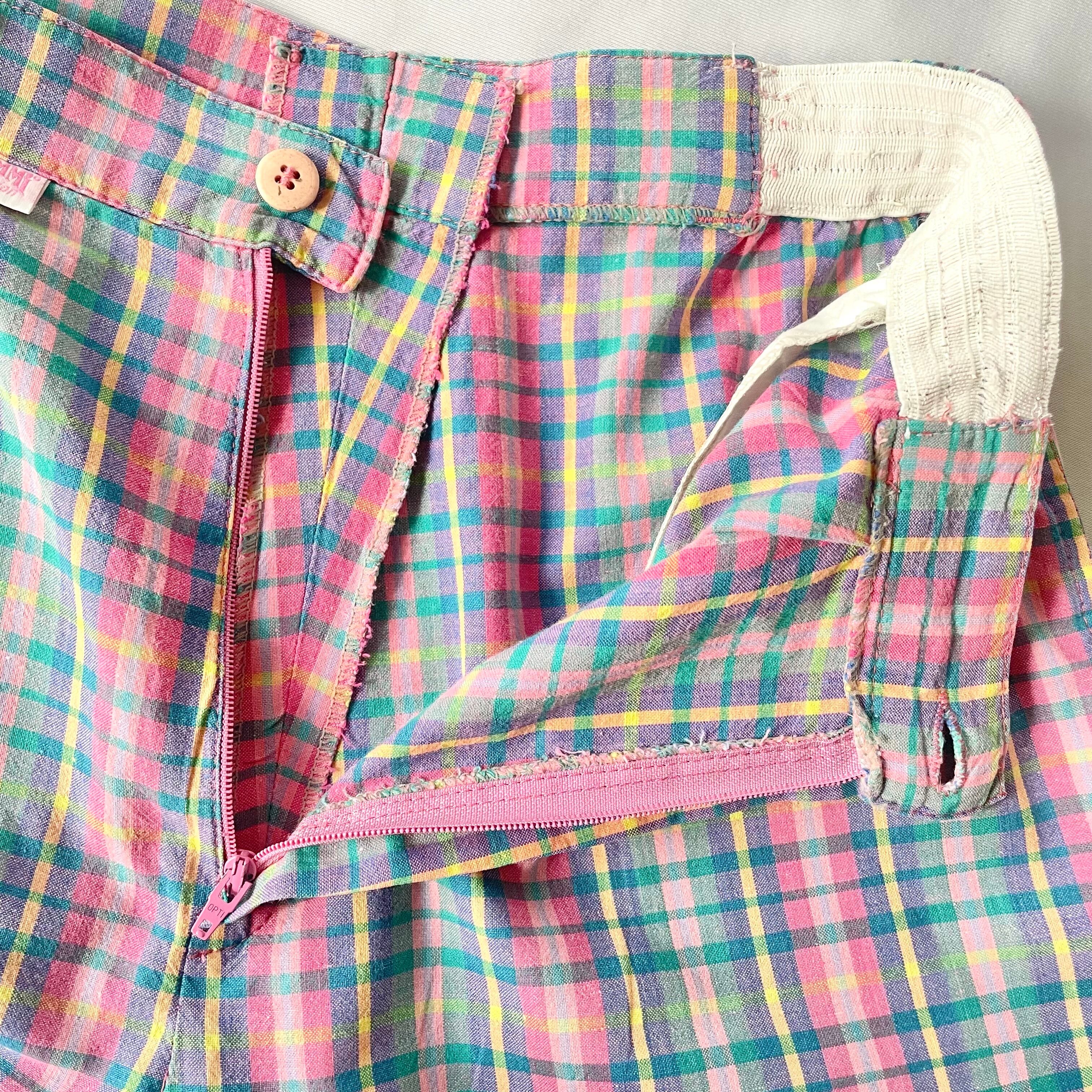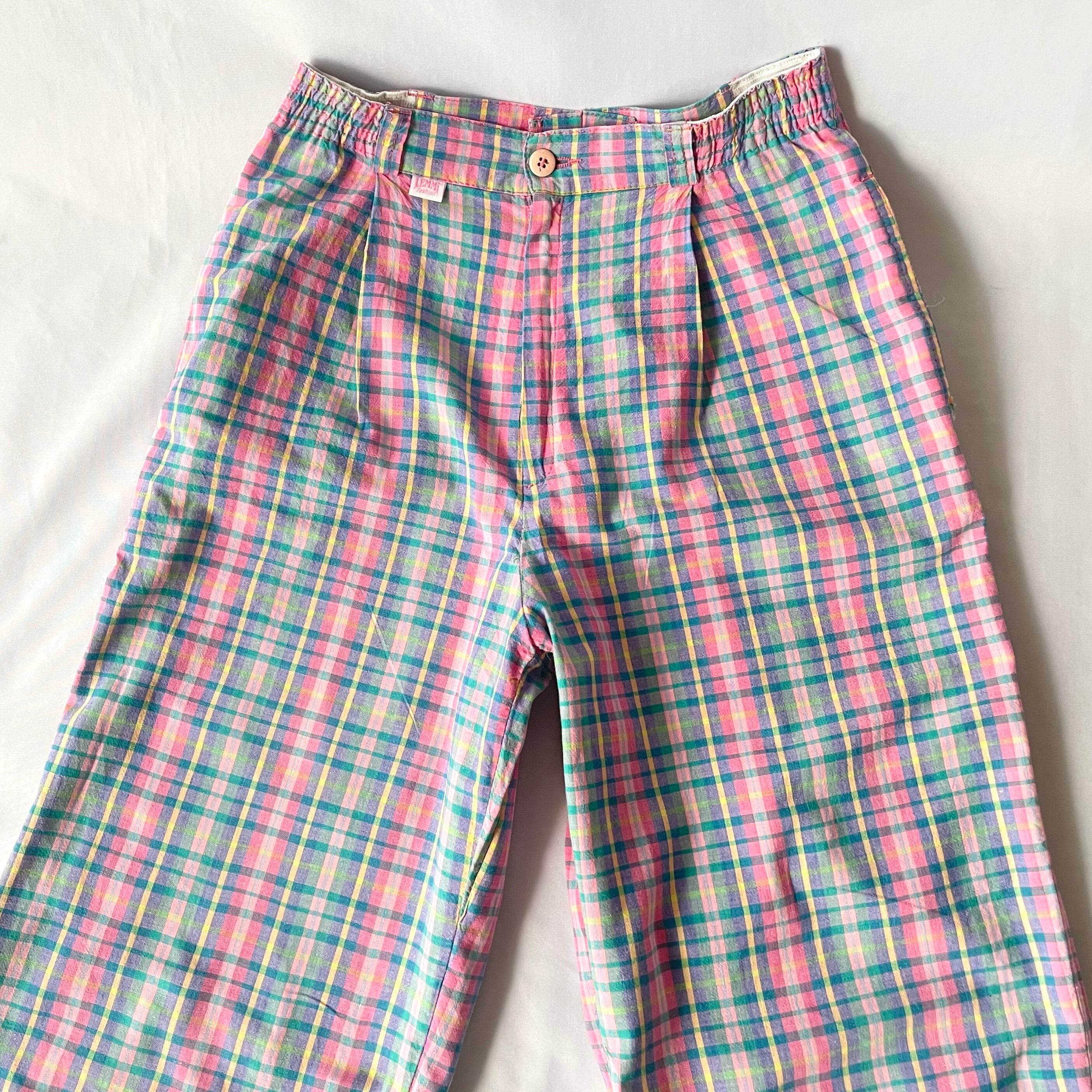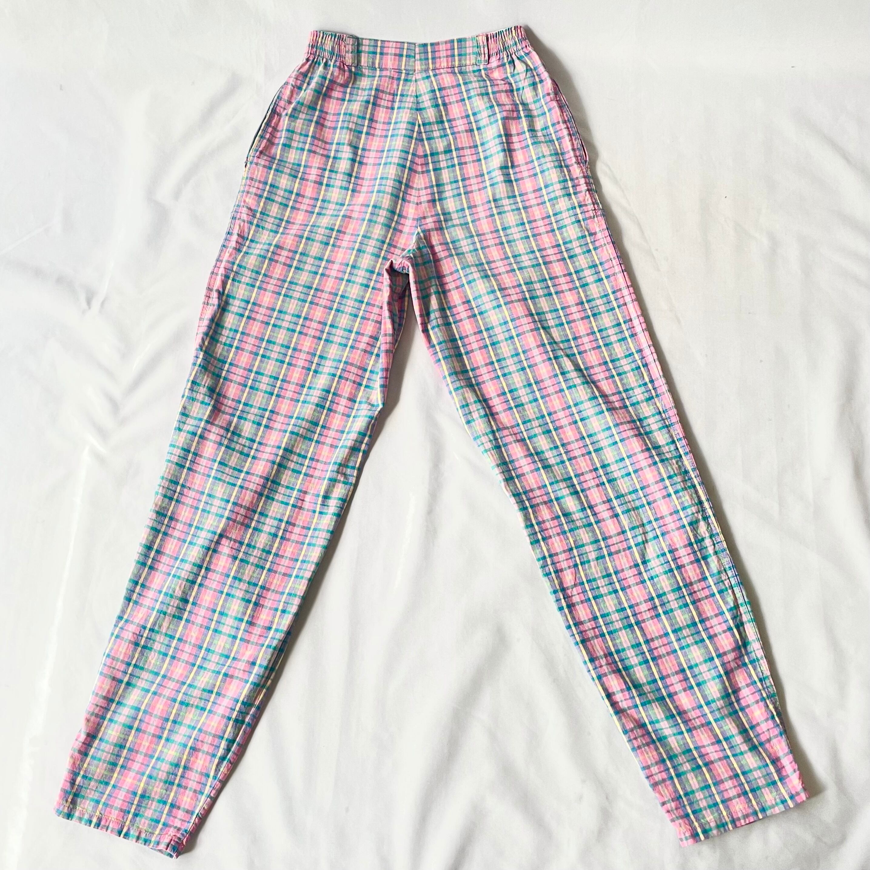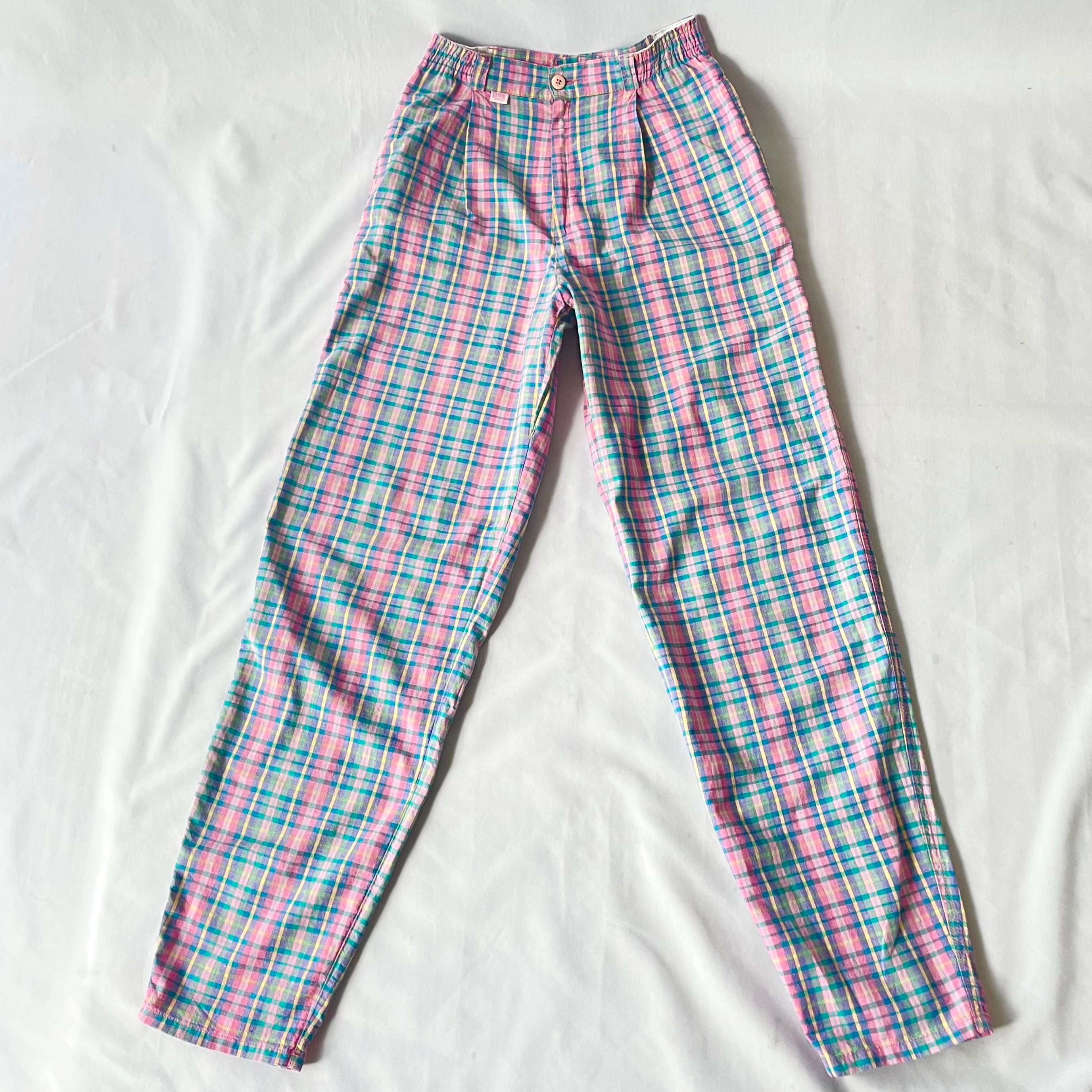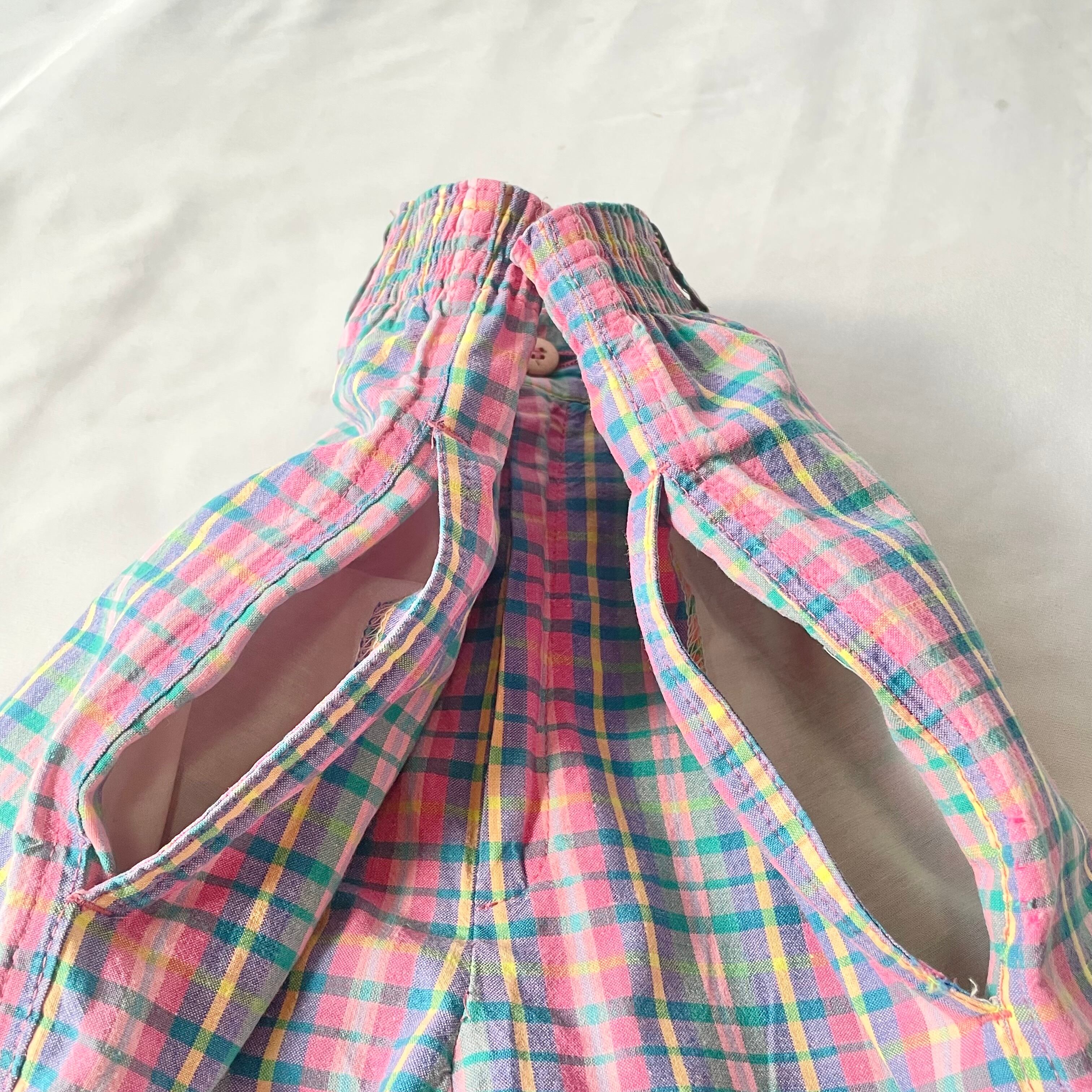 ピンクのマドラスチェックがとっても可愛い、コットンタックパンツです。