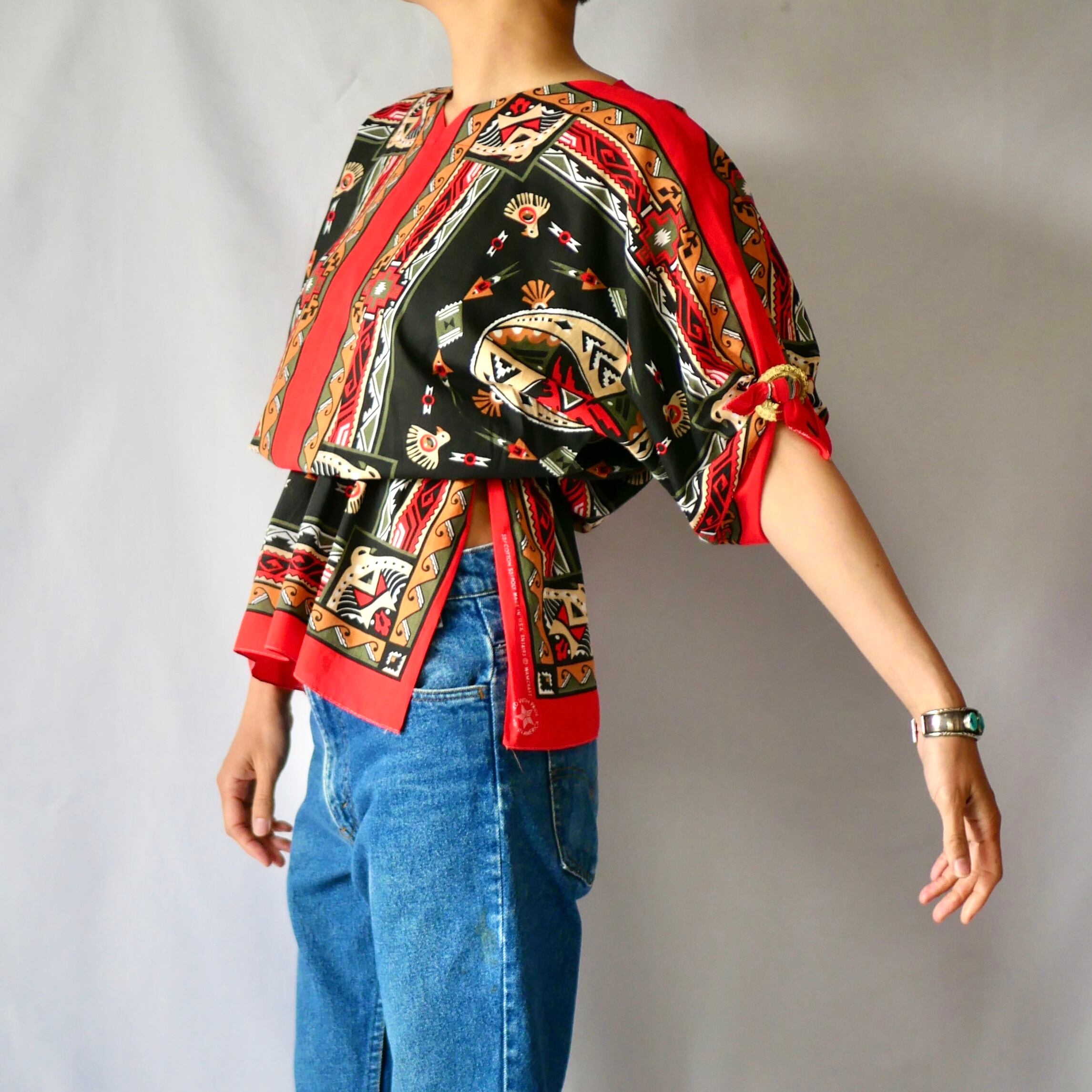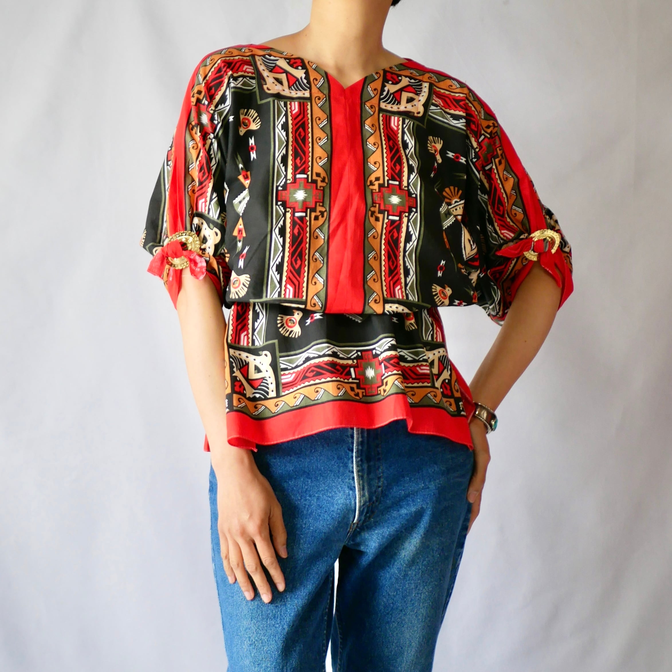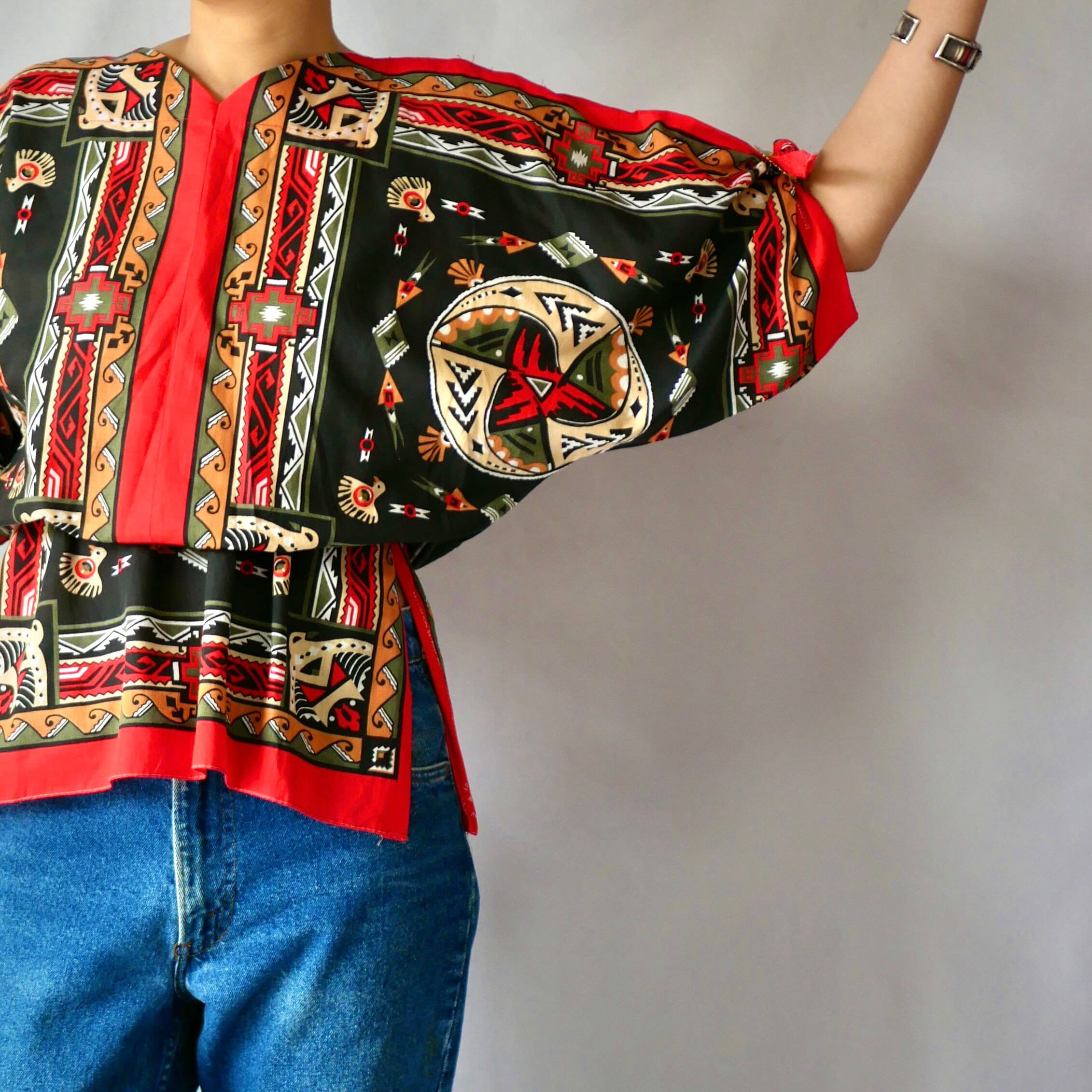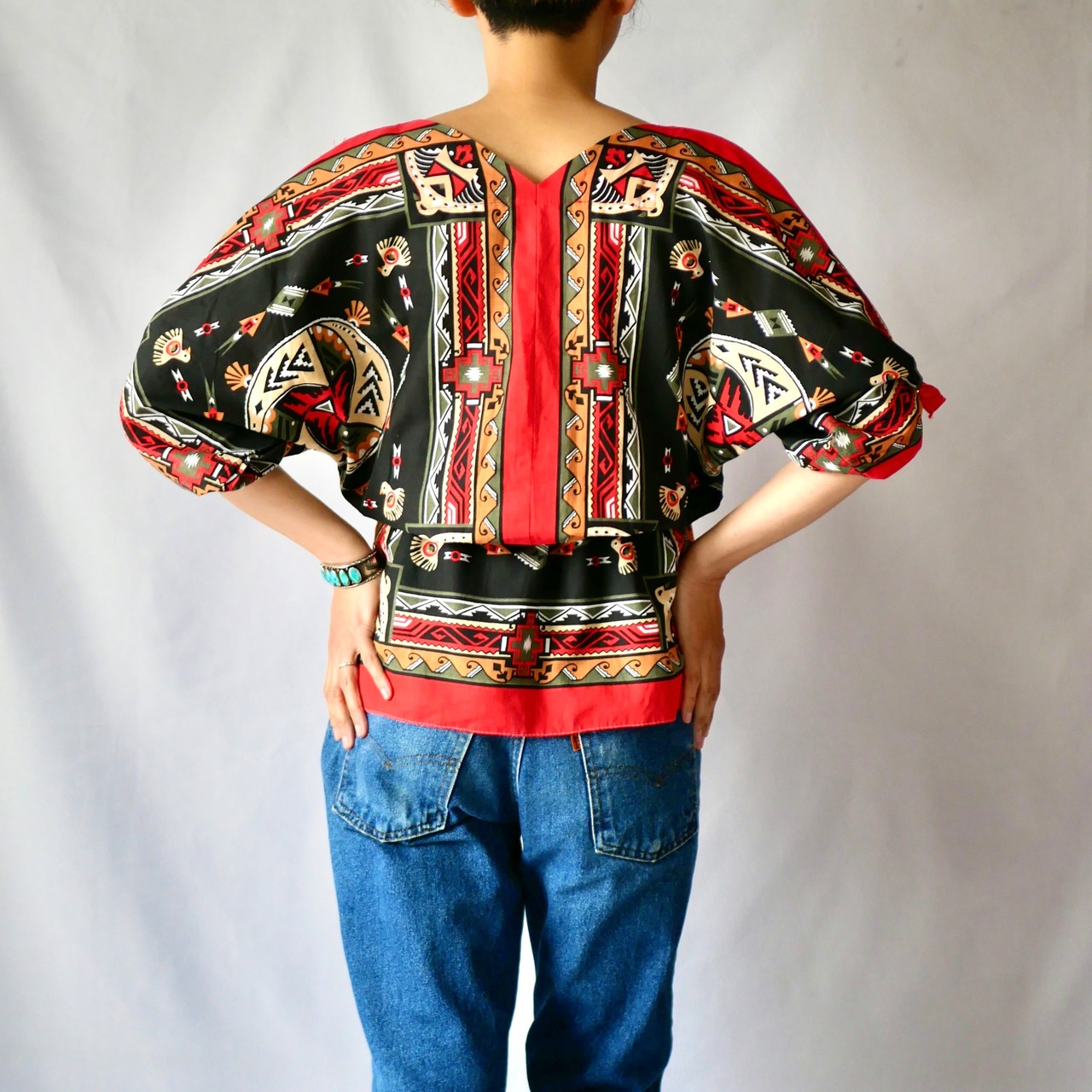 アメリカニューメキシコ州製バンダナ生地ポンチョ風トップスです。