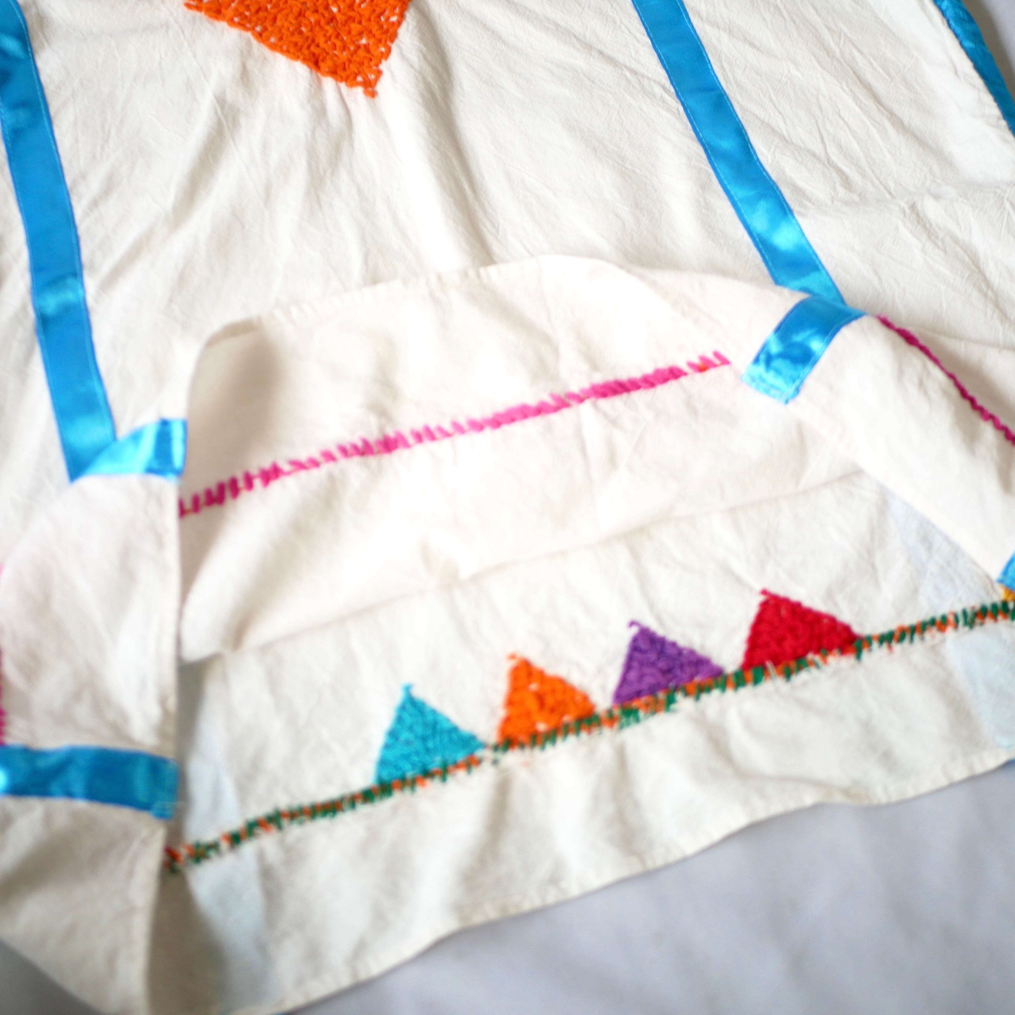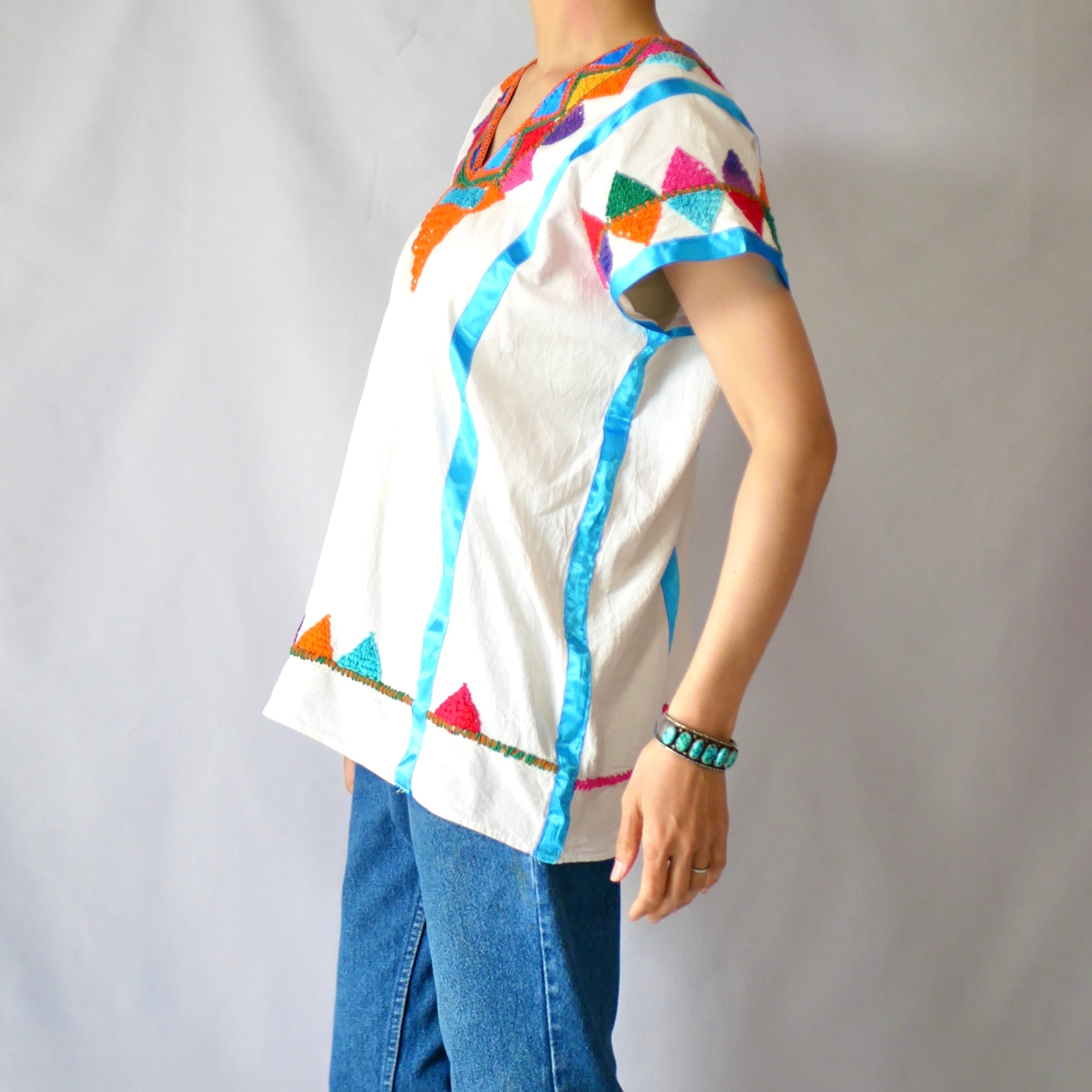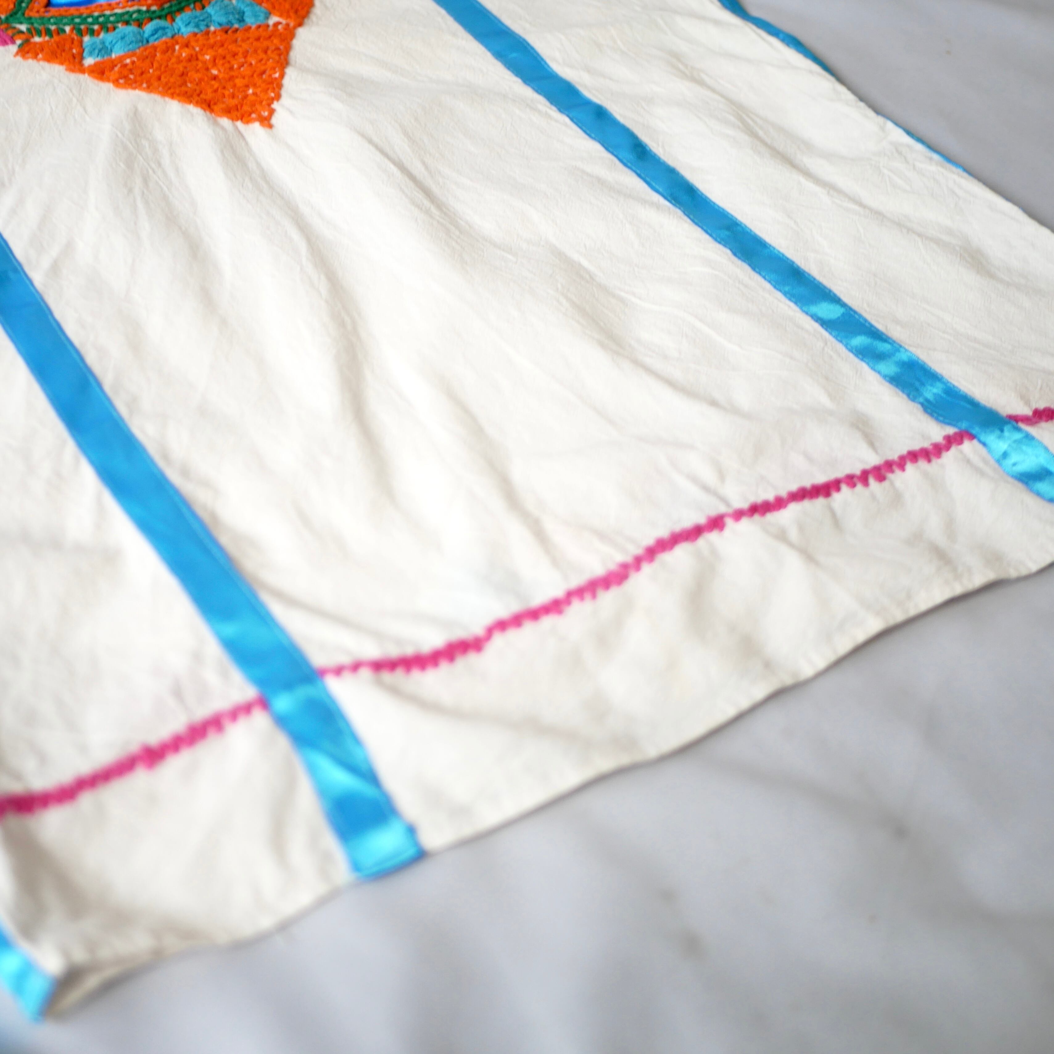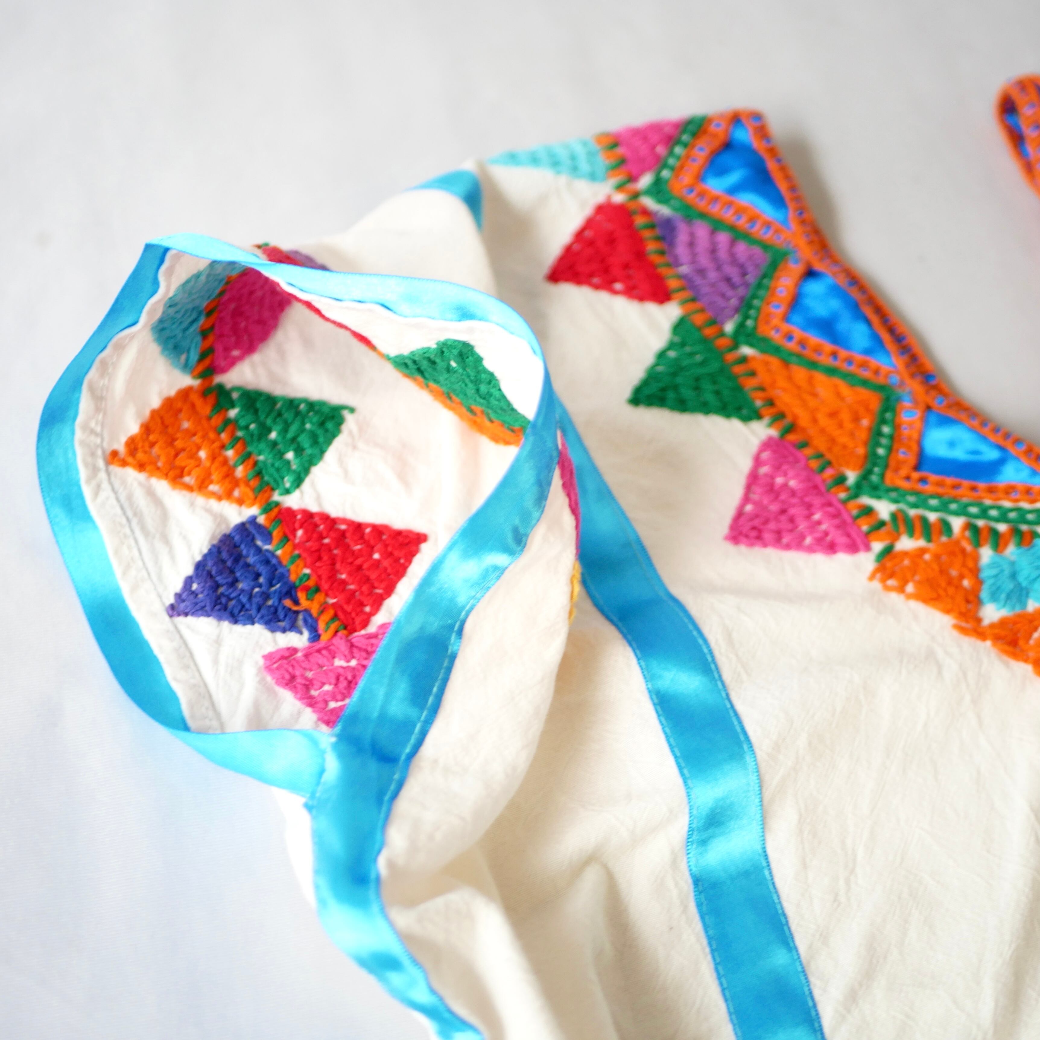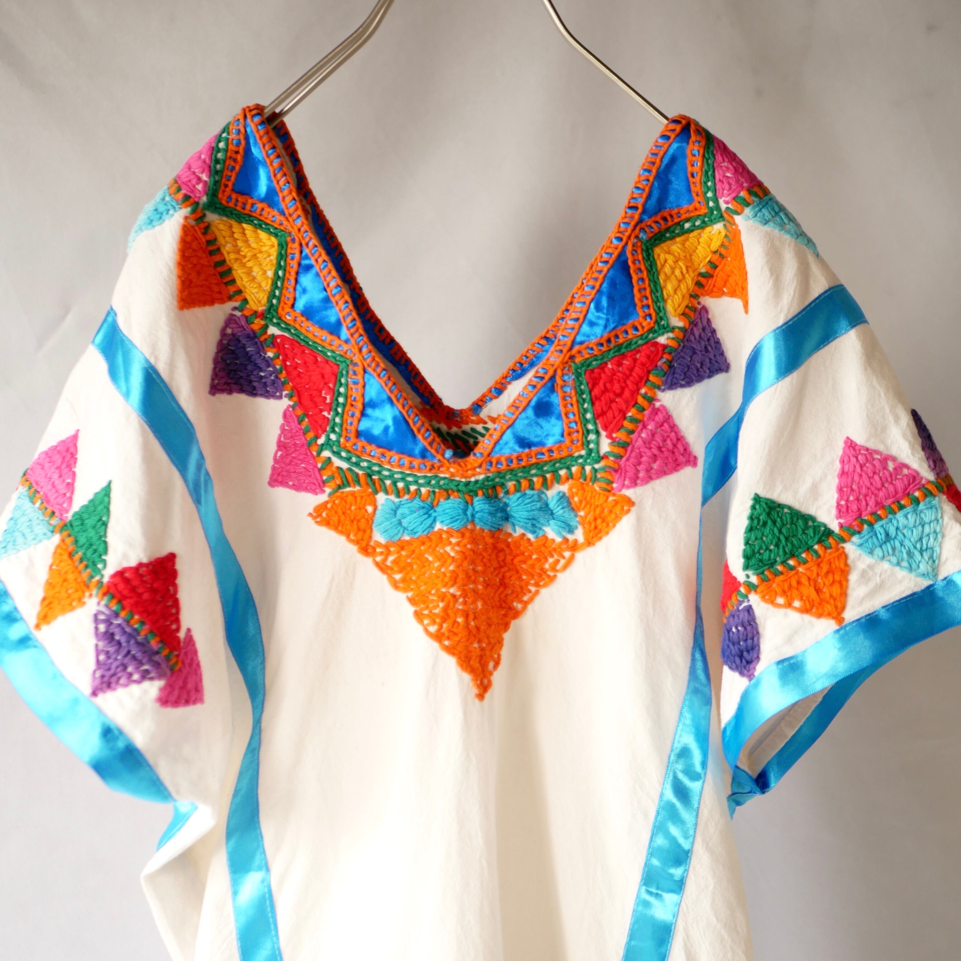 恐らくメキシコ製と思われる豪華な刺繍の入ったポンチョ型コットントップスです。