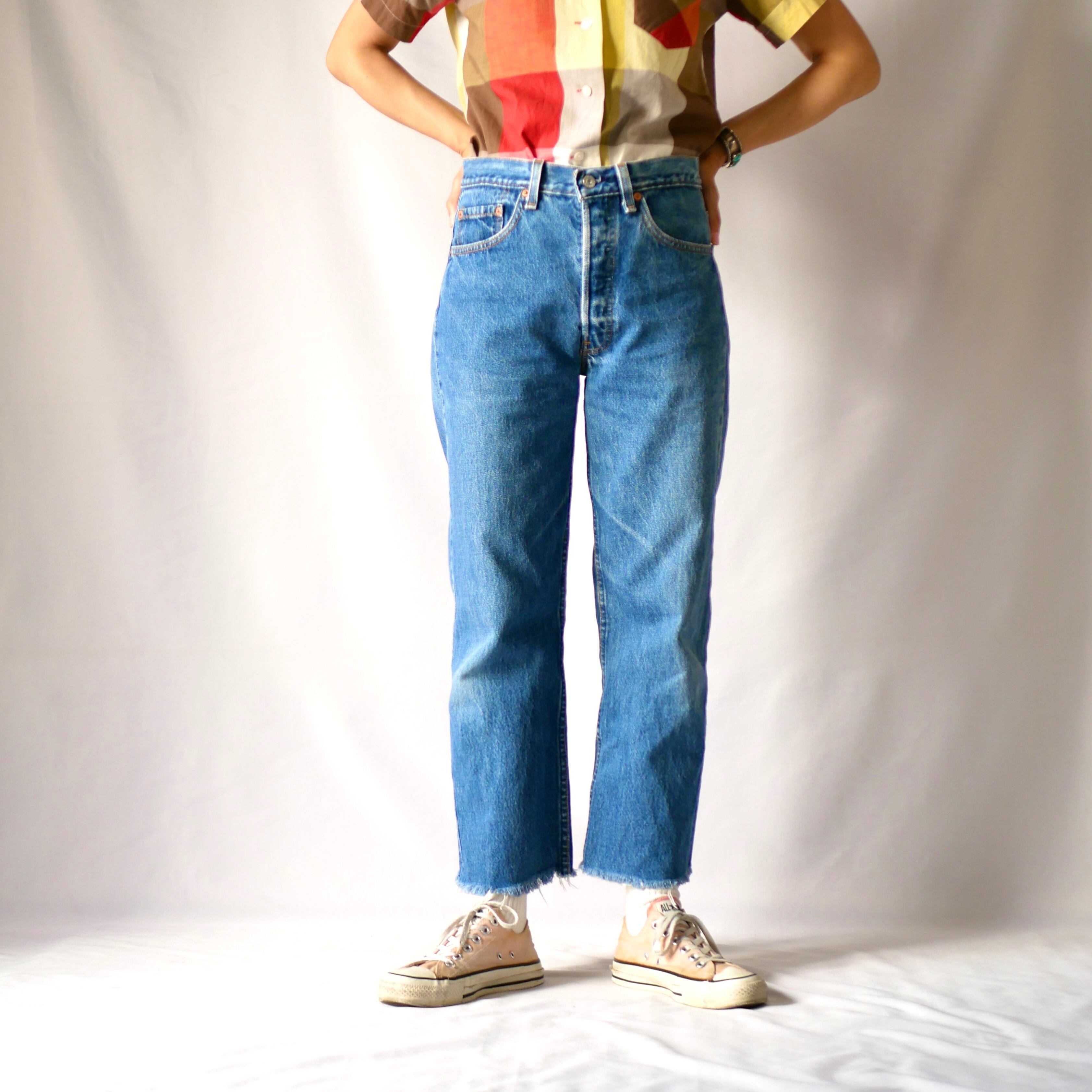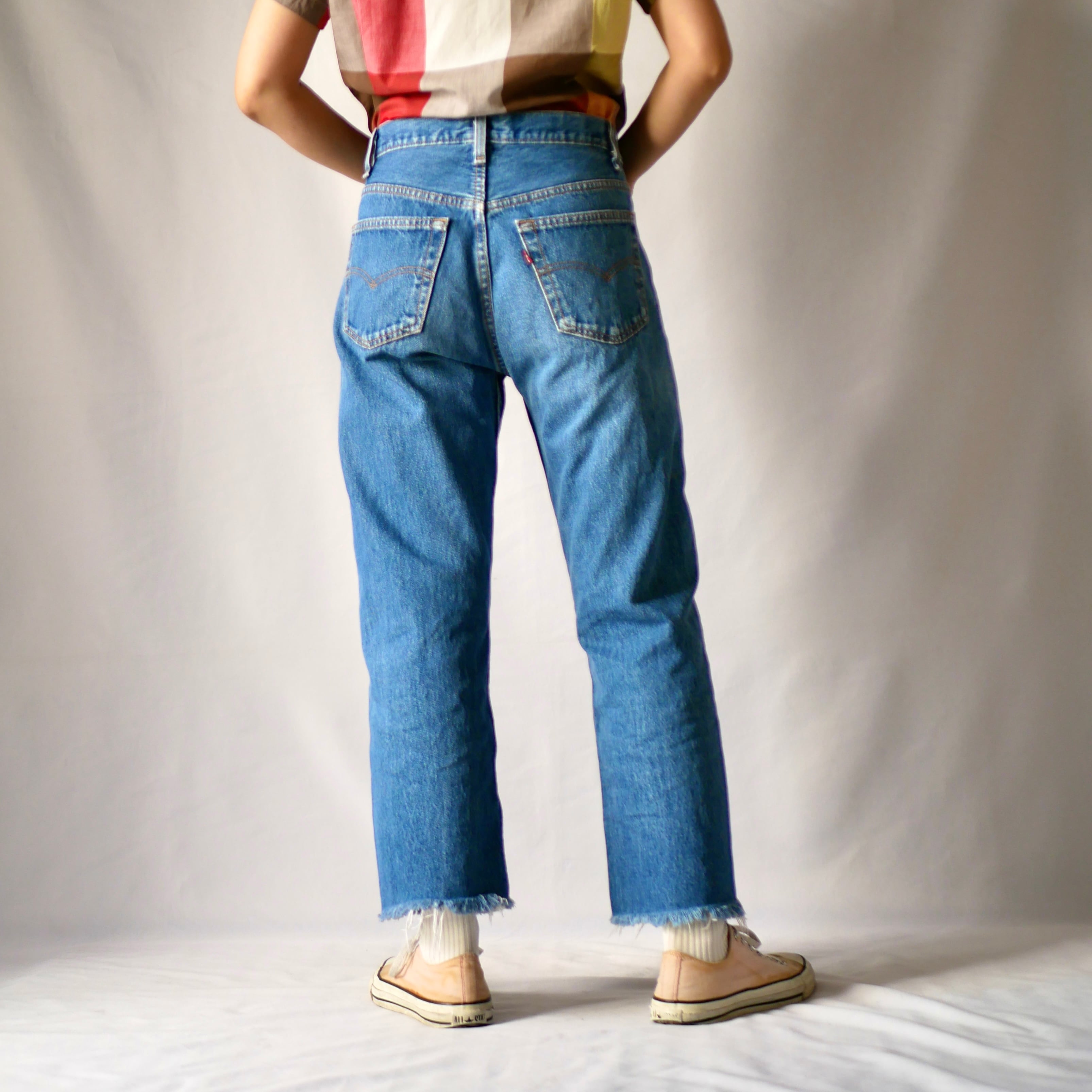 90年代ヴィンテージ USA製リーバイス501 裾切りっぱなし デニムパンツです。ボタン裏522