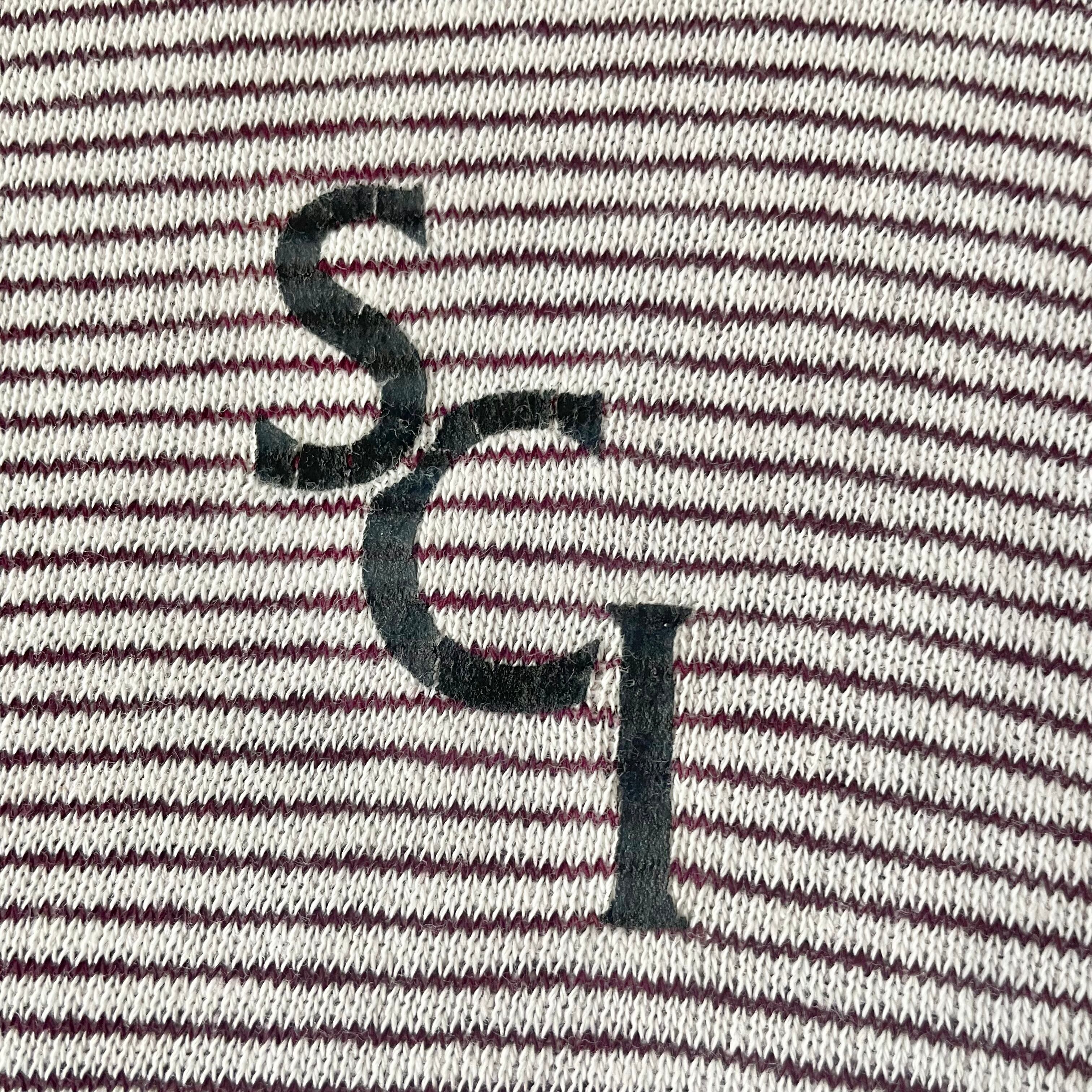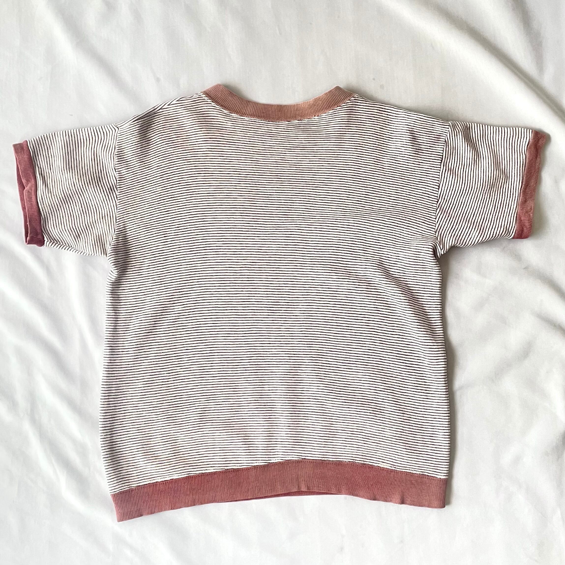 胸元にロゴの入った70年代頃のボーダー半袖スウェットです。