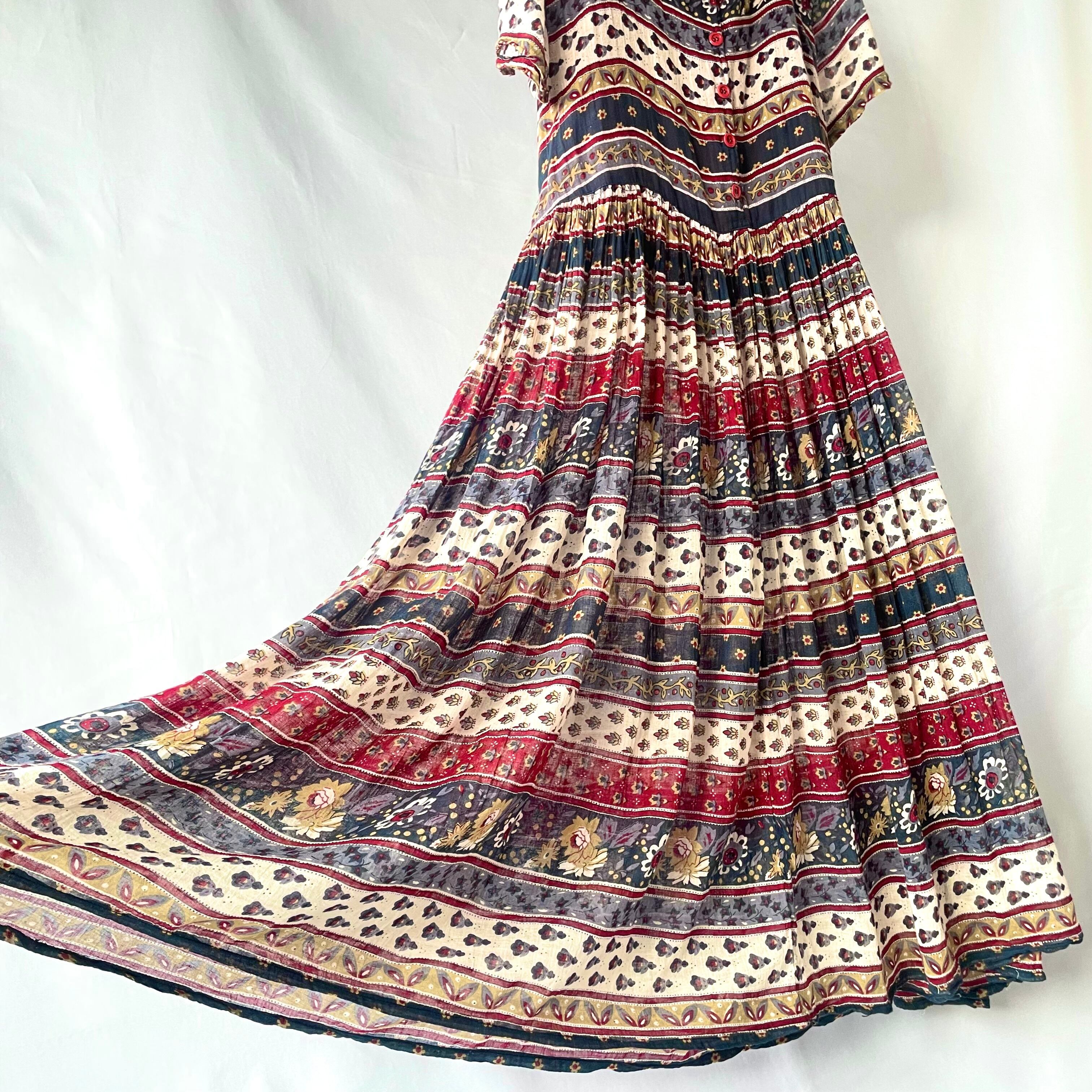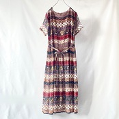 ギャザーたっぷりのガーゼ素材、エスニックな総柄が可愛いワンピースです。