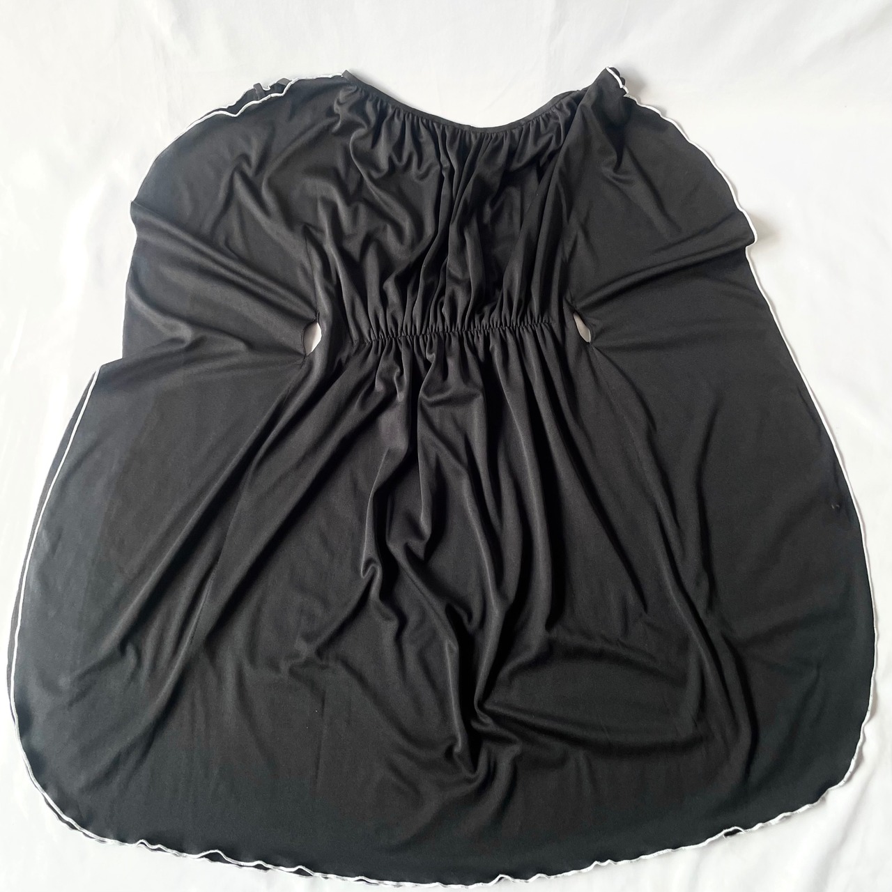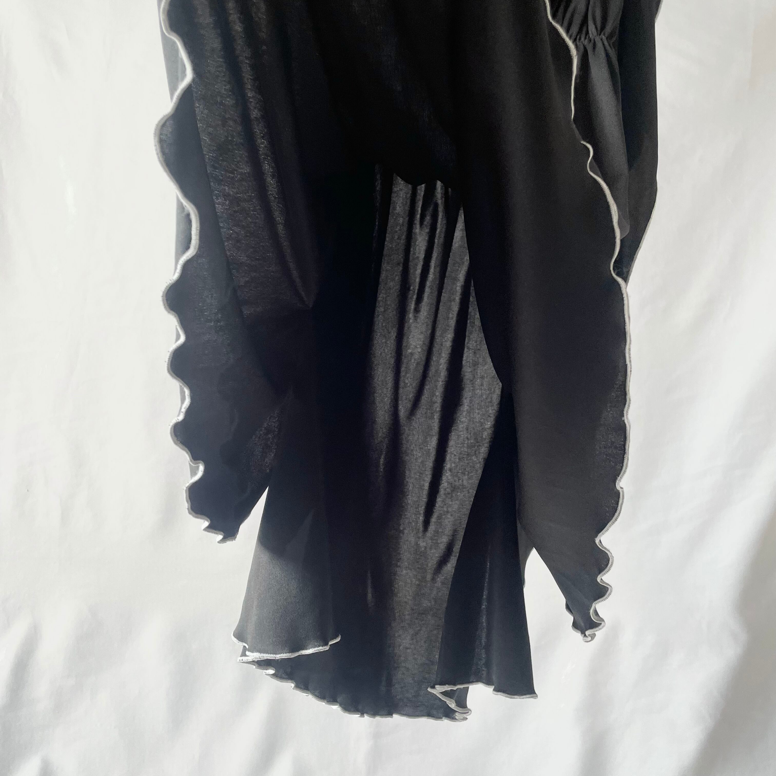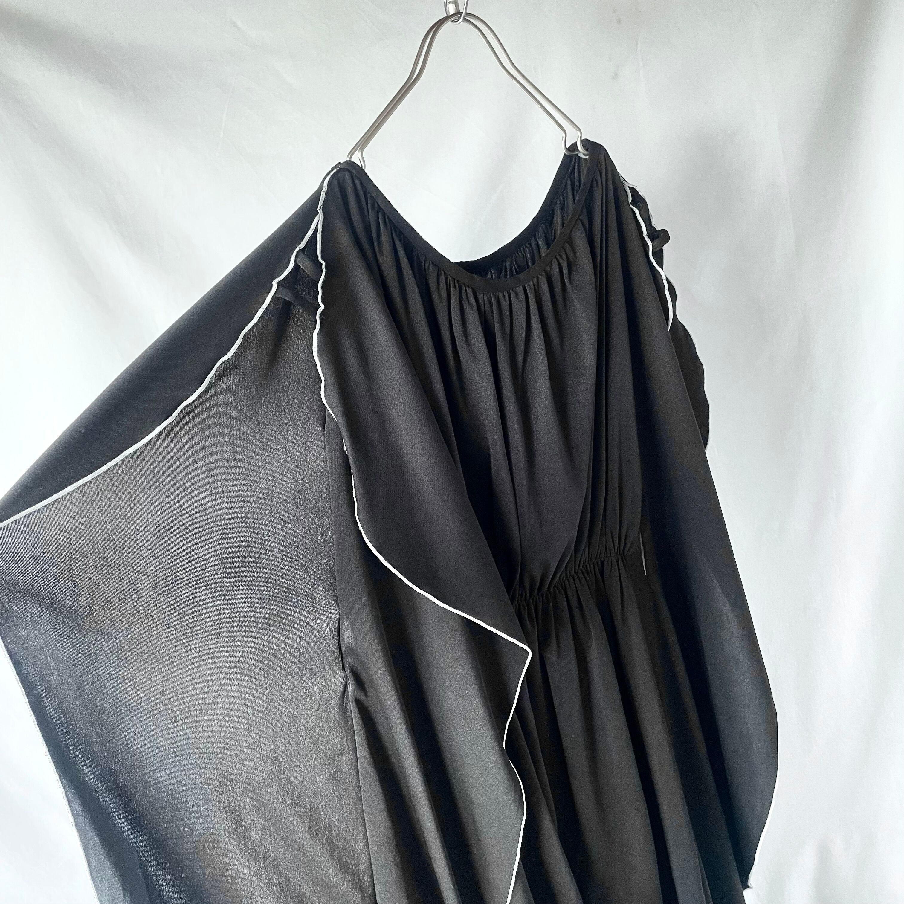 黒地に白ラインがアクセントになったドレープワンピースです。