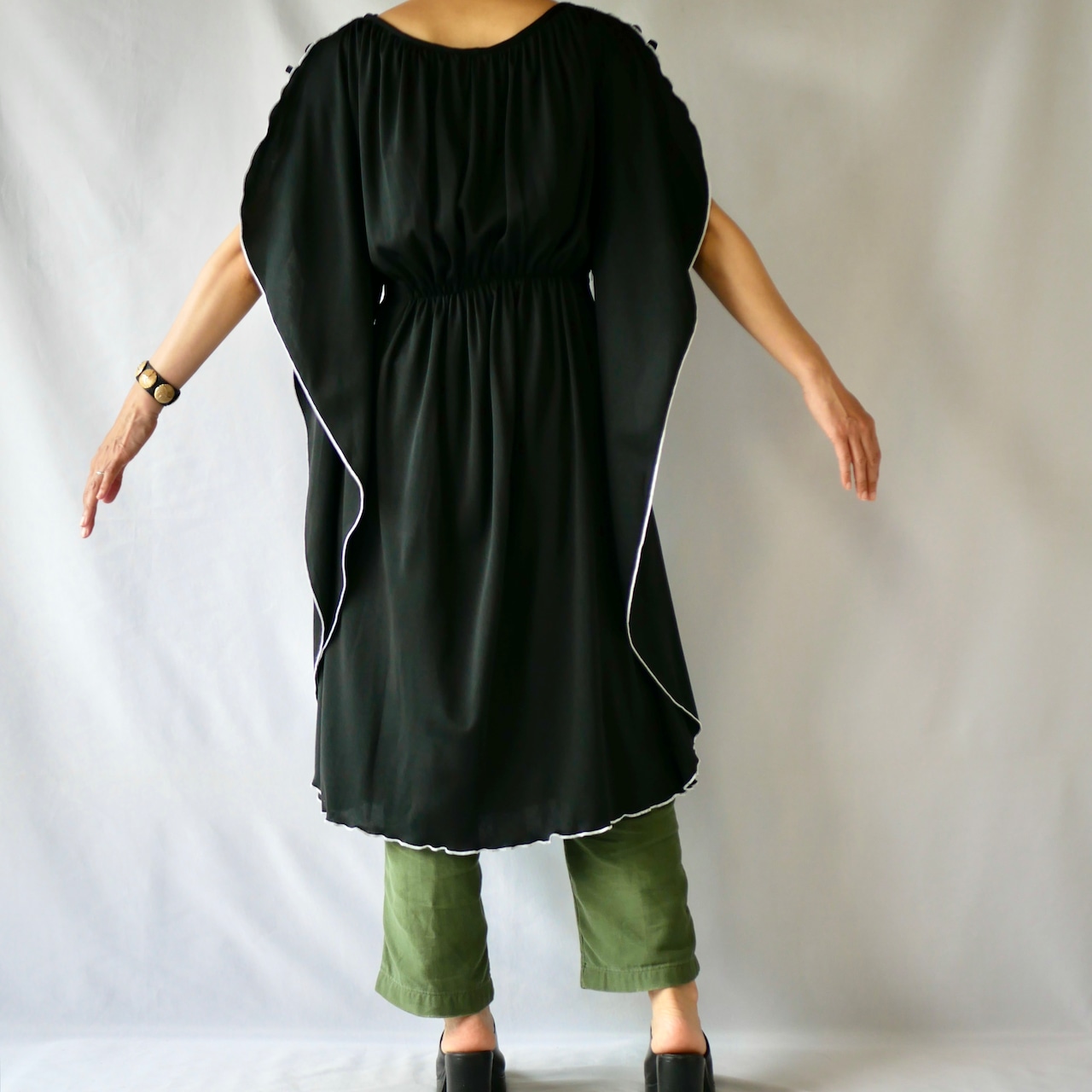 Euro C&A vintage black polyester drape onepiece ヴィンテージ ヨーロッパ 黒 ポリエステル ギャザードレープワンピース