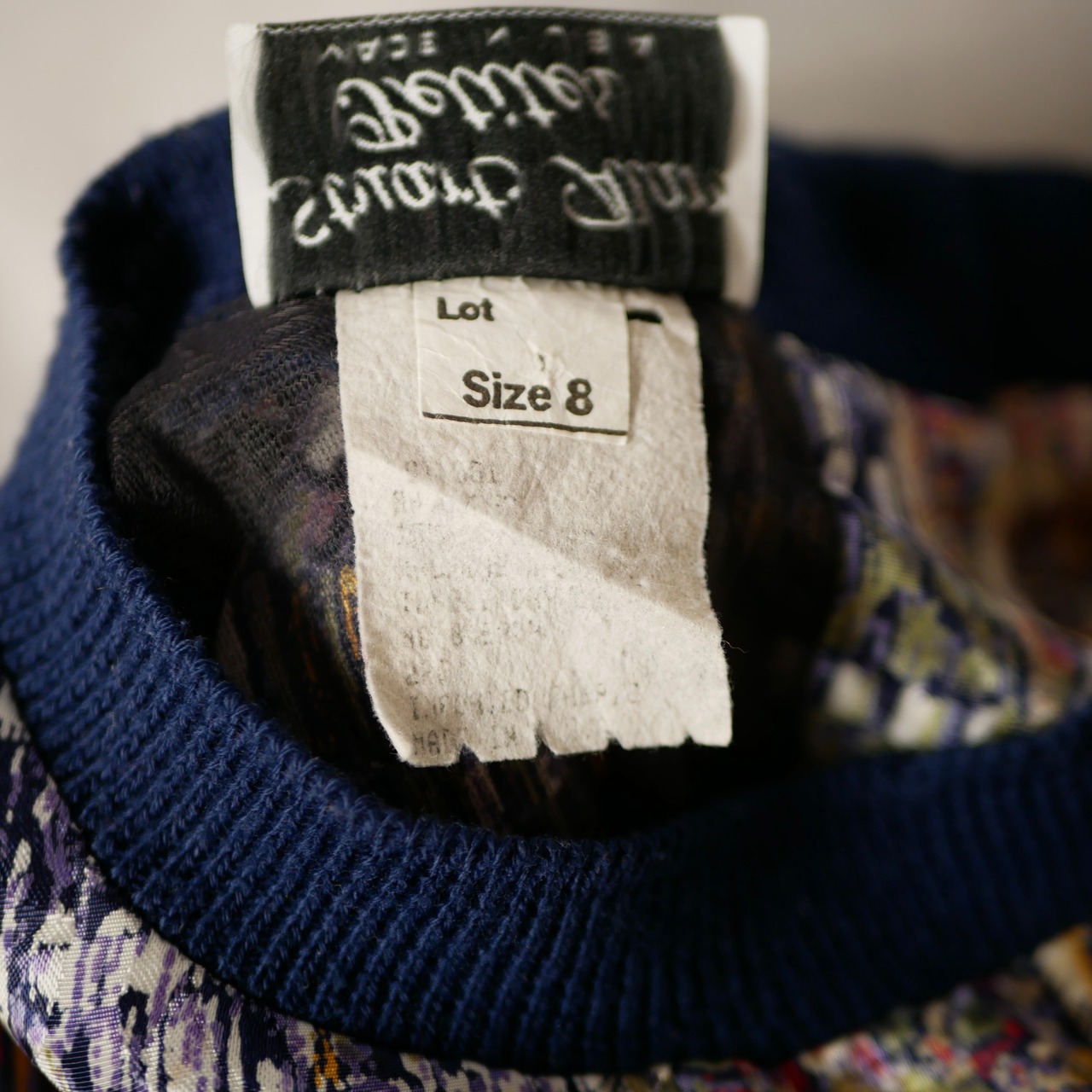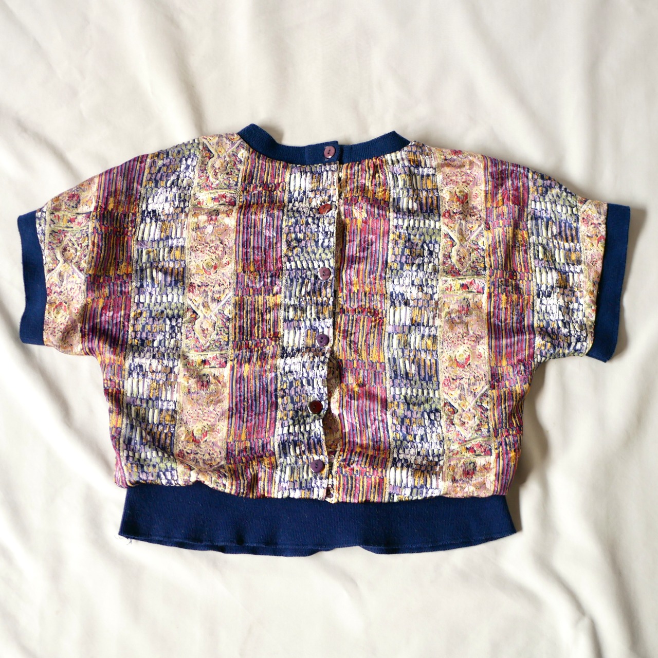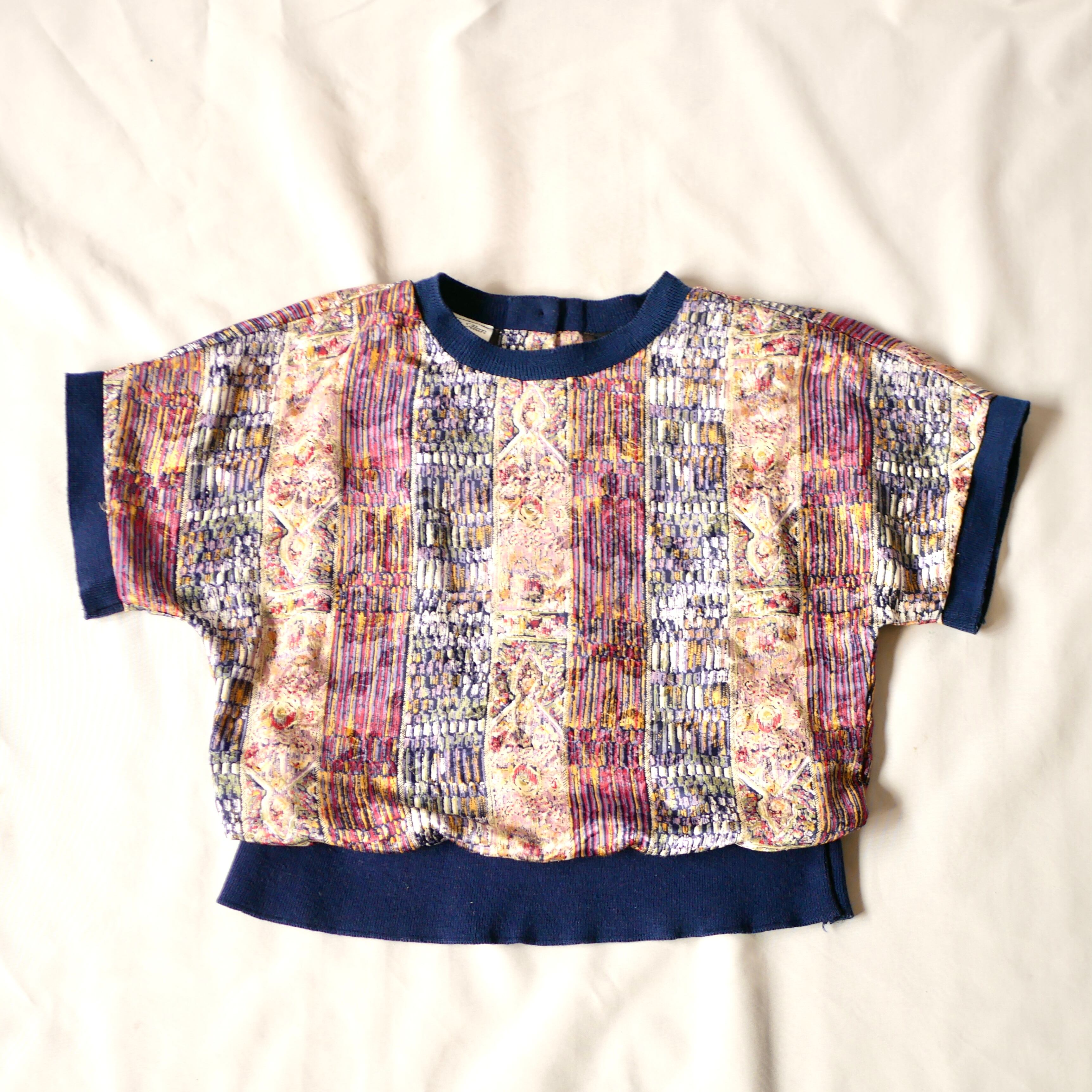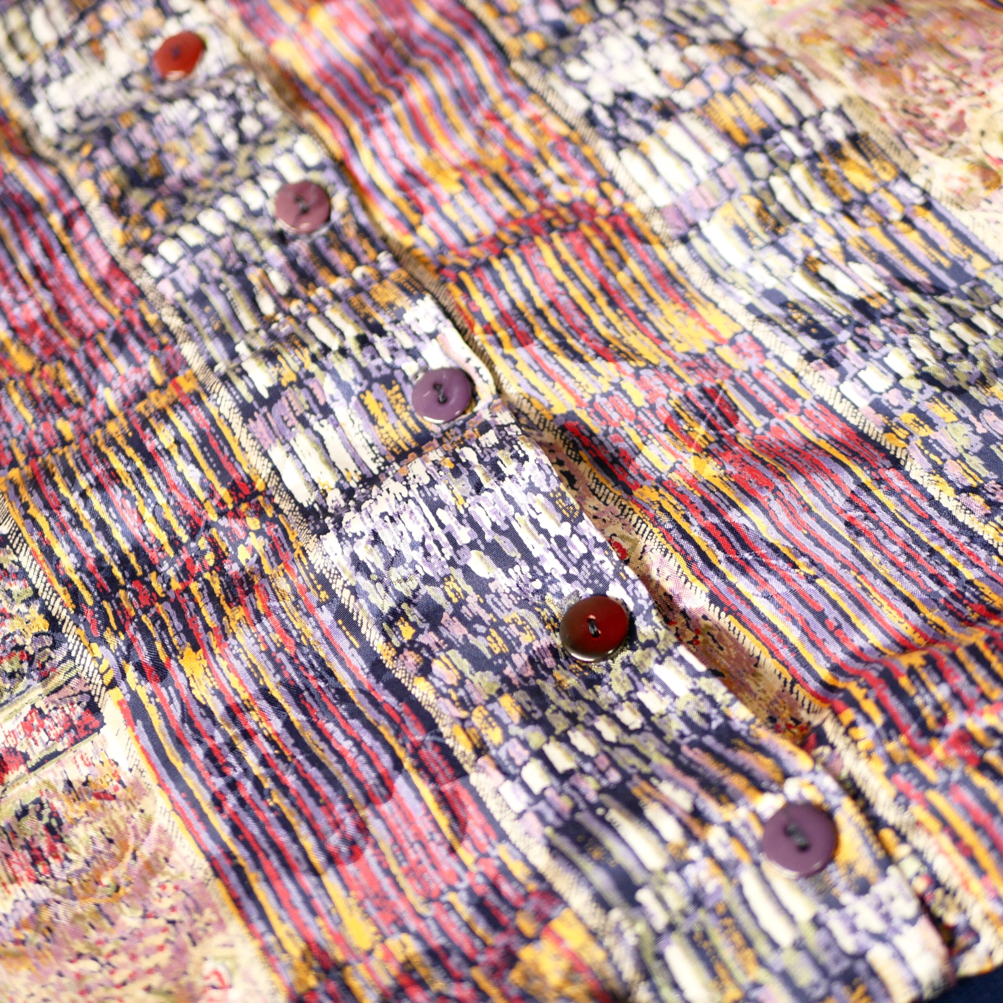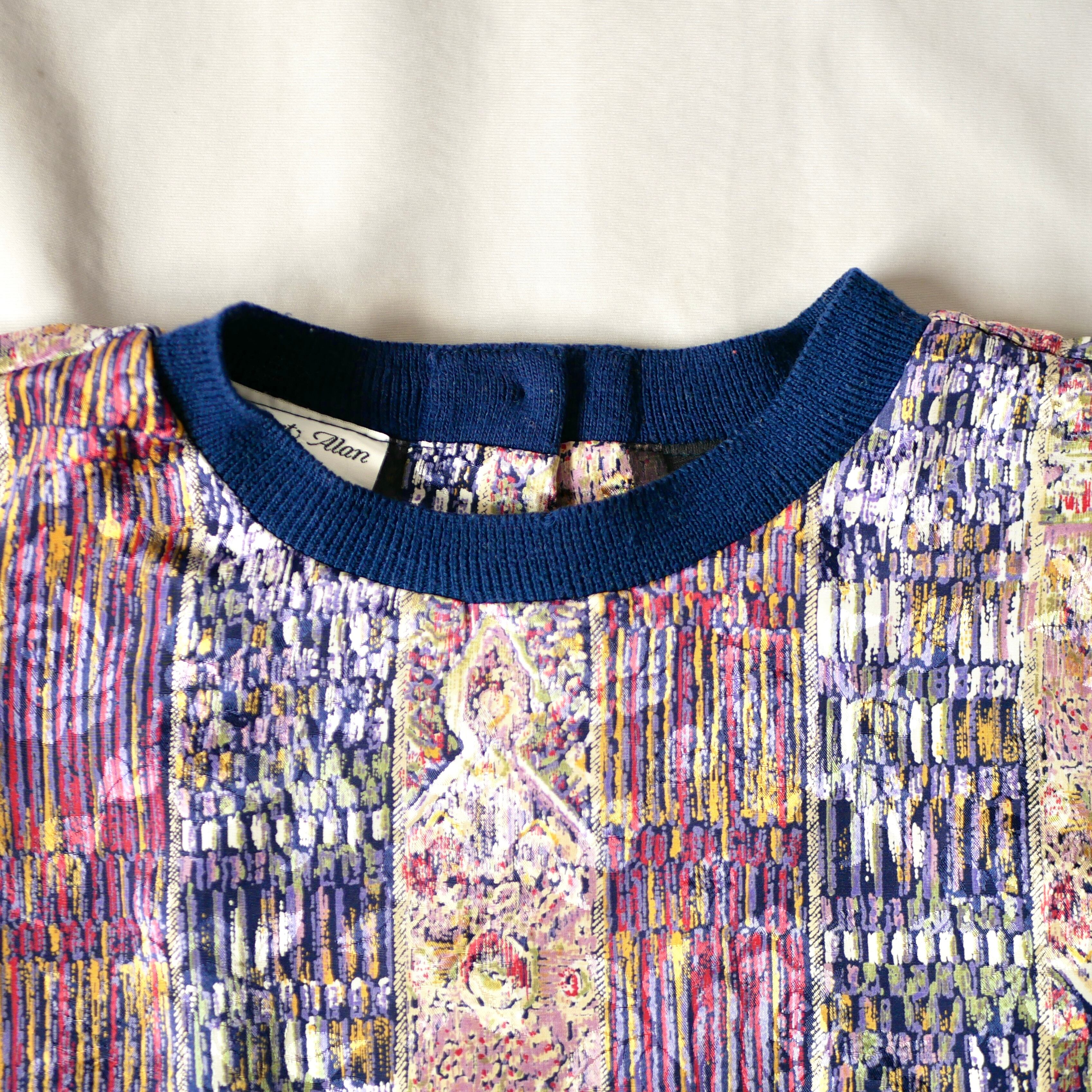 Made in USA back button polyester tops アメリカ製 絵画風総柄 後ろボタン ポリエステルトップス