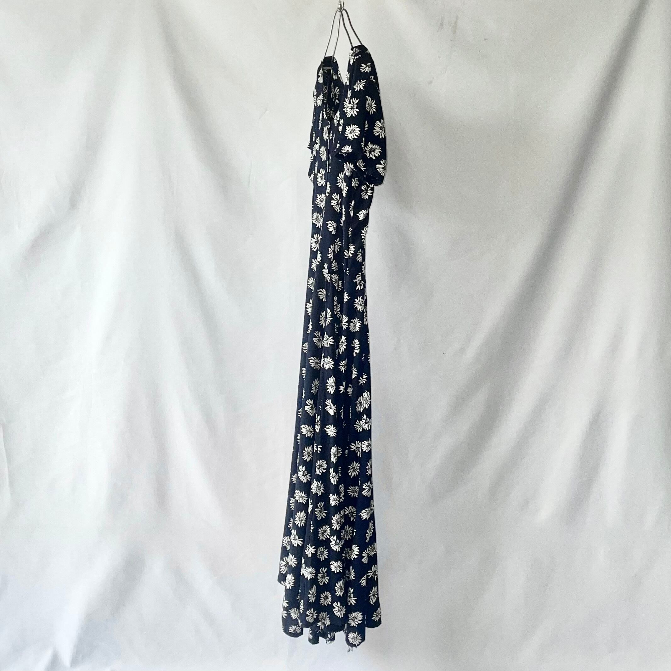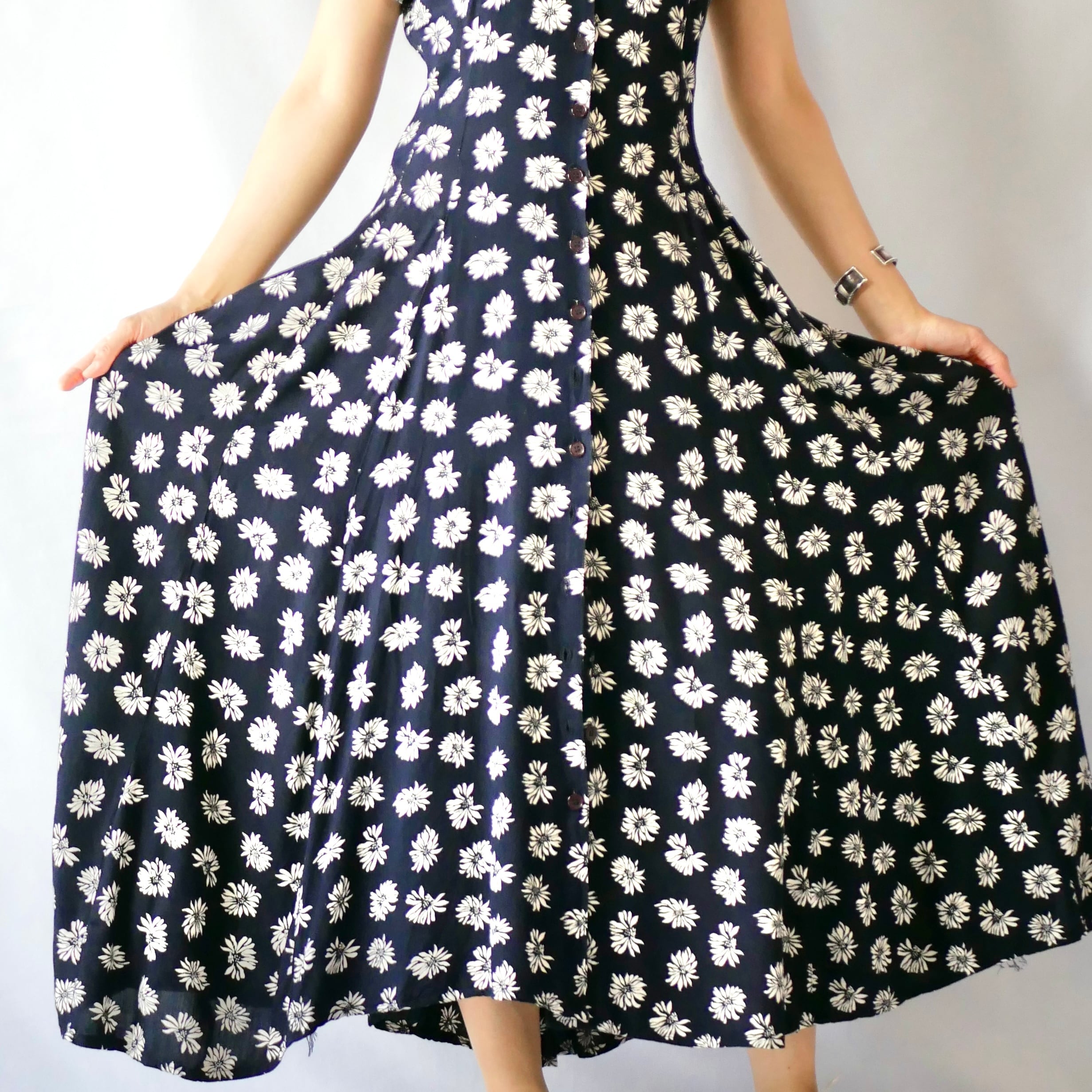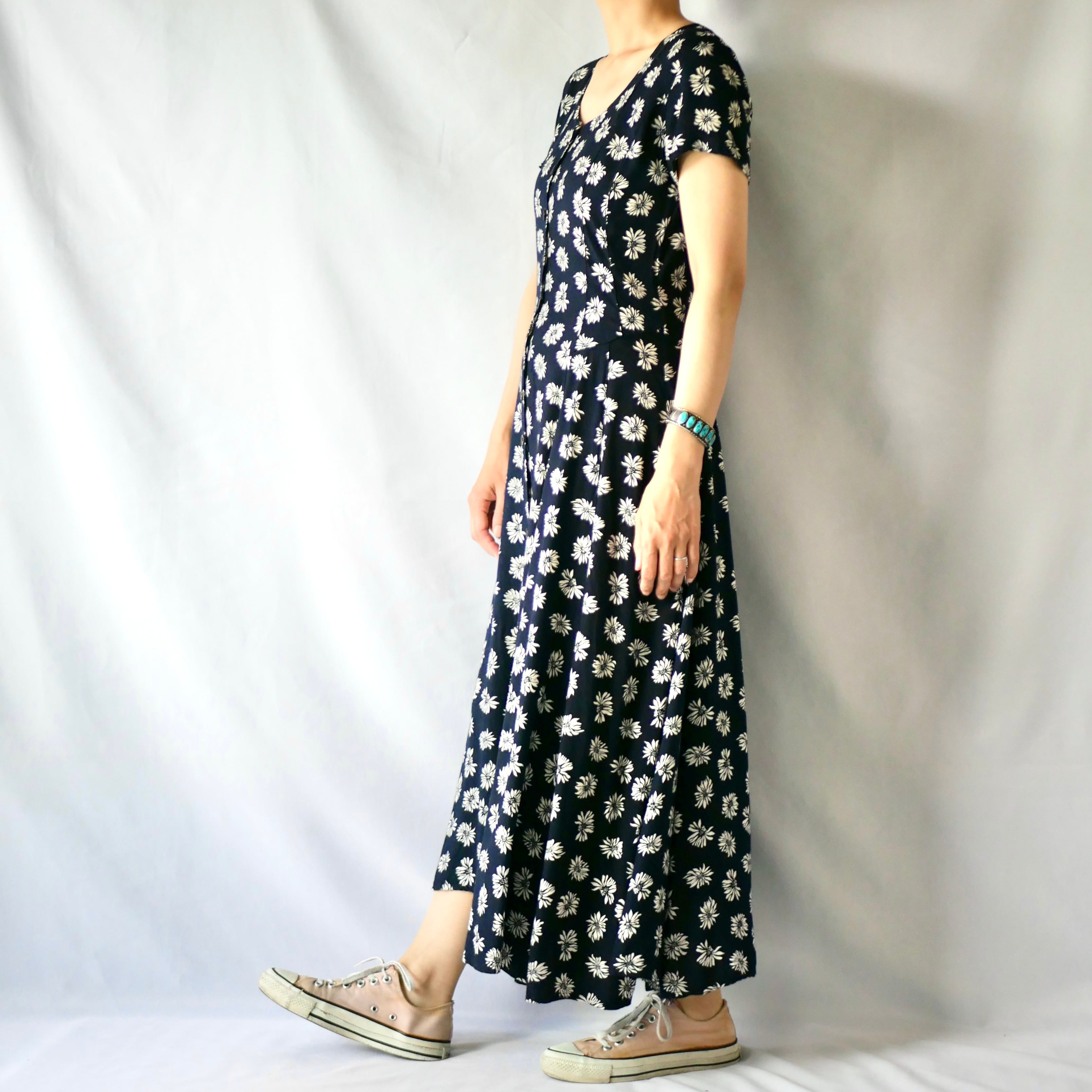 Made in India rayon black floral maxi onepiece インド製 フロントボタン レーヨン 黒花柄 前開き マキシワンピース