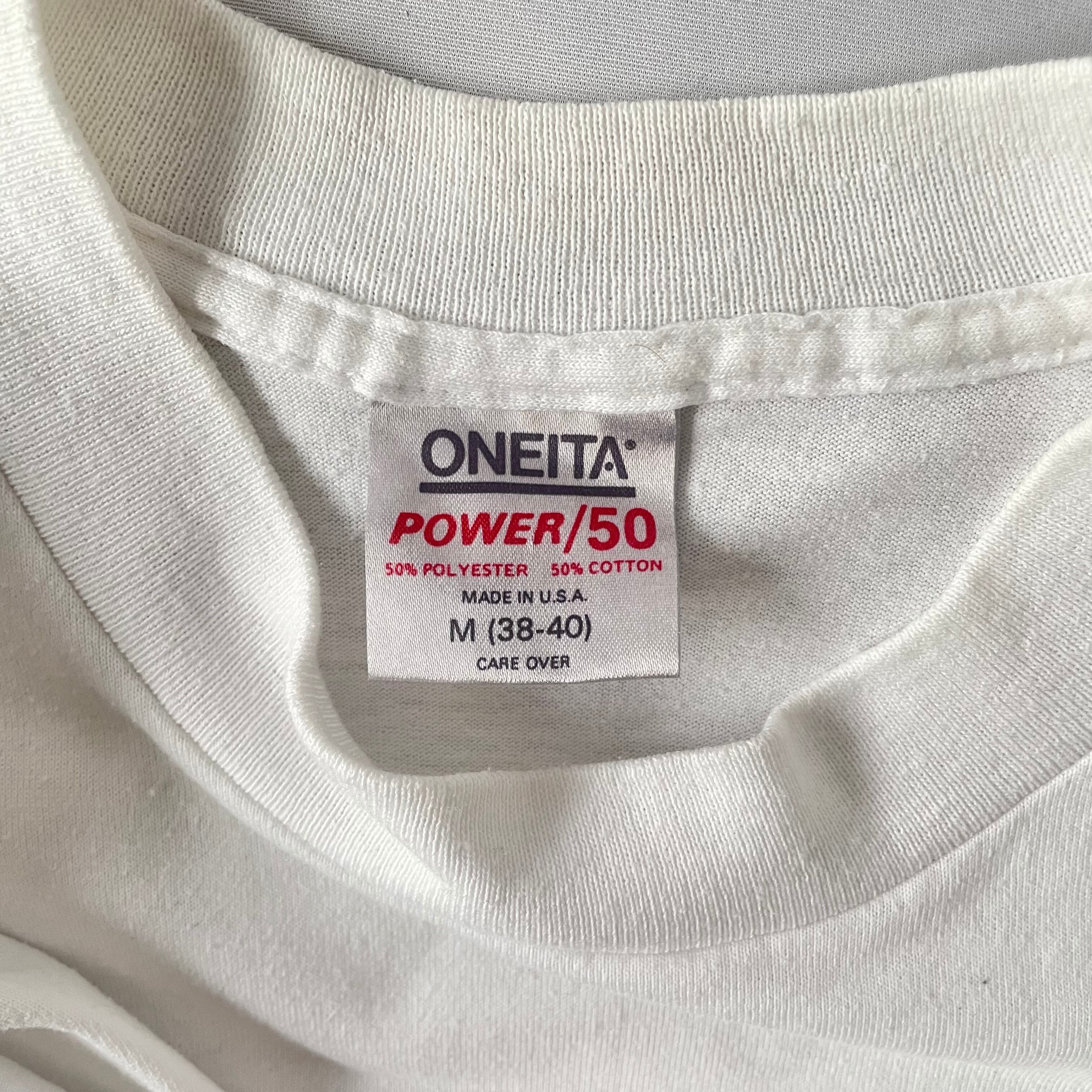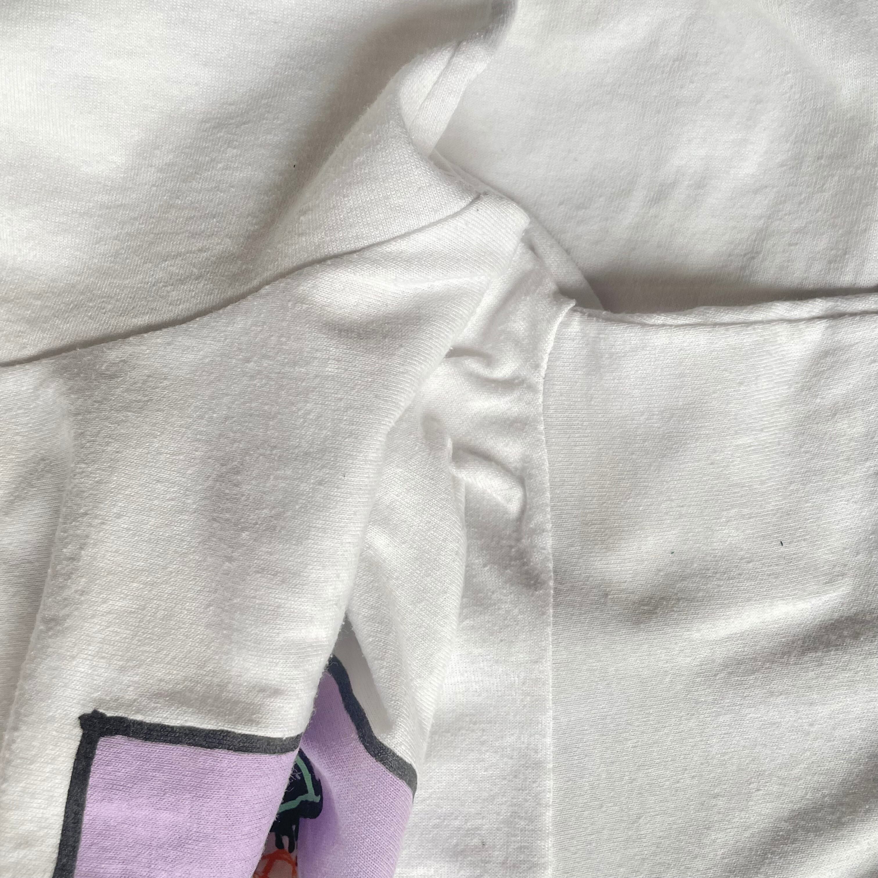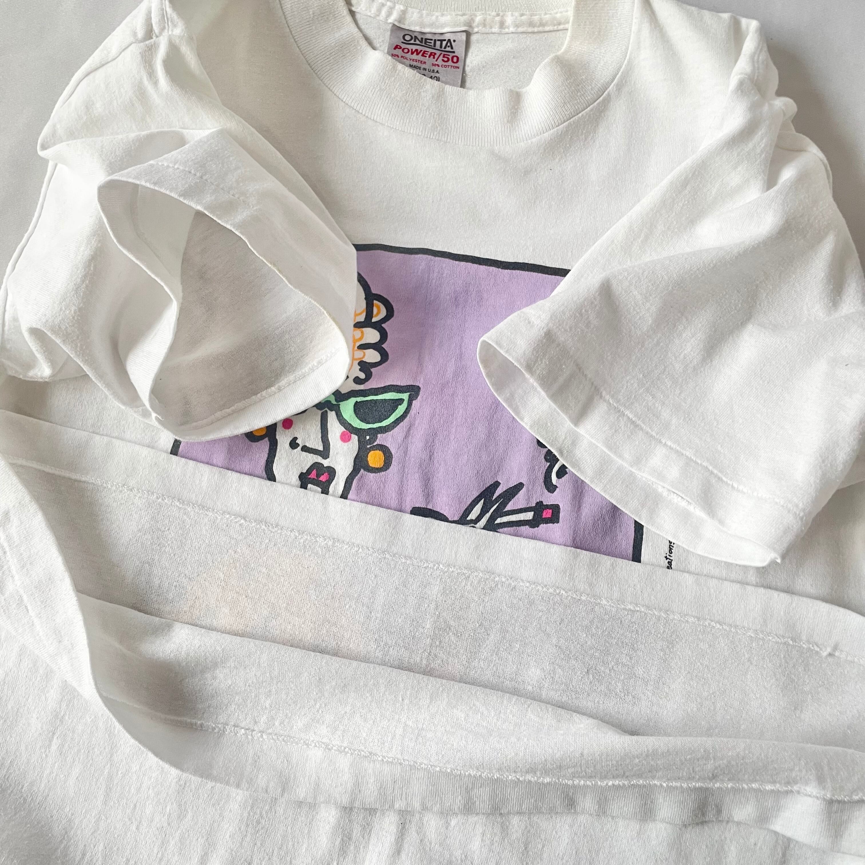 1990年クレジット入り、ポップなカラーリングとアメリカンジョーク入りプリントが可愛いUSA製Tシャツです。