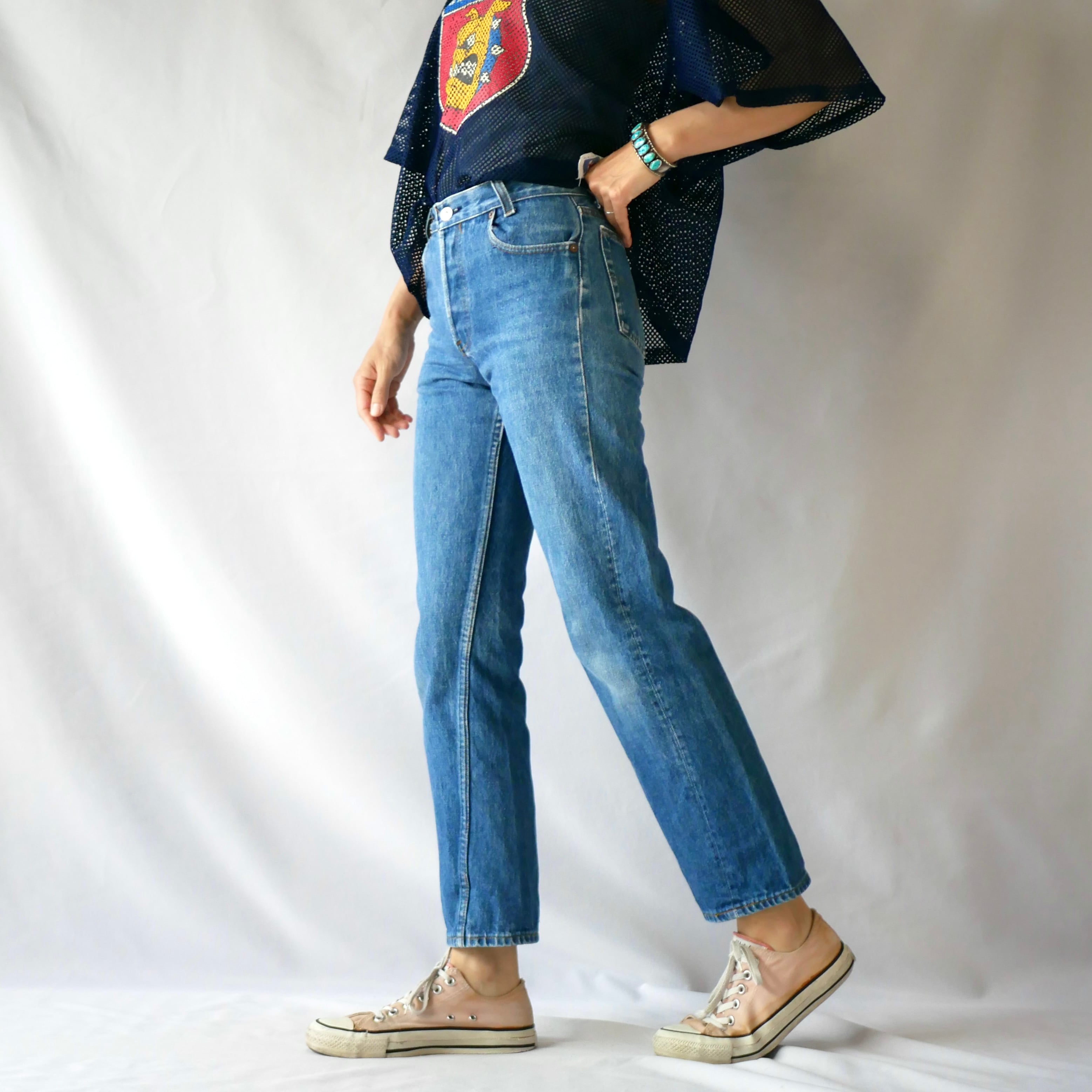 通常の501よりお尻をすっぽり包み込むようなハイウエスト、ゆるやかなテーパードで美しいシルエットです。