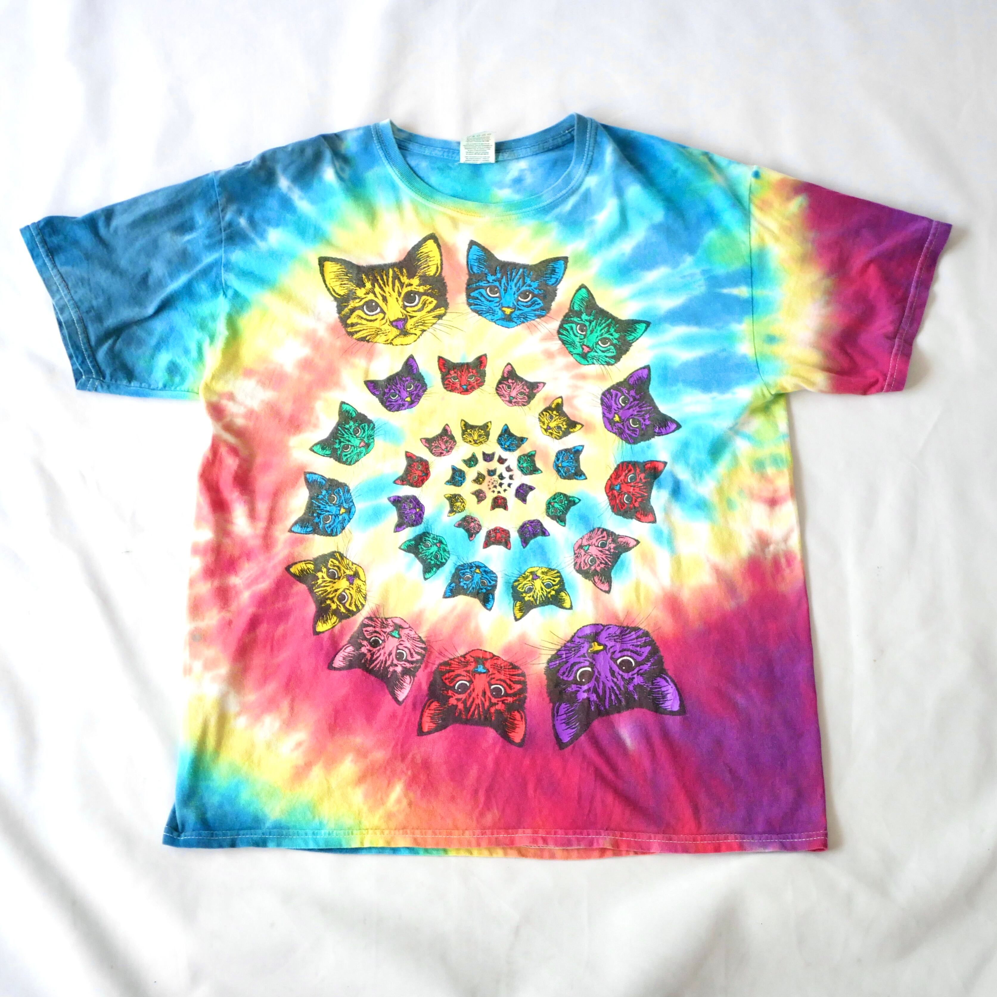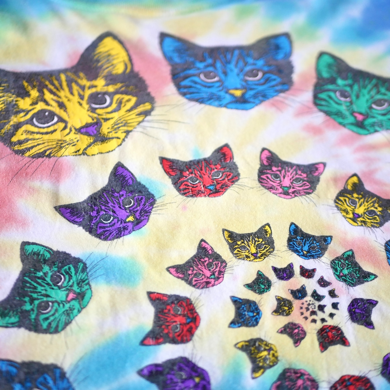 The cat round tye-dye T-shirt 猫たくさん タイダイ 渦巻き Tシャツ