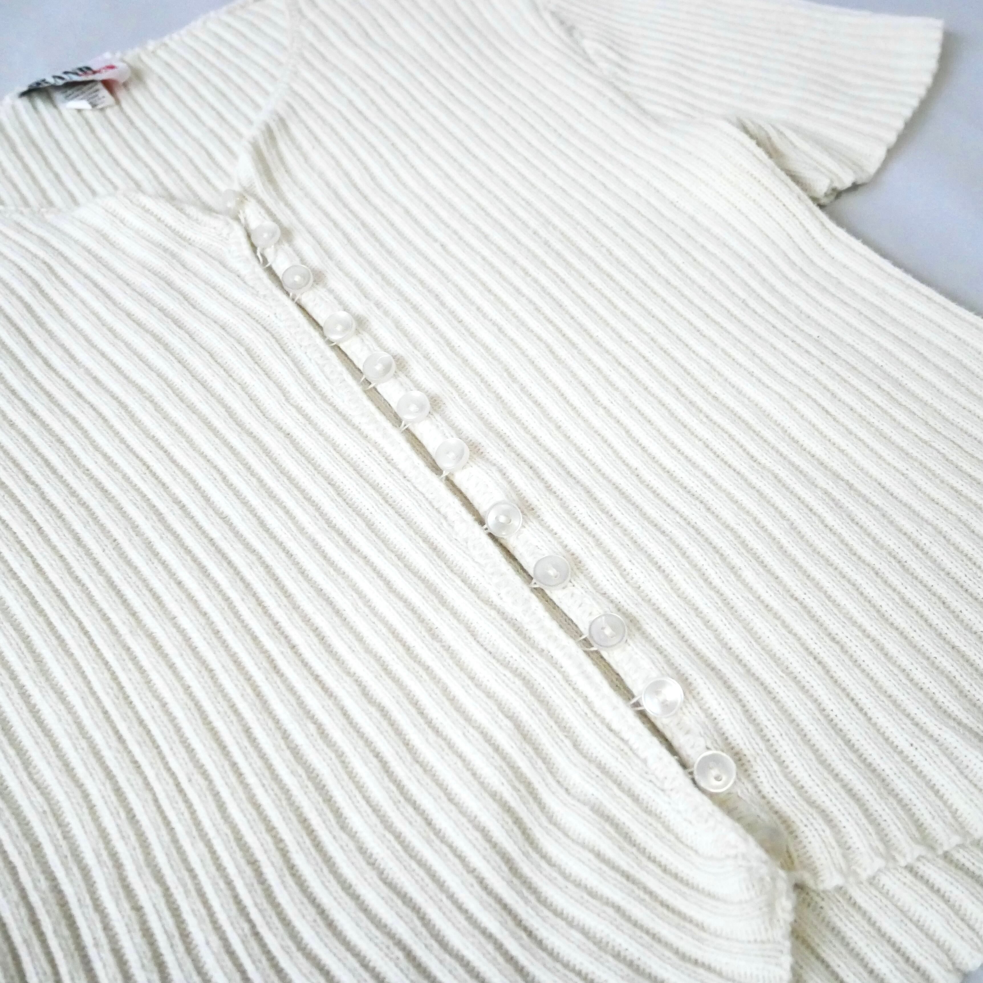 細かく並んだボタンやリブの雰囲気がとても可愛いアメリカ製コットンニットトップスです。