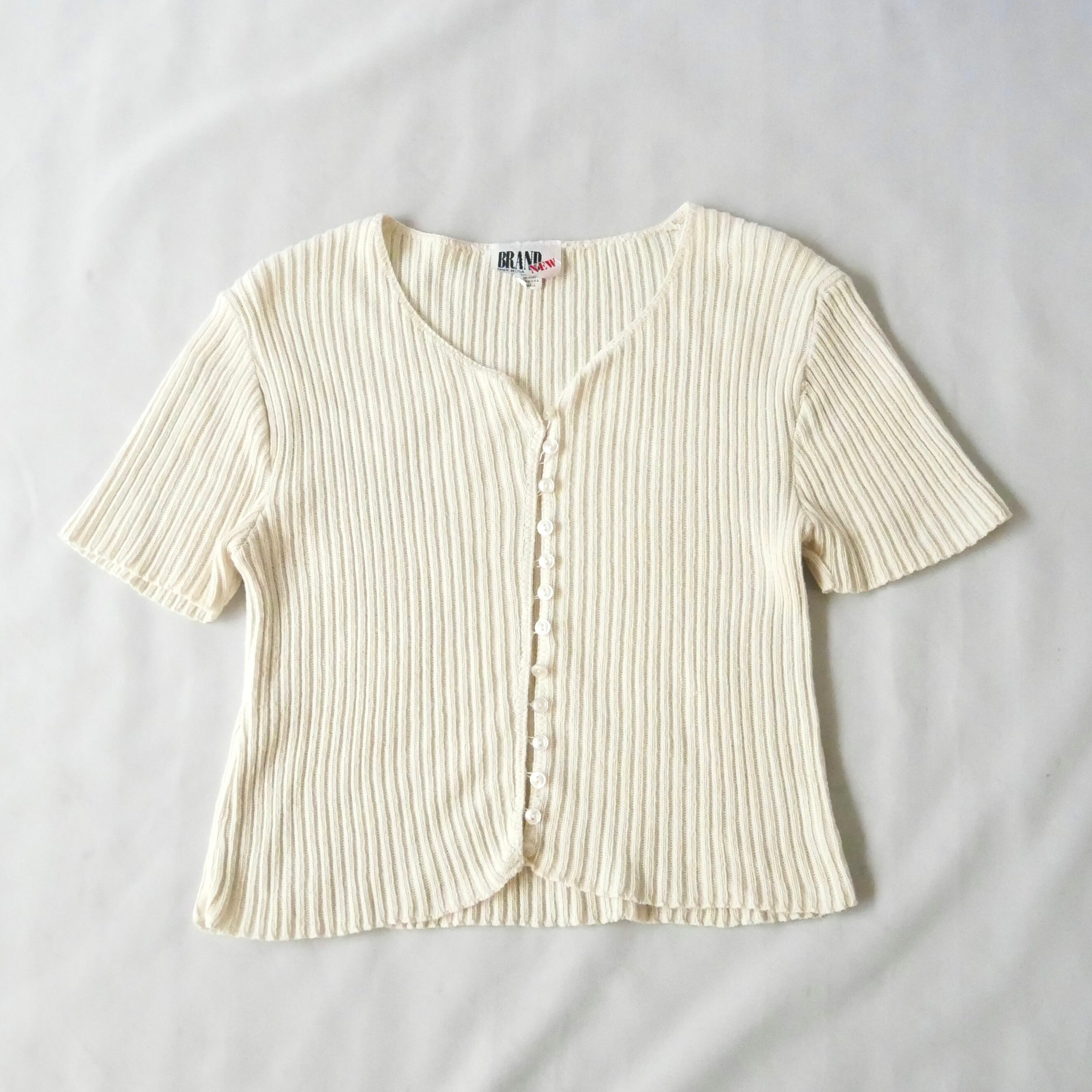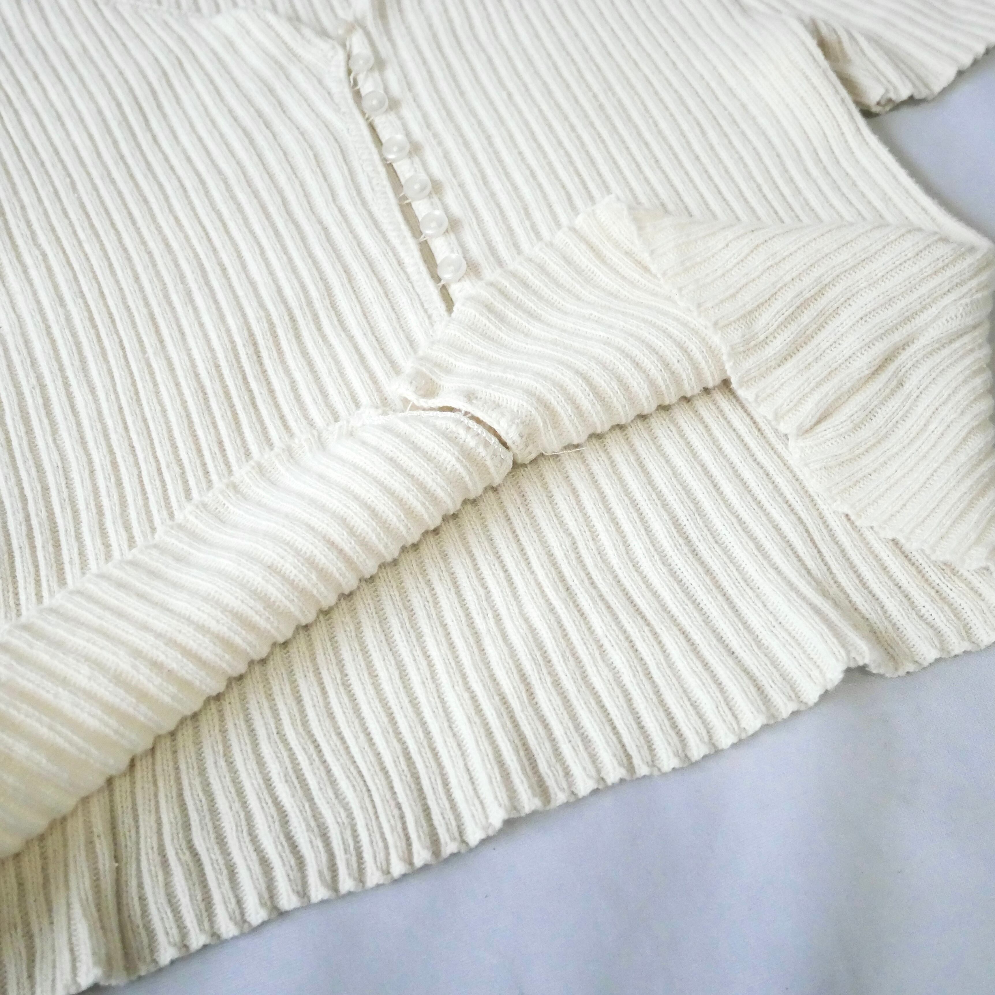Made in USA cotton ribknit tops アメリカ製 アイボリーコットン リブ前開き トップス
