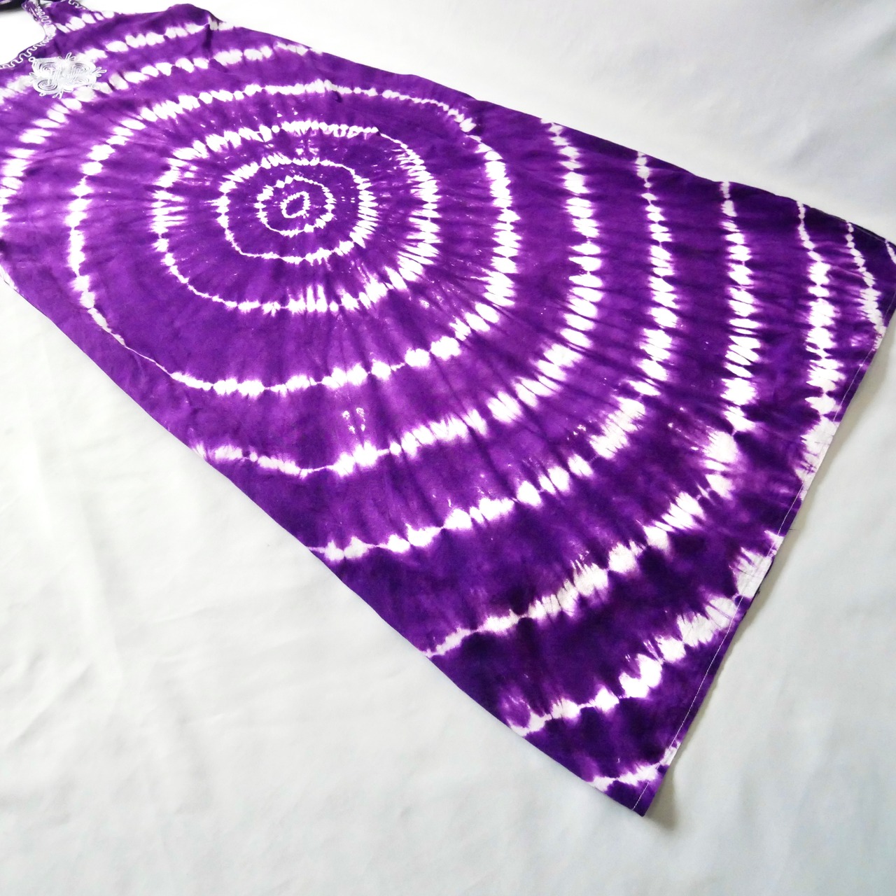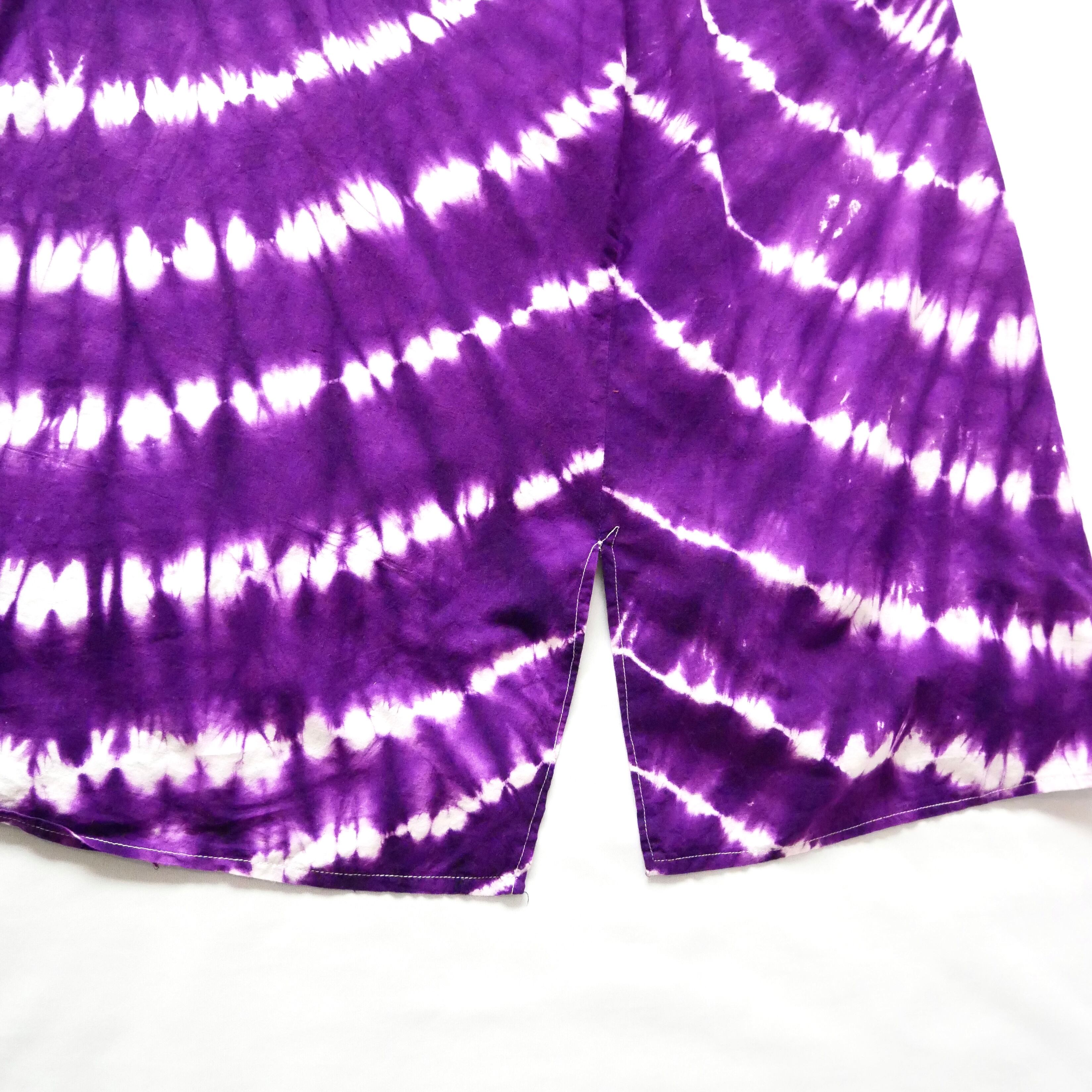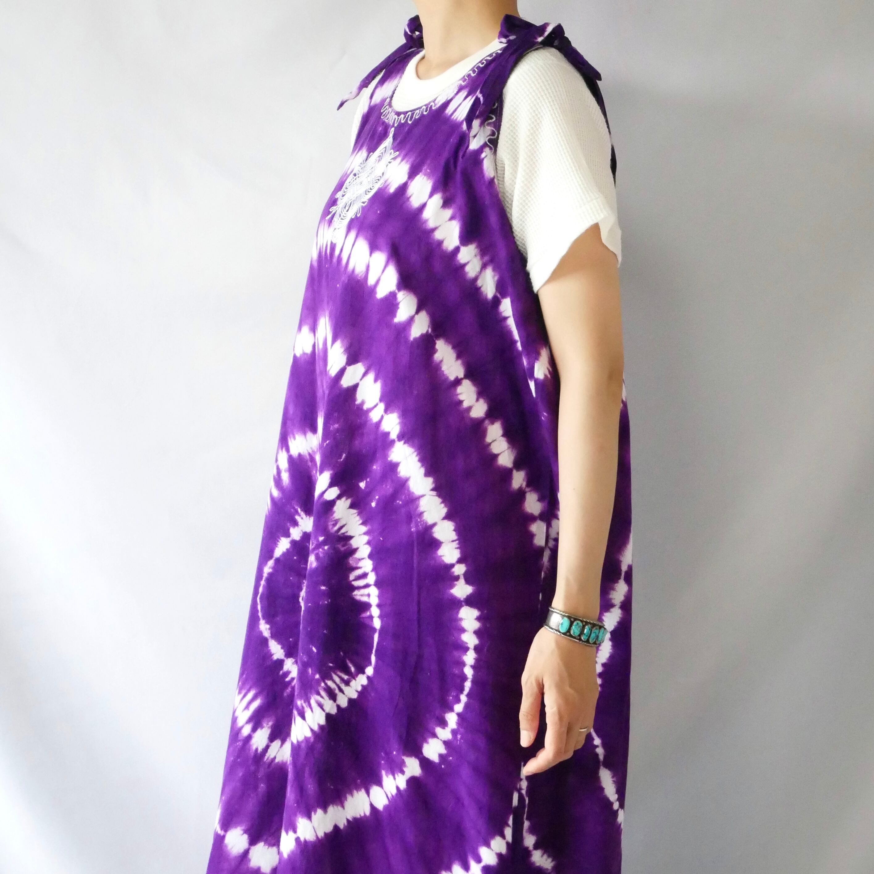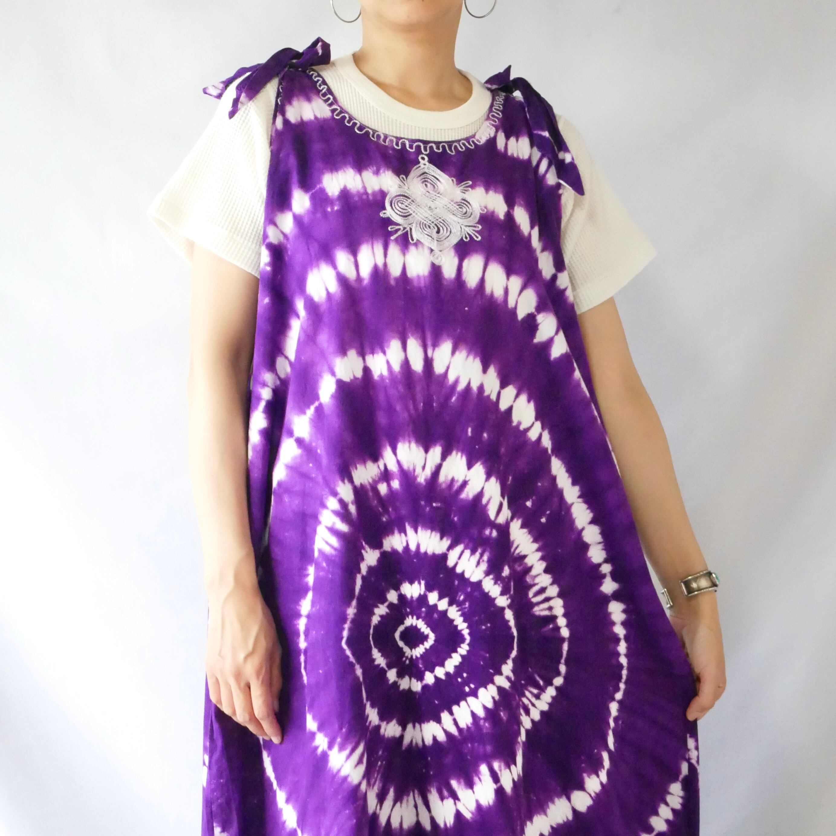 パープルのタイダイに肩リボンが可愛いマキシワンピースです。