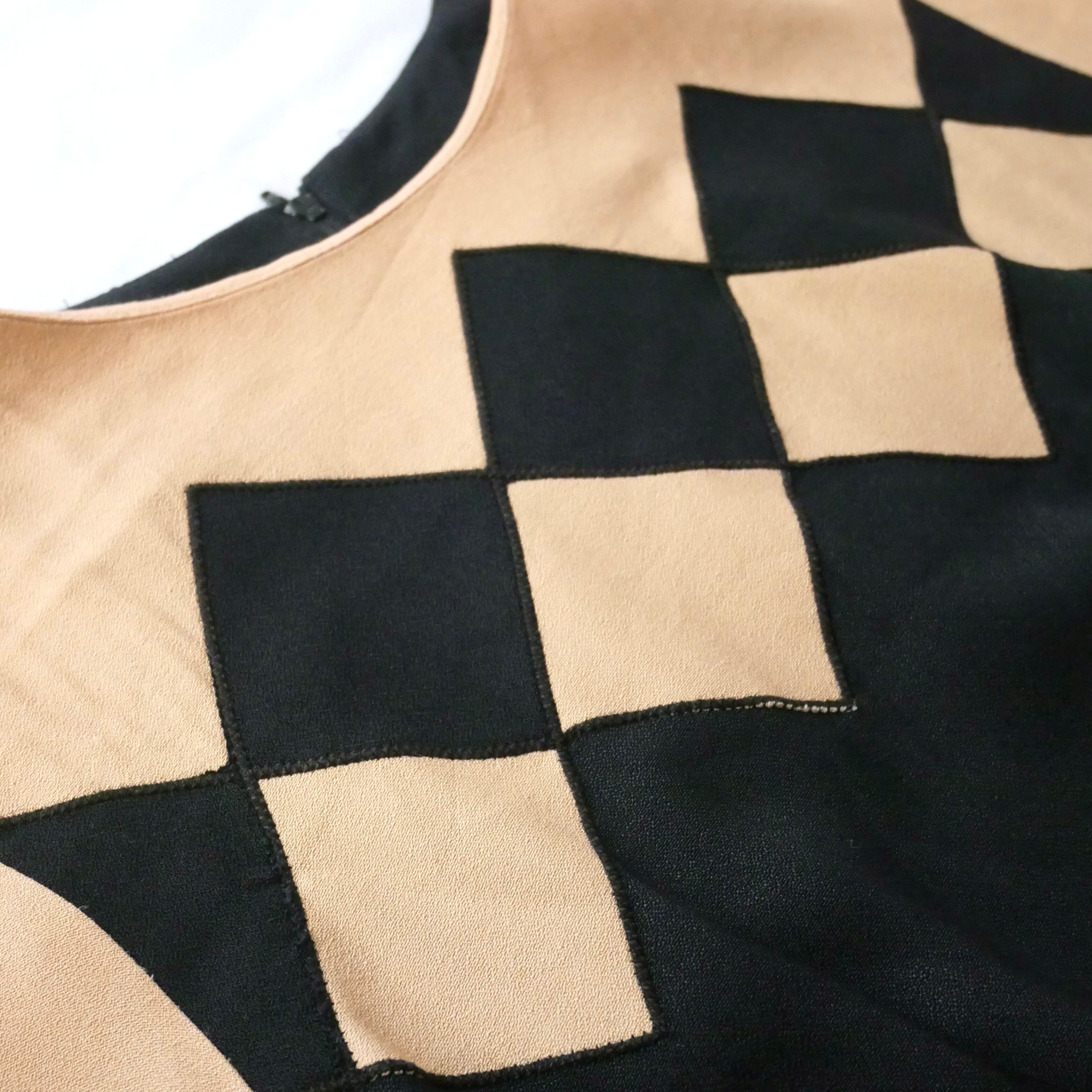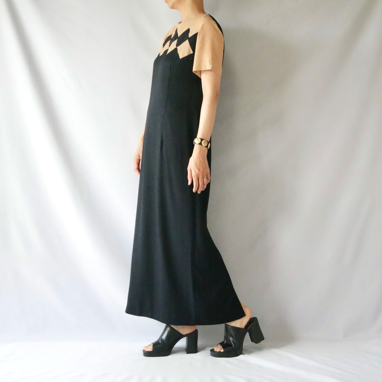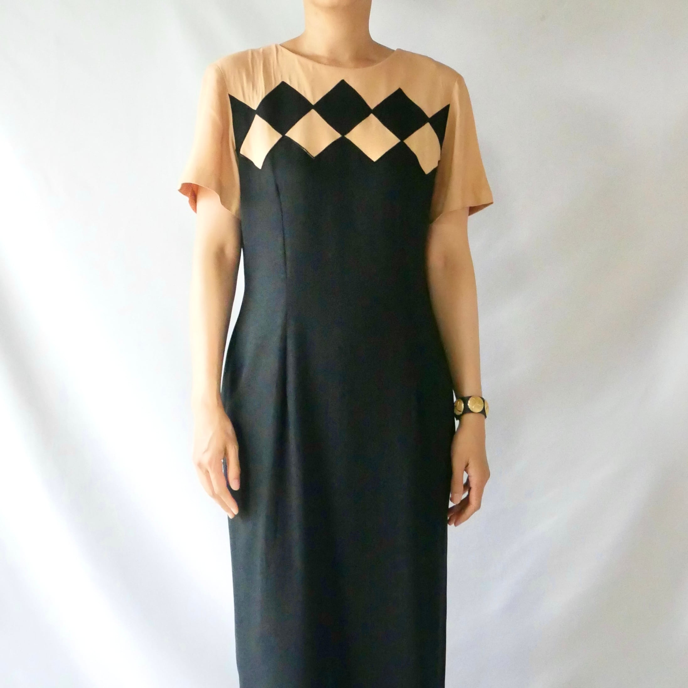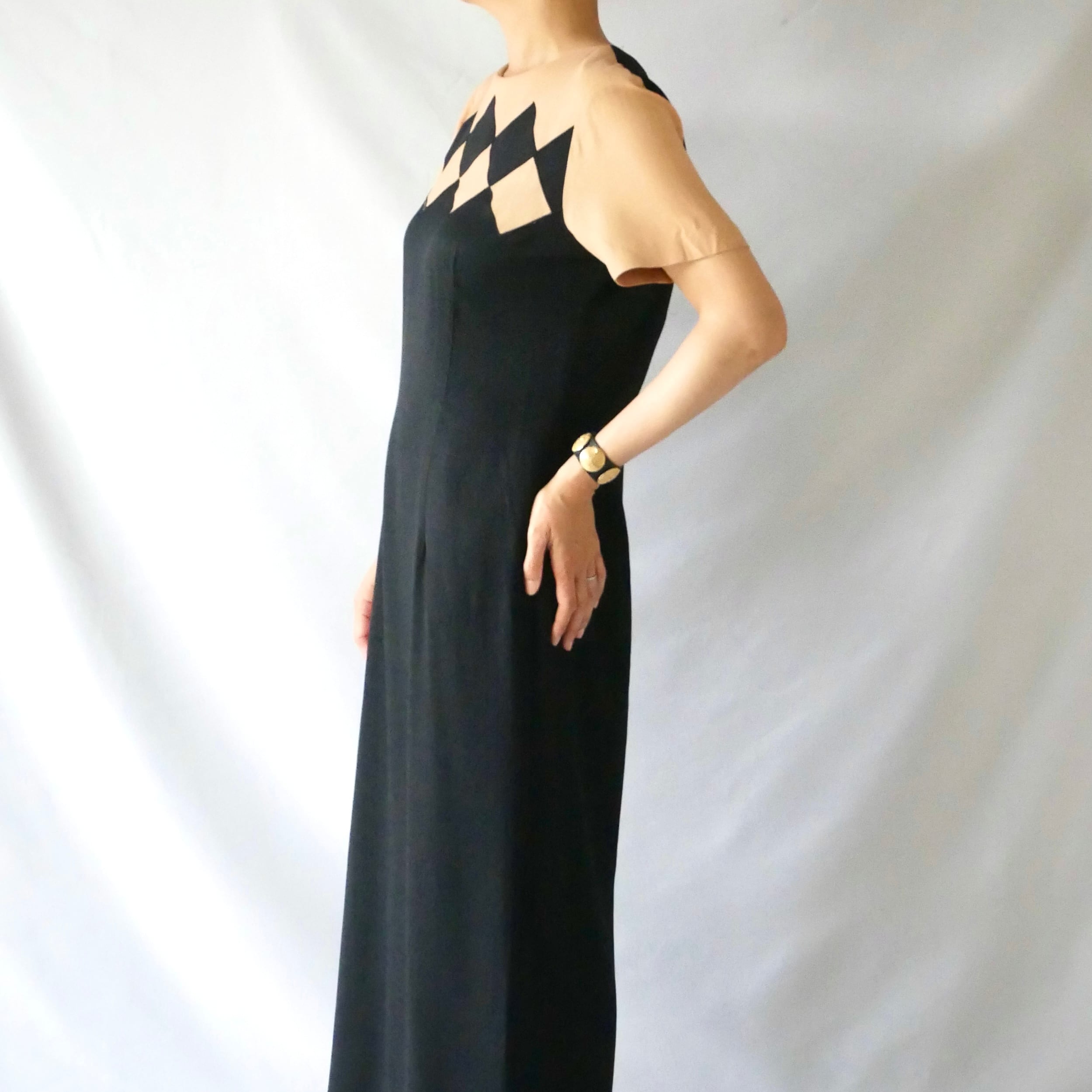胸元のピンクと黒のチェッカー柄がどことなくロカビリー調で可愛いUSA製マキシワンピースです。