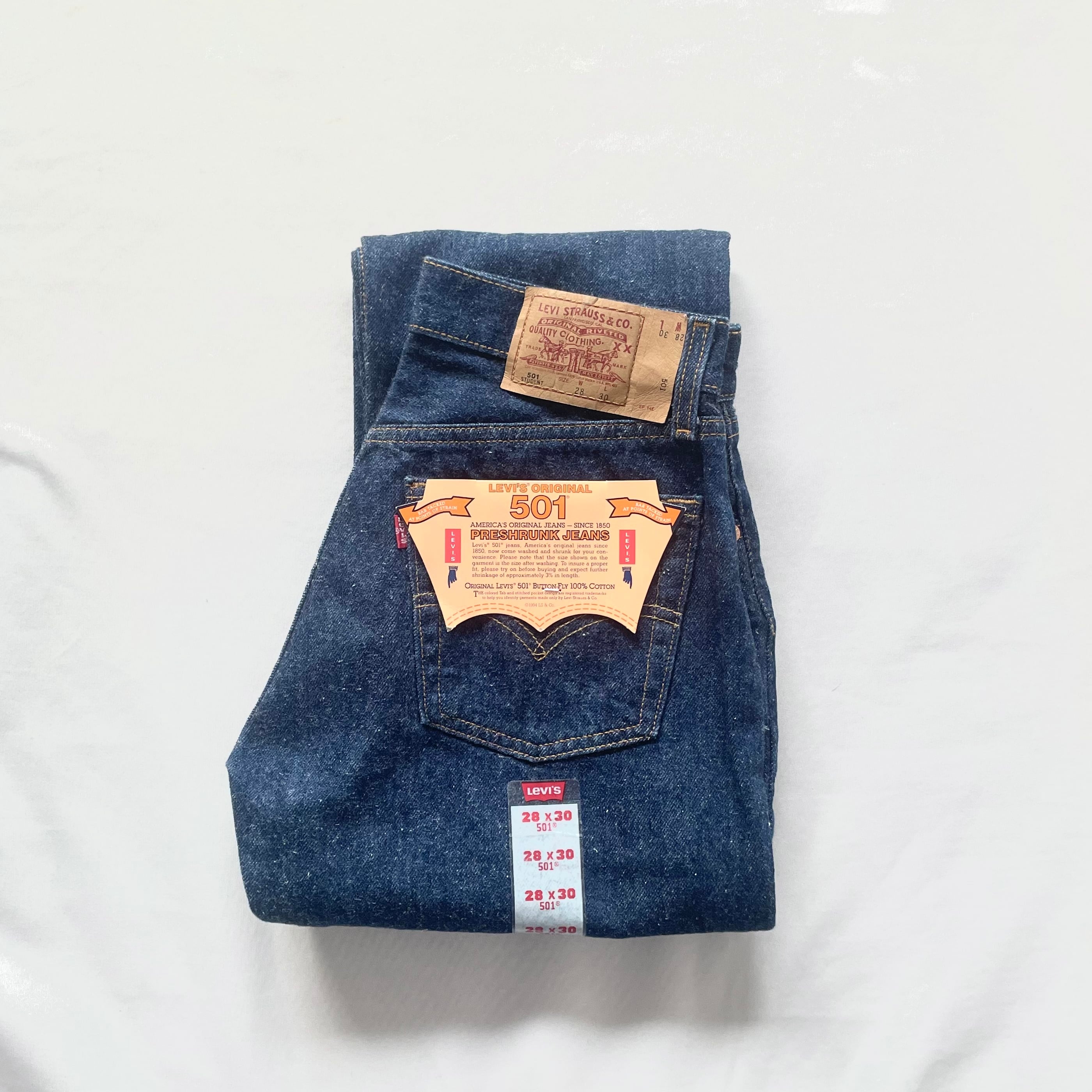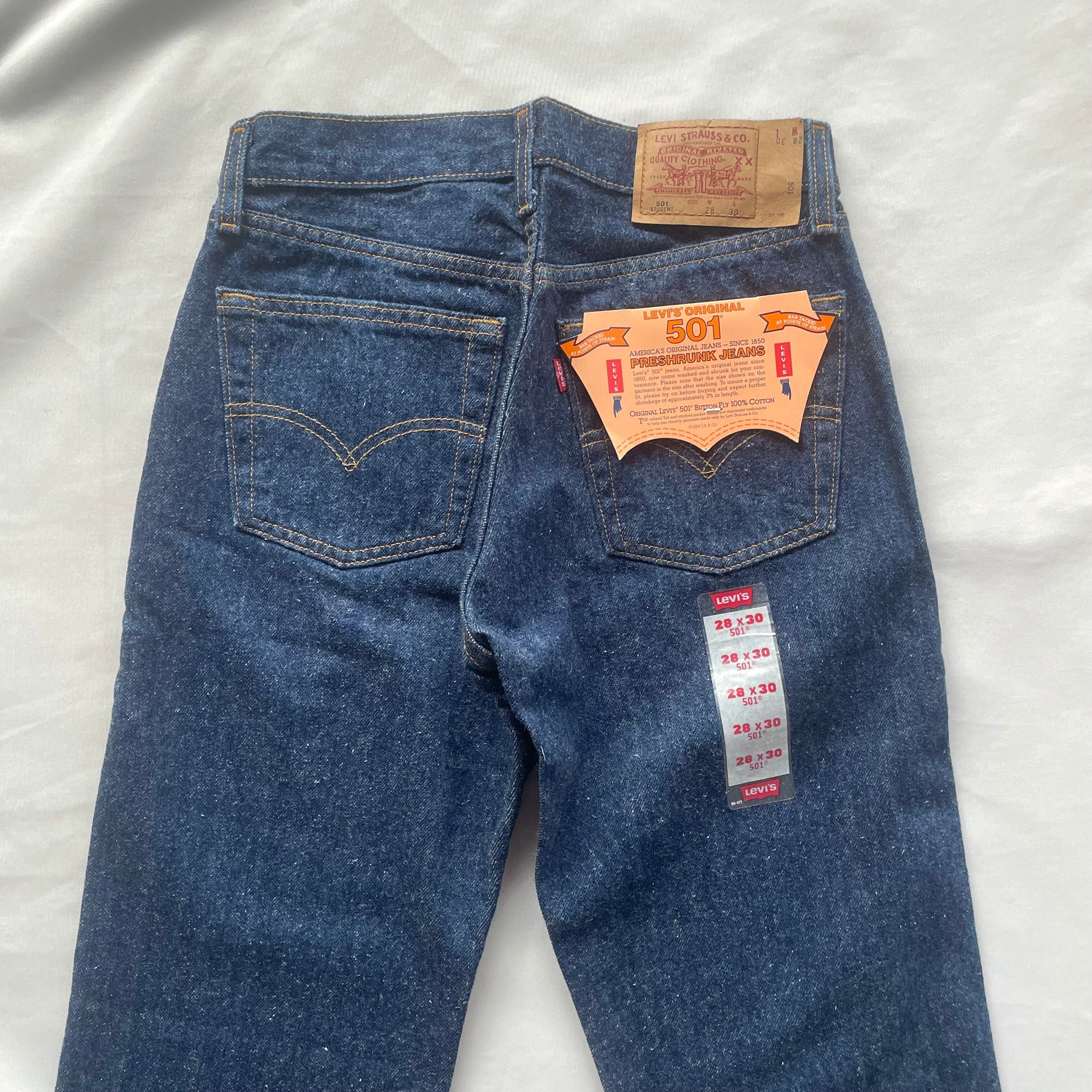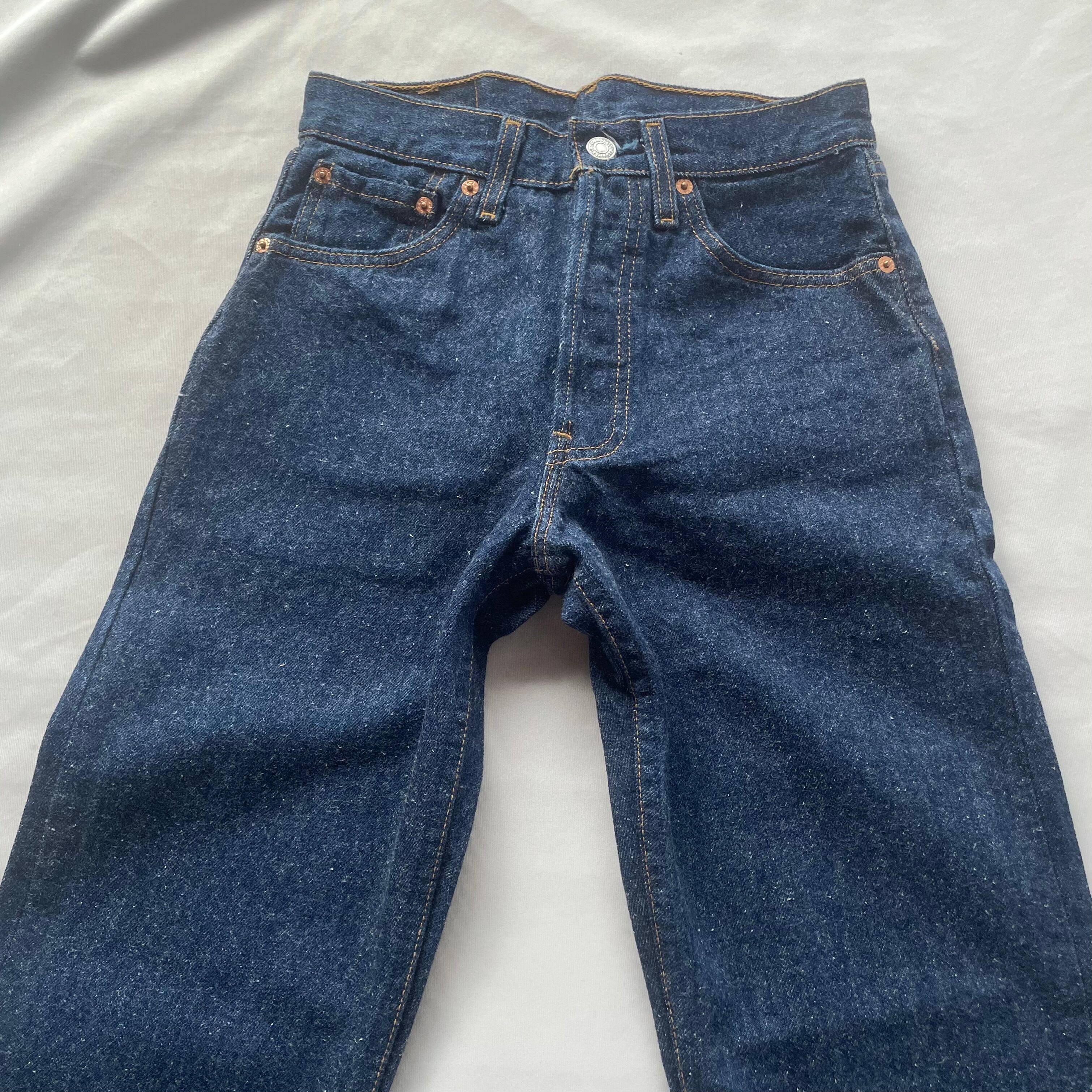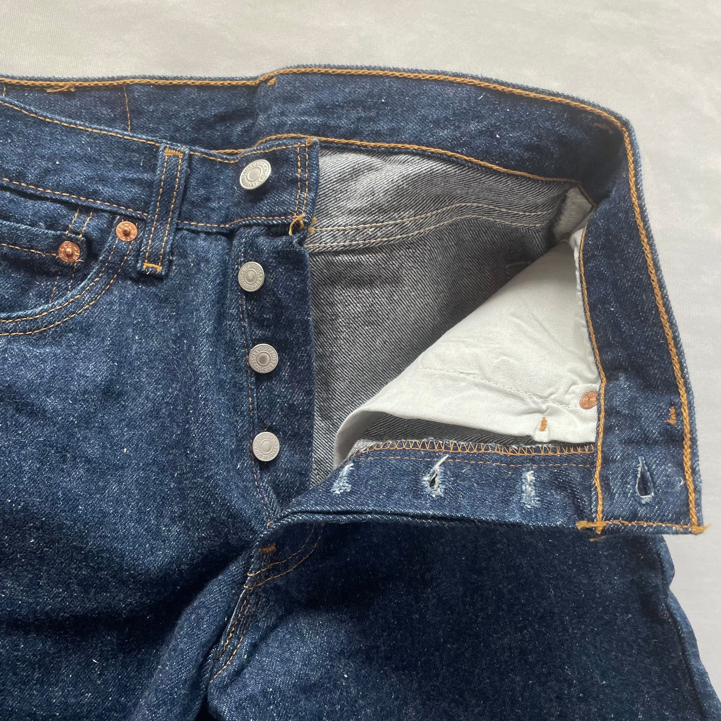 フラッシャー付きデッドストック!!希少な女性サイズの90年代アメリカ製リーバイス501 studentモデル毛羽立ち濃紺デニムパンツです。レングスもオリジナルの長さになります。