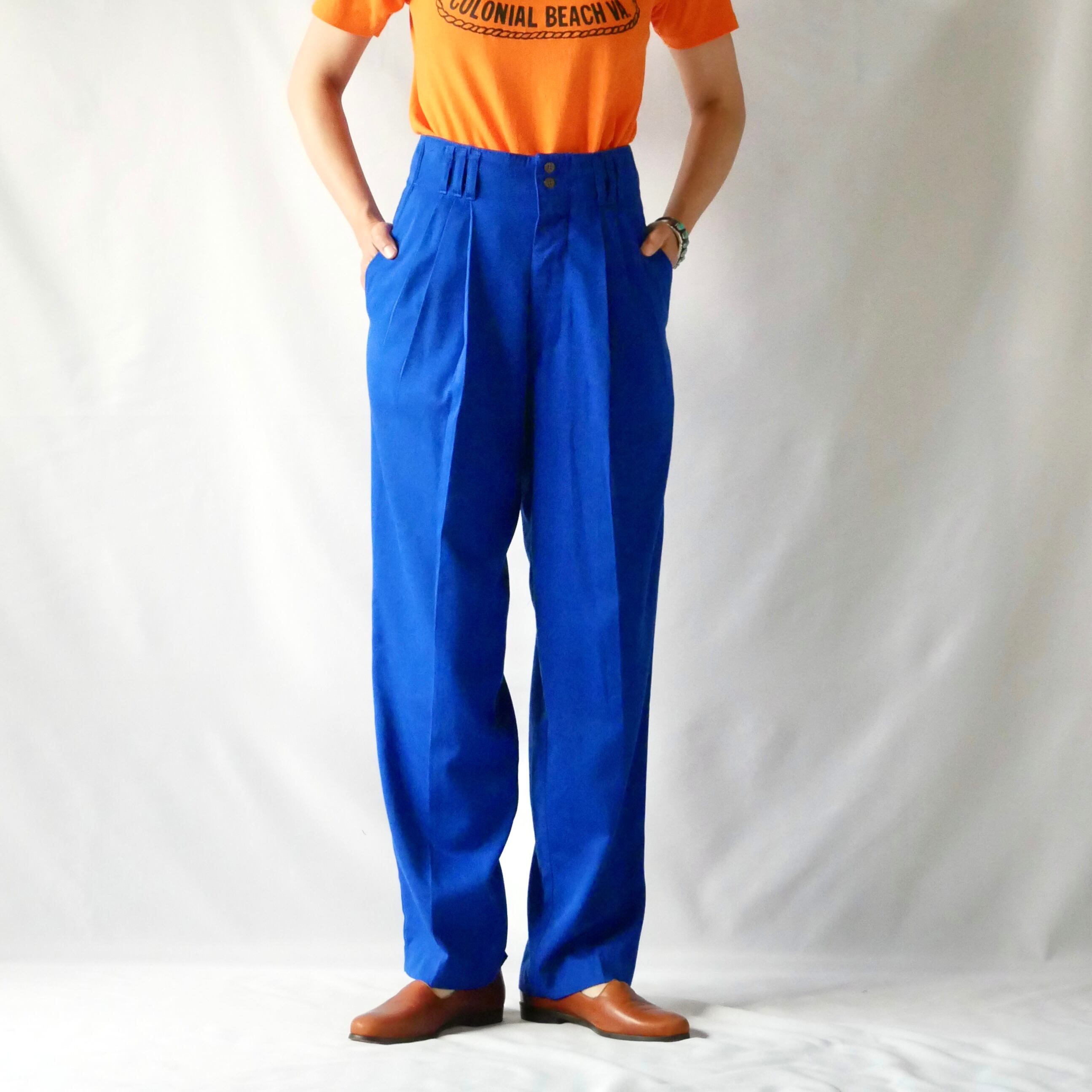 パキッとした綺麗なブルーが素敵なUSA製タックパンツです。