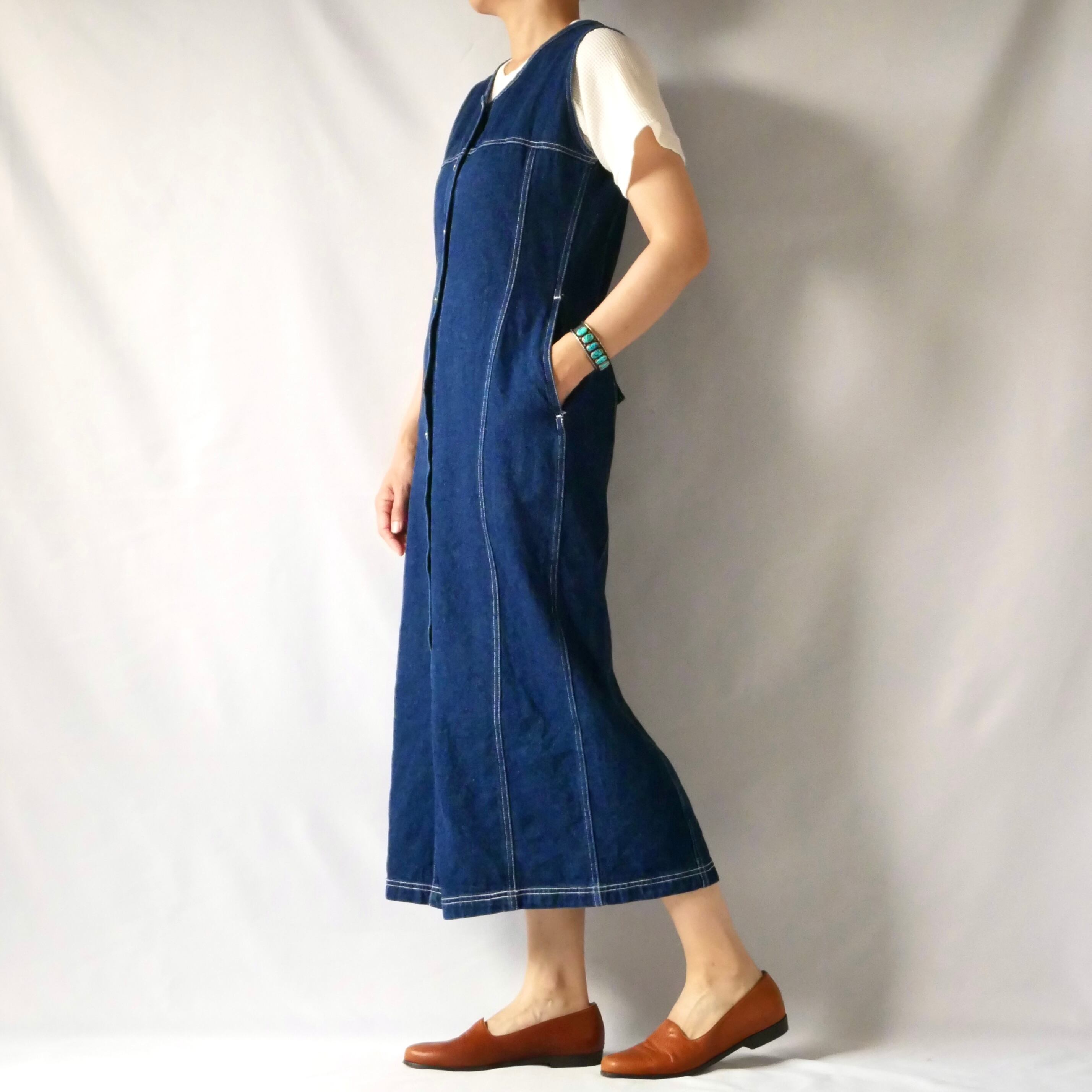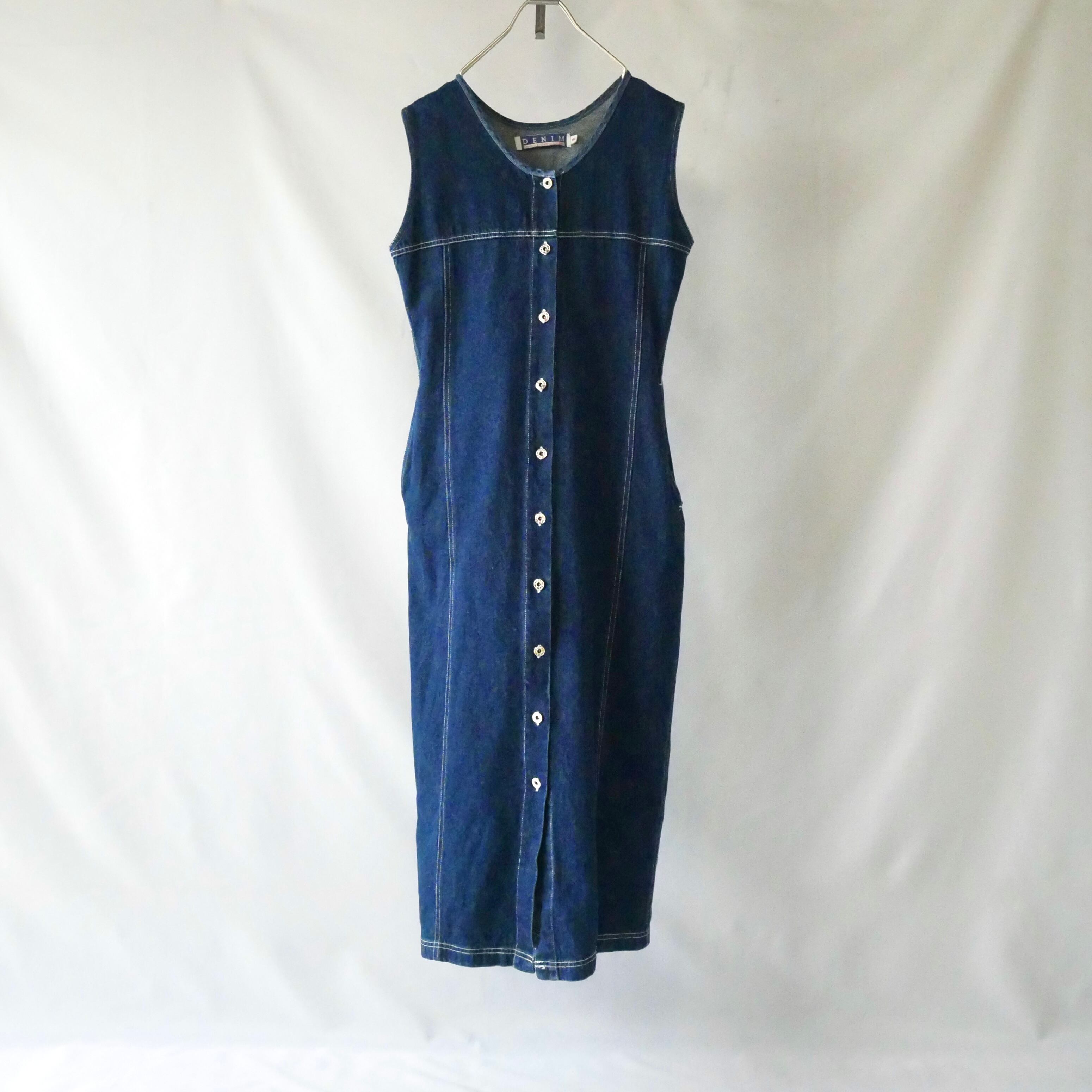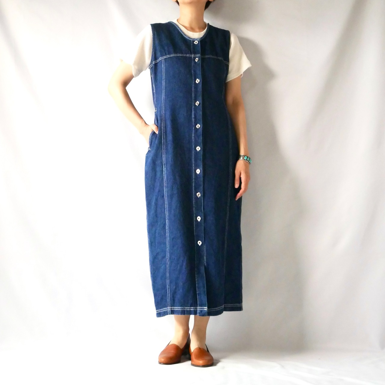 Euro vintage denim sleeveless onepiece ユーロヴィンテージ デニム 前開き ノースリーブ マキシワンピース