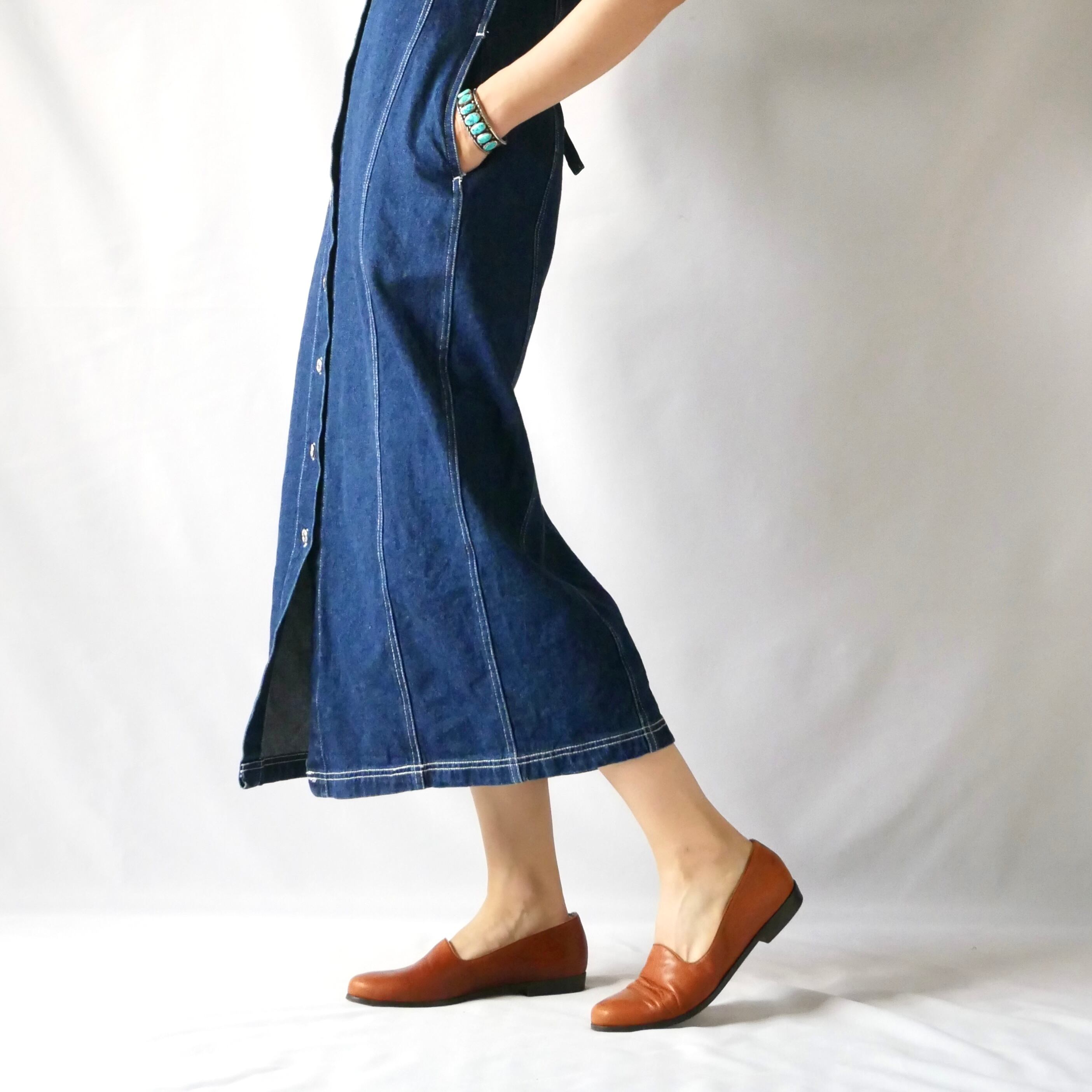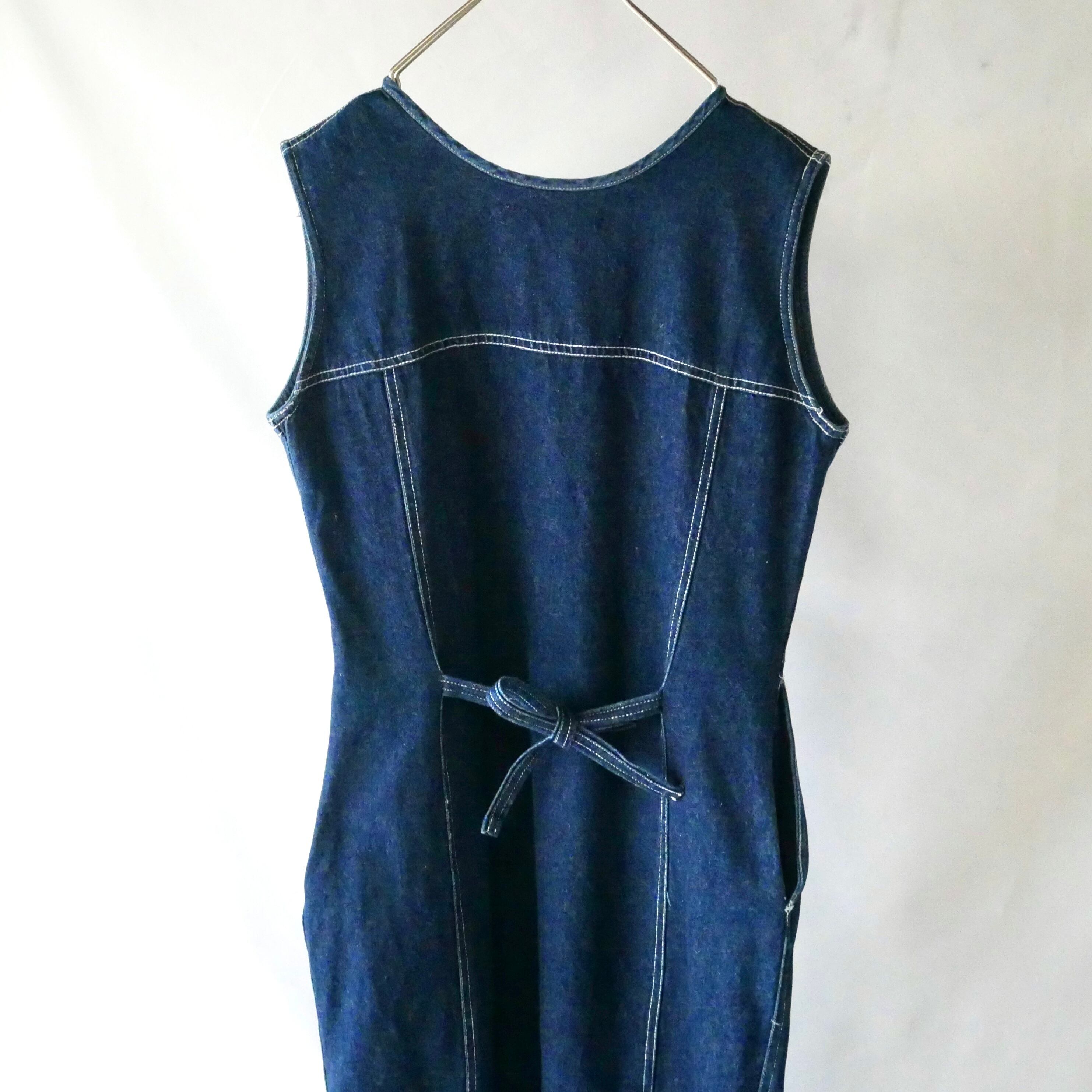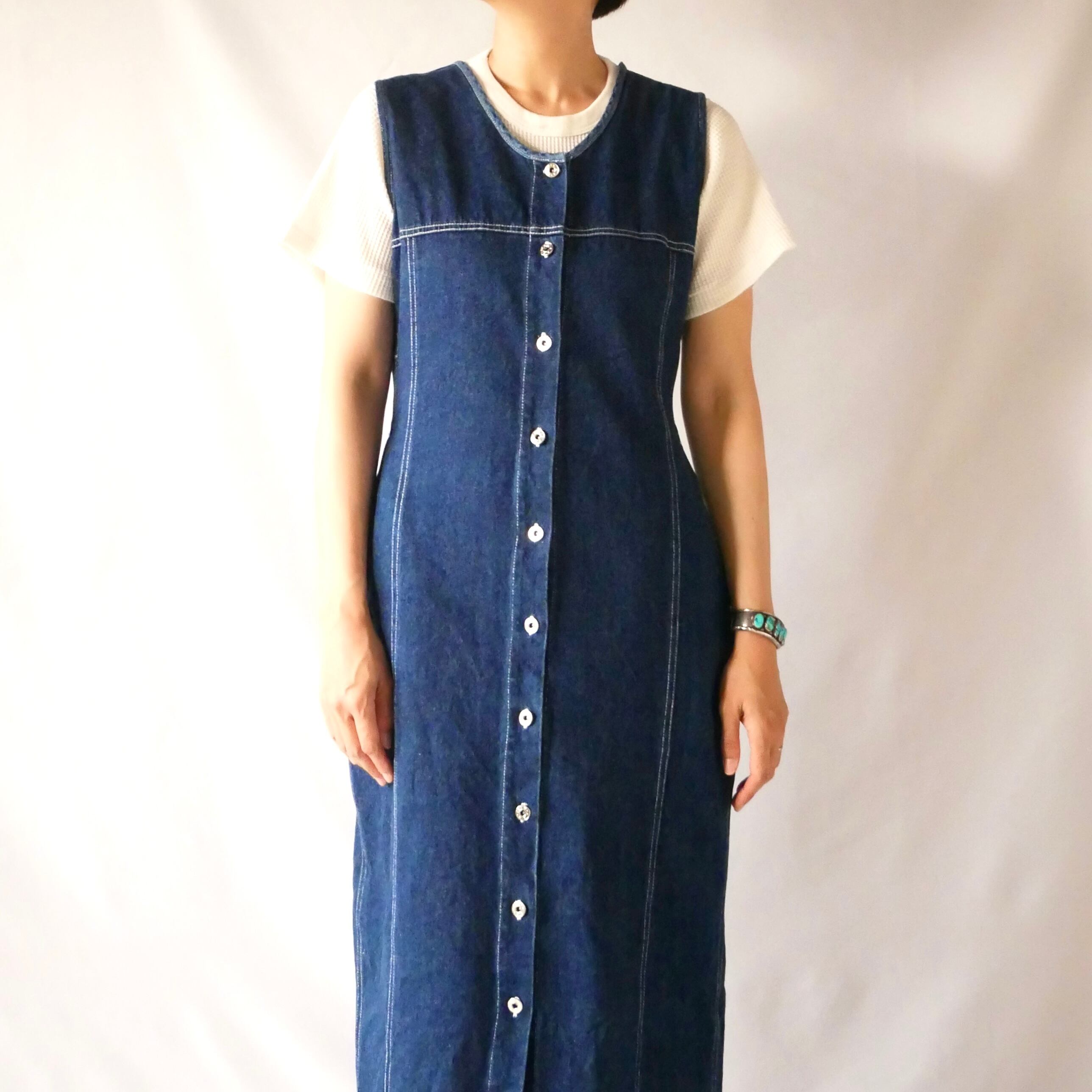 Euro vintage denim sleeveless onepiece ユーロヴィンテージ デニム 前開き ノースリーブ マキシワンピース