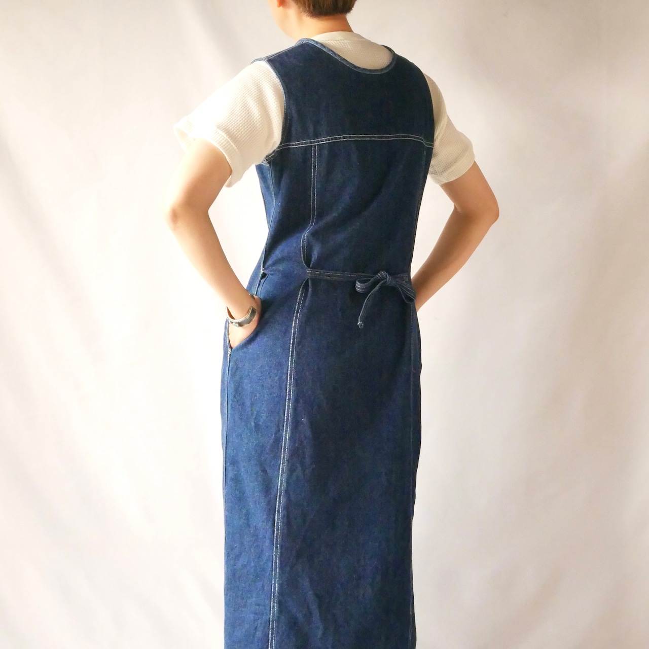 濃いめのデニムに白ステッチが90s感あり可愛い前開きマキシワンピースです。